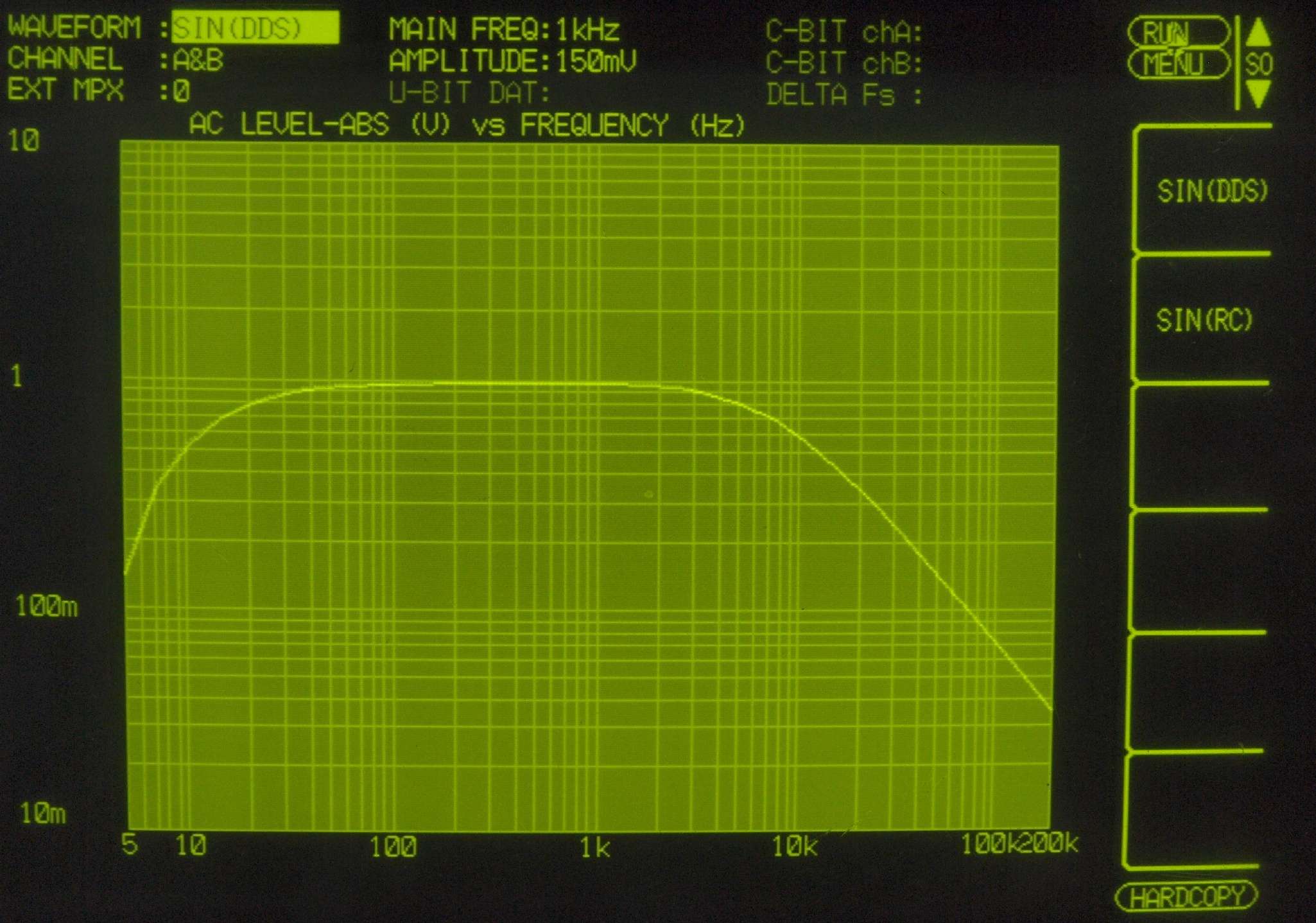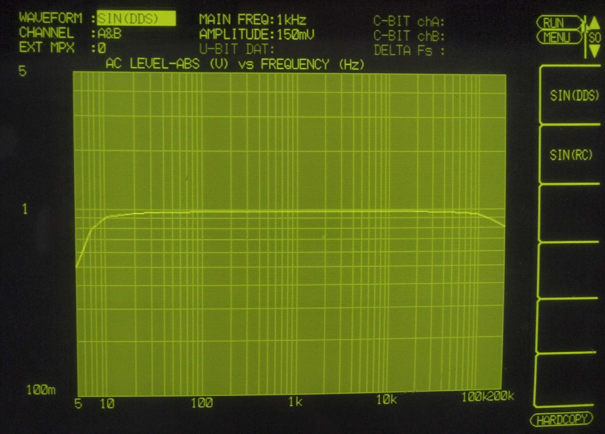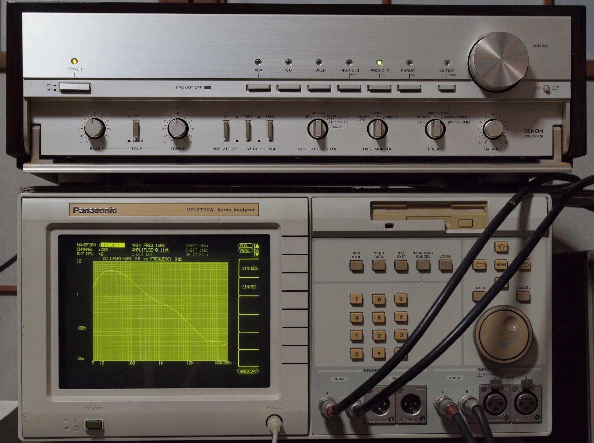 | F. 上位測定器による 調整・測定。 画像をクリックすると、大きく(横幅2050ドット)表示されます。 F0. 下のオーディオアナライザーVP−7732Aで自動測定 |