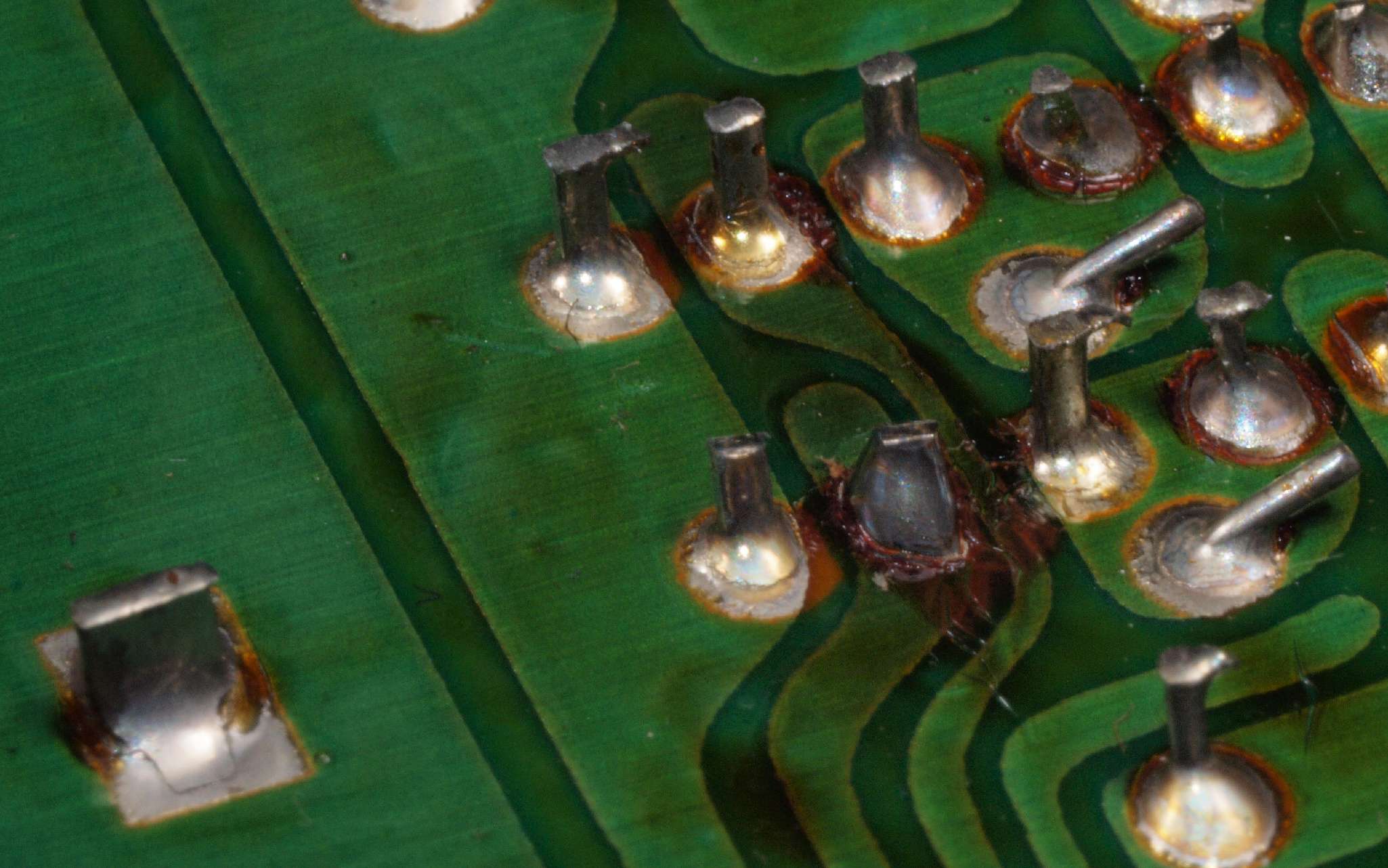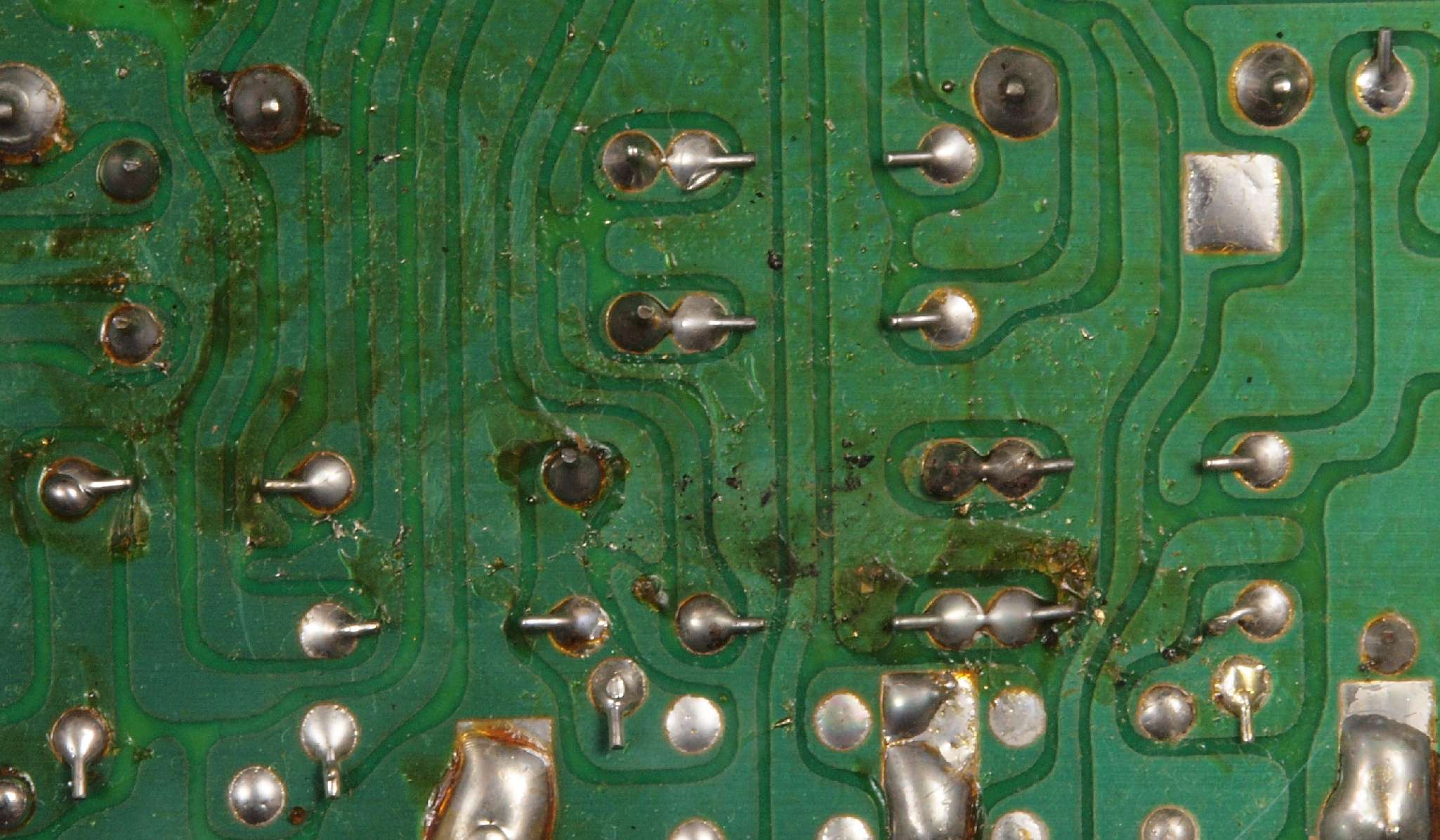| C212. 修理中 EQ−AMP。 トルエン溶媒の接着剤。錫メッキジャンパー線が腐食している。 | ||||||||||||||||||||||||||||||||||||||||||||||||||||