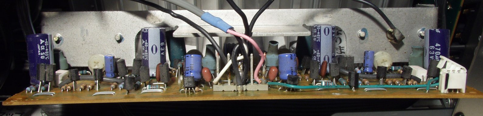 よって、終段TR(トランジスター)のバランスが崩れると、入切時に雑音が出ます。 |