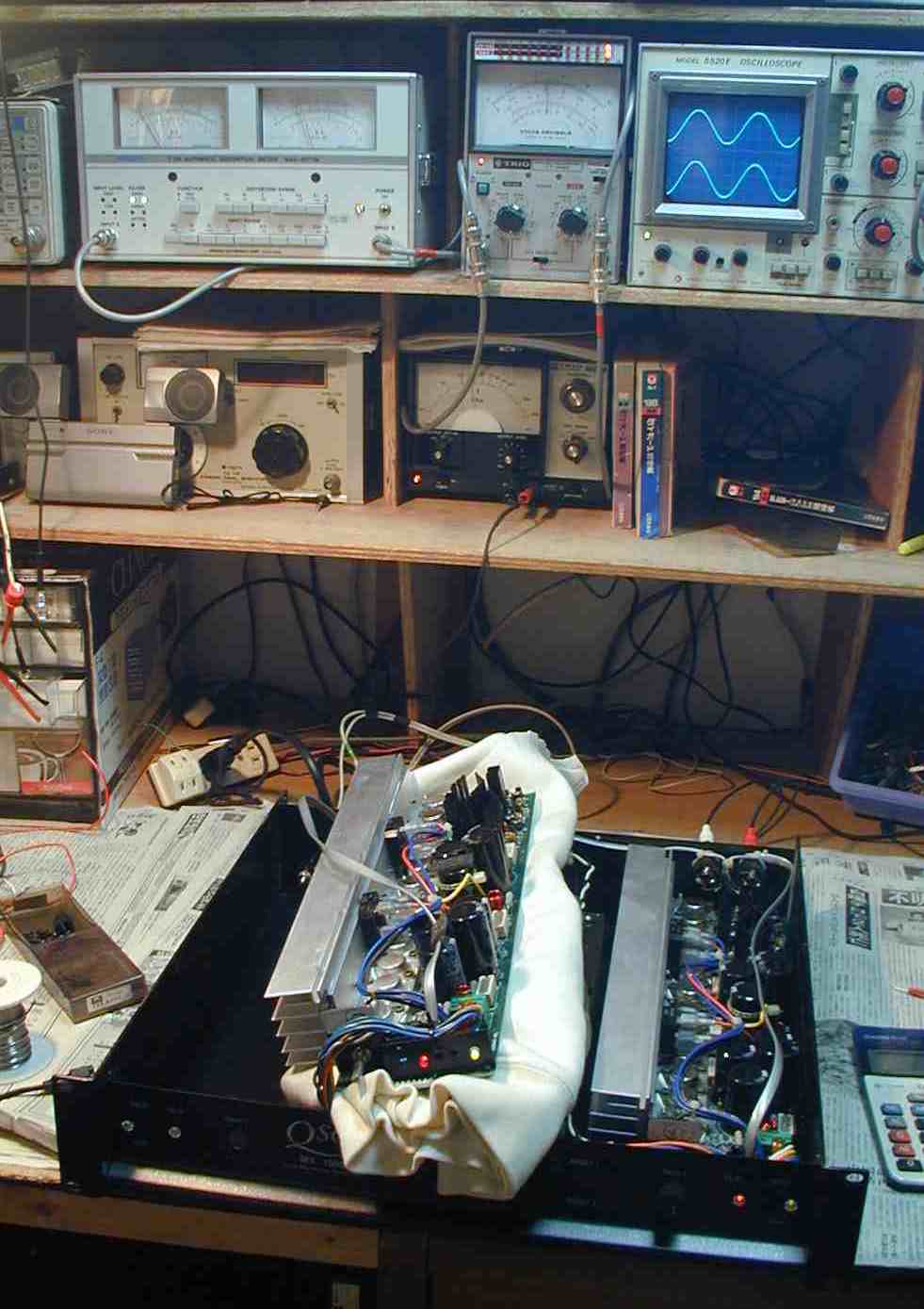 | 1. 上蓋を開け清掃後、L側AMP修理中 |