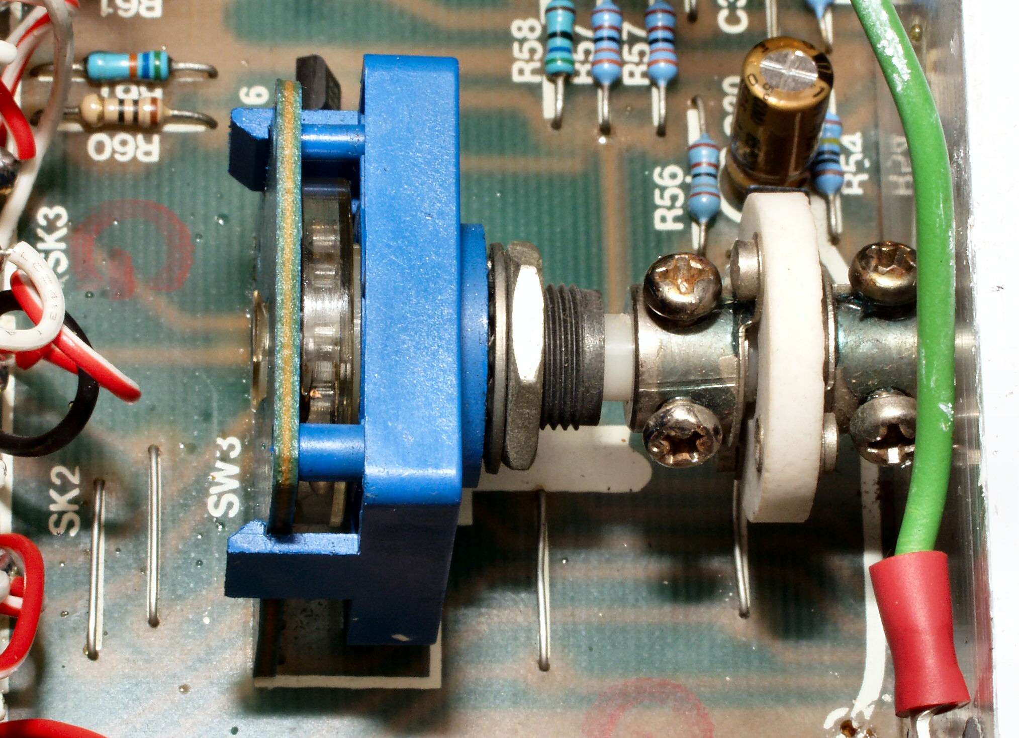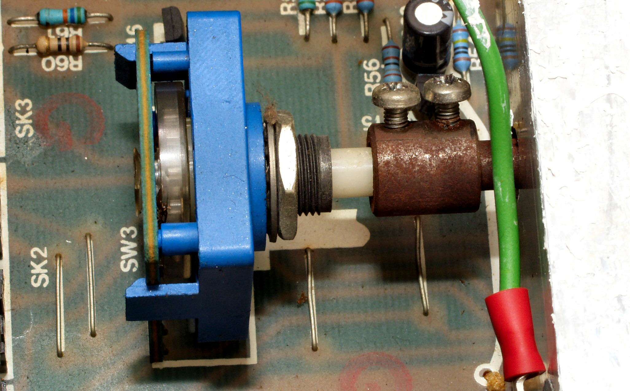 | A3. 点検中 修理の時曲げたのが、右の入力切り替えSWがかなり揺れる カップリングも安い物で、「ユニバーサル型」でないので、この「ブレ」を吸収しない |