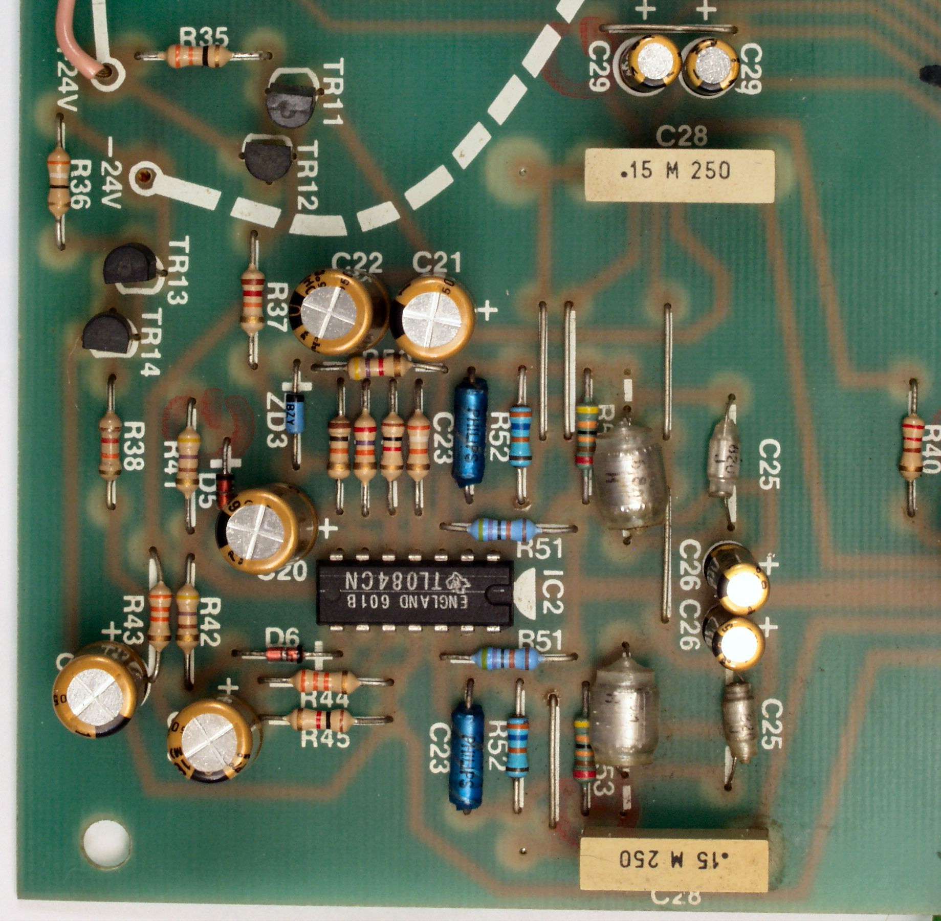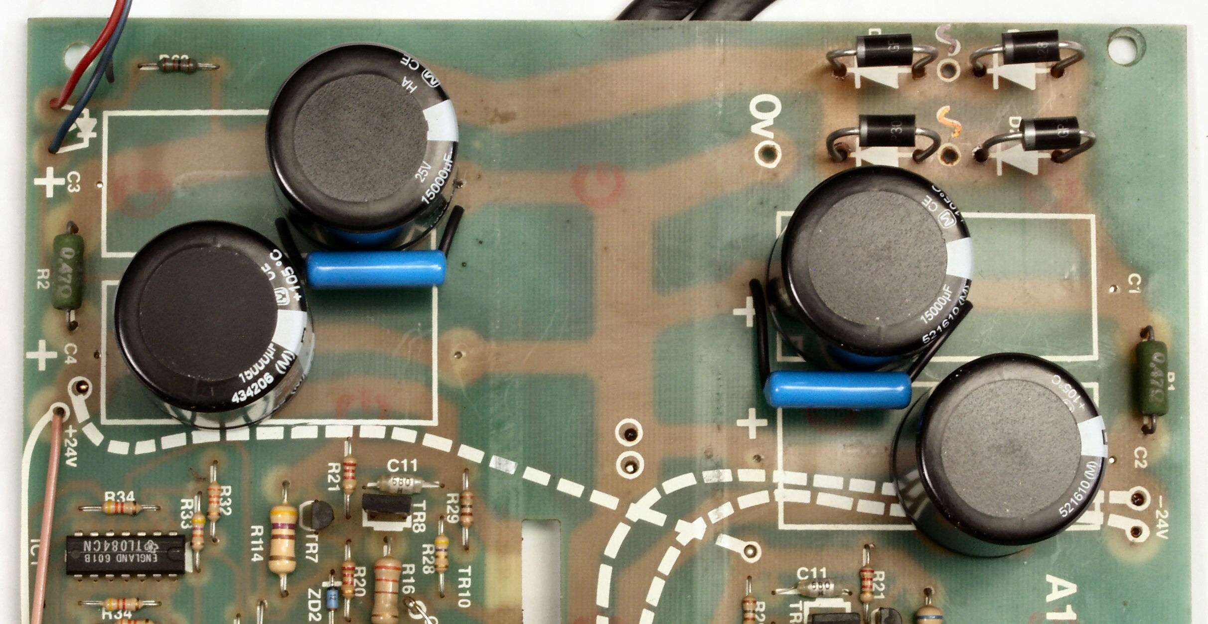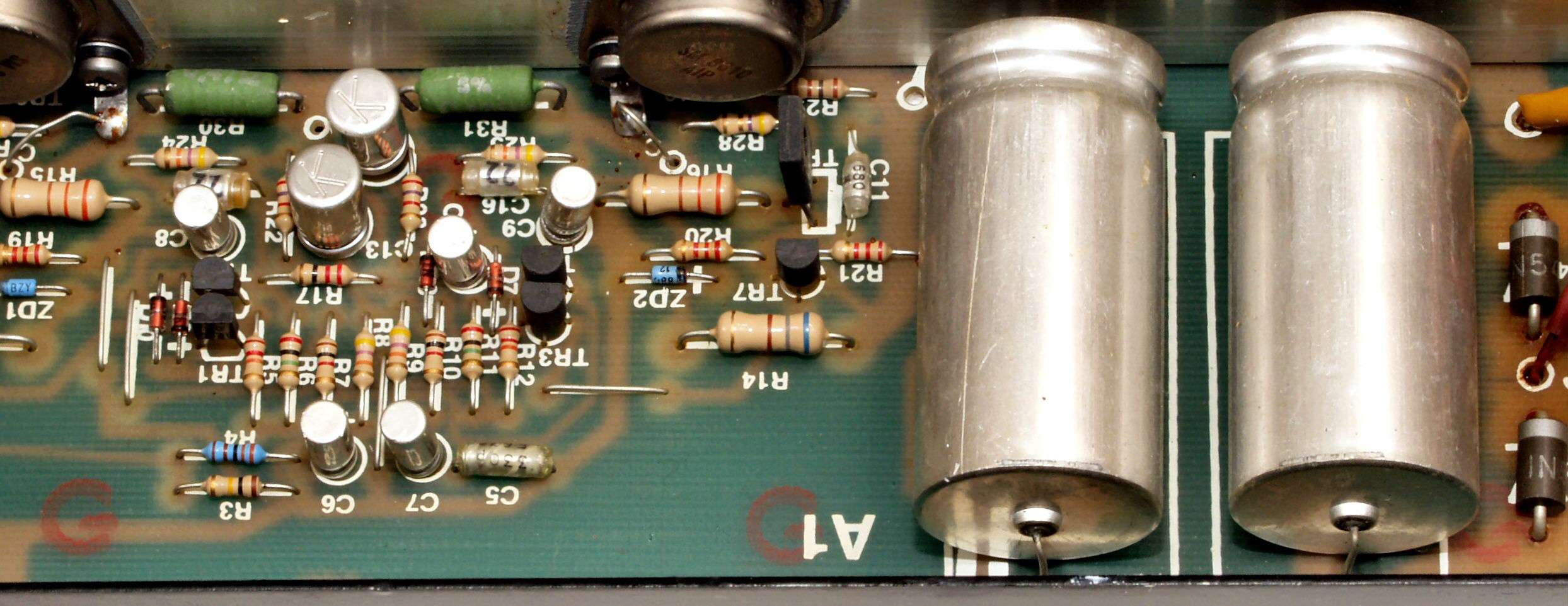 | C1B. 修理後 基板 電解コンデンサー31個、ダイオード4個、フイルムコンデンサー4個交換 | ||||||||||||||||||