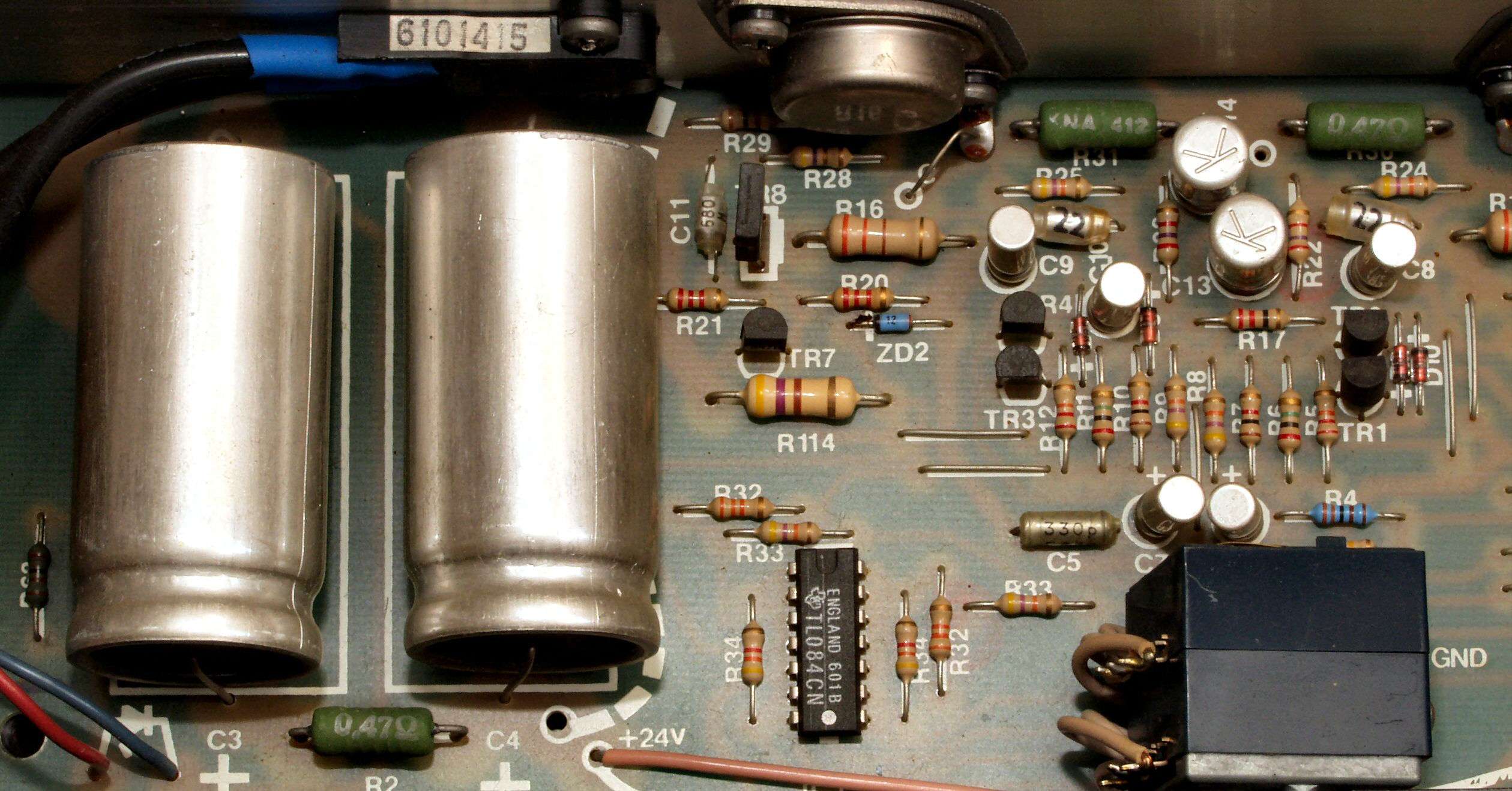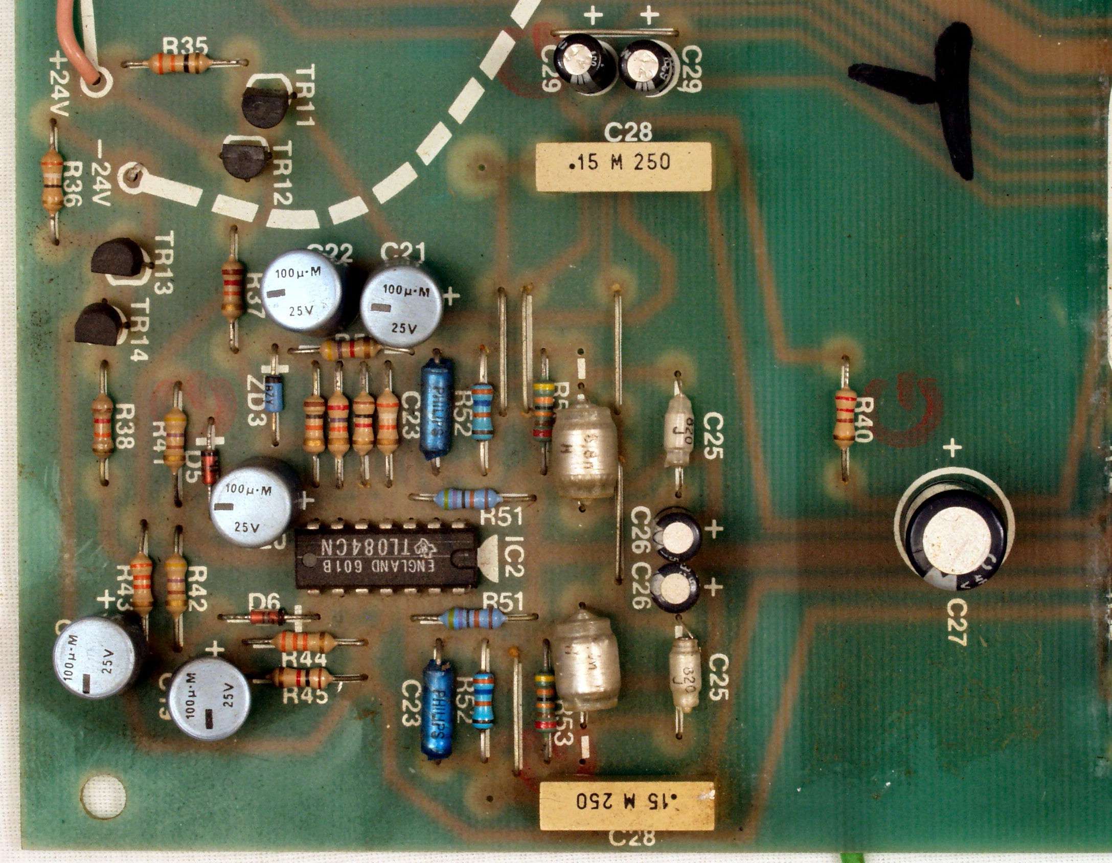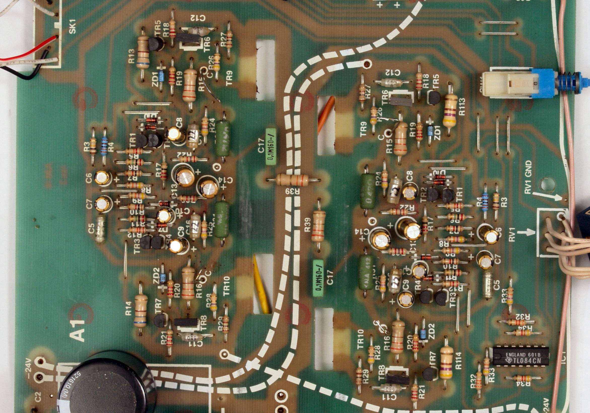 | C1B. 修理後 基板 電解コンデンサー31個、ダイオード4個、フイルムコンデンサー4個交換 | ||||||||||||||||||