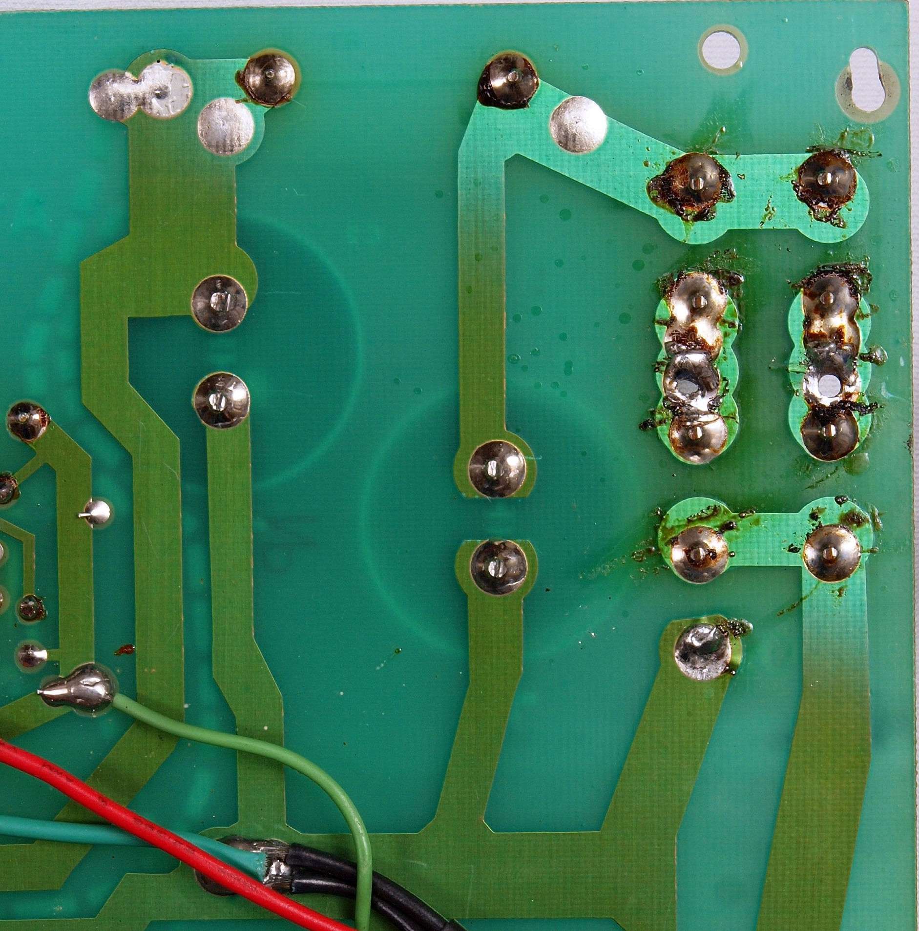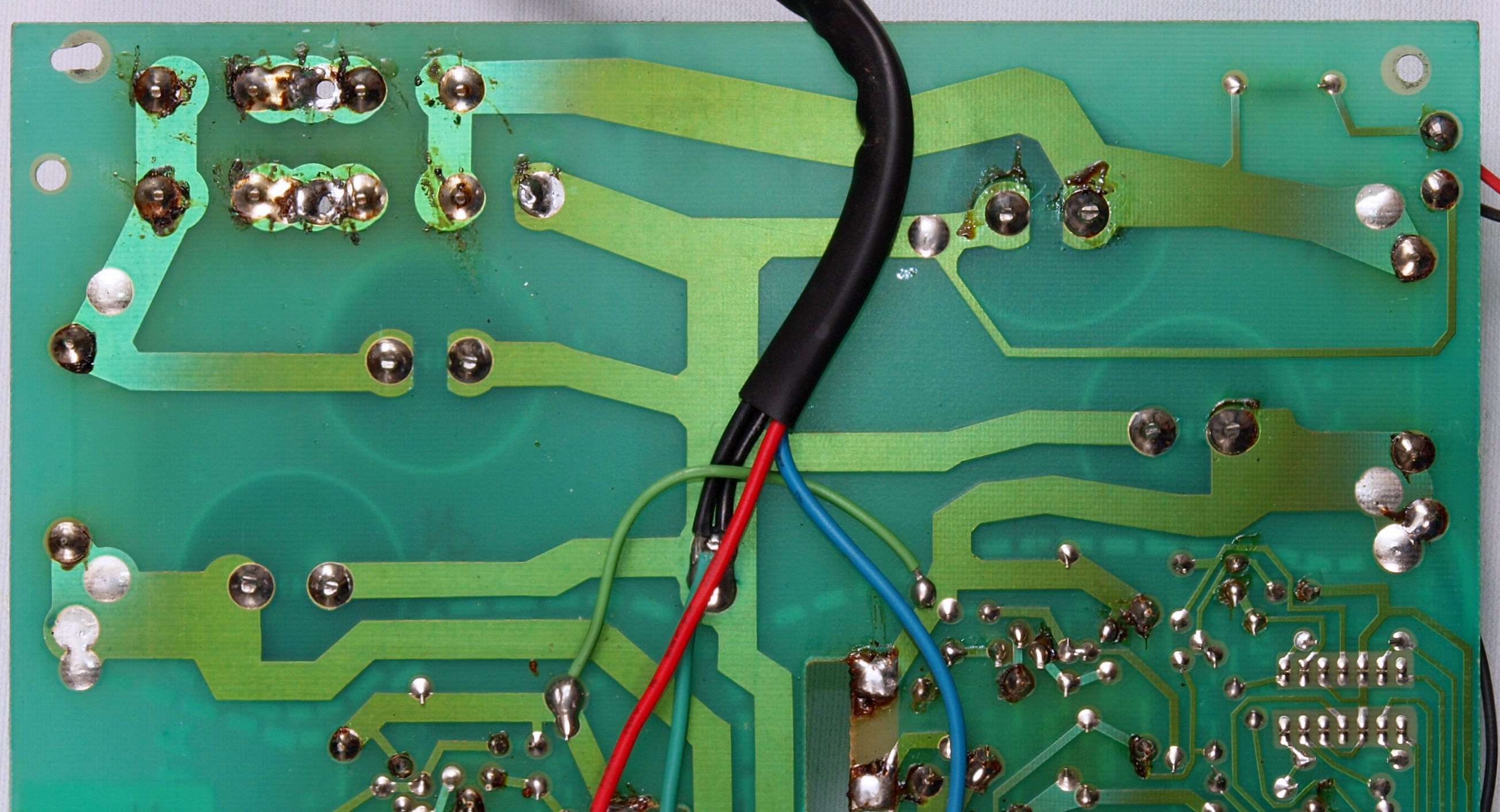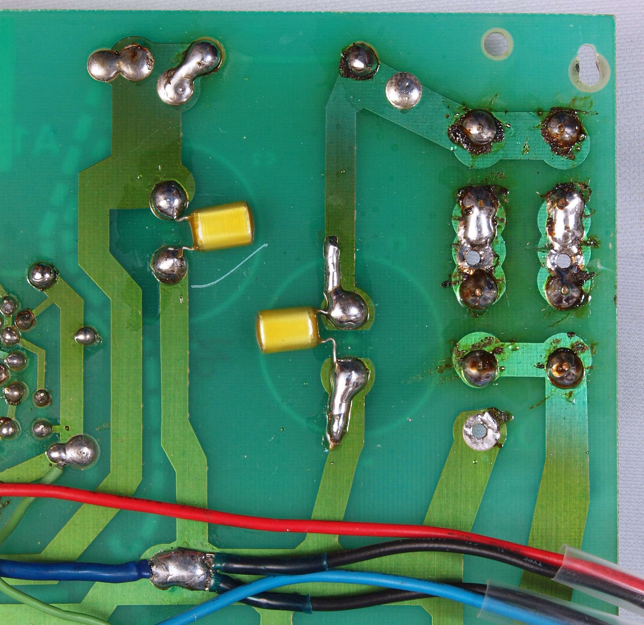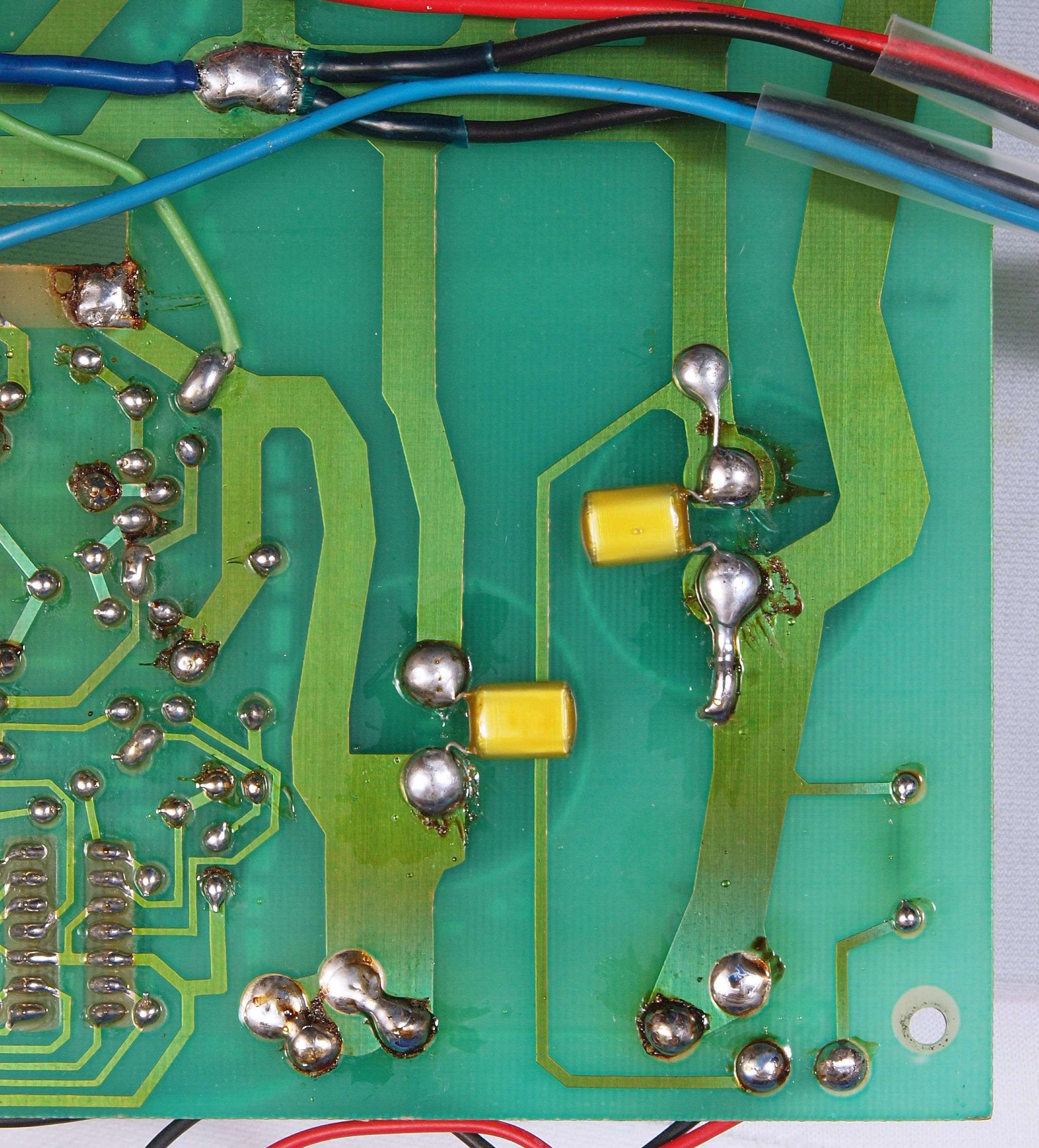 C94. 修理(半田補正)後 −側電源基板裏、 半田を全部やり直す。