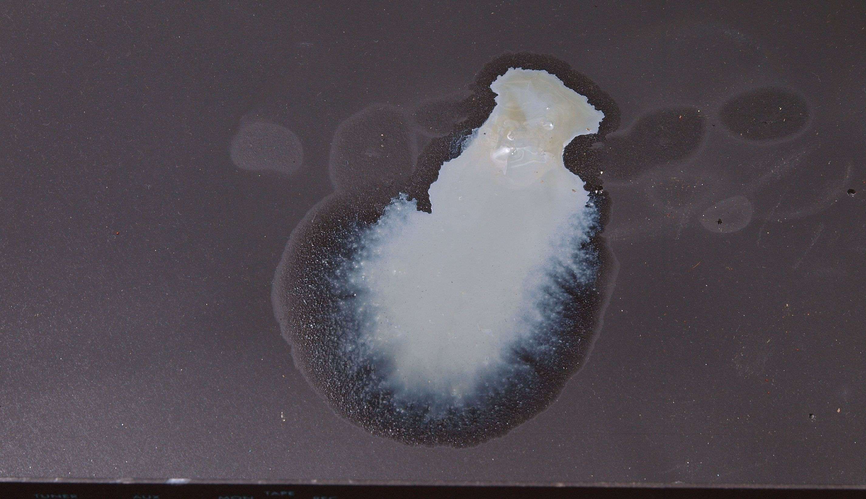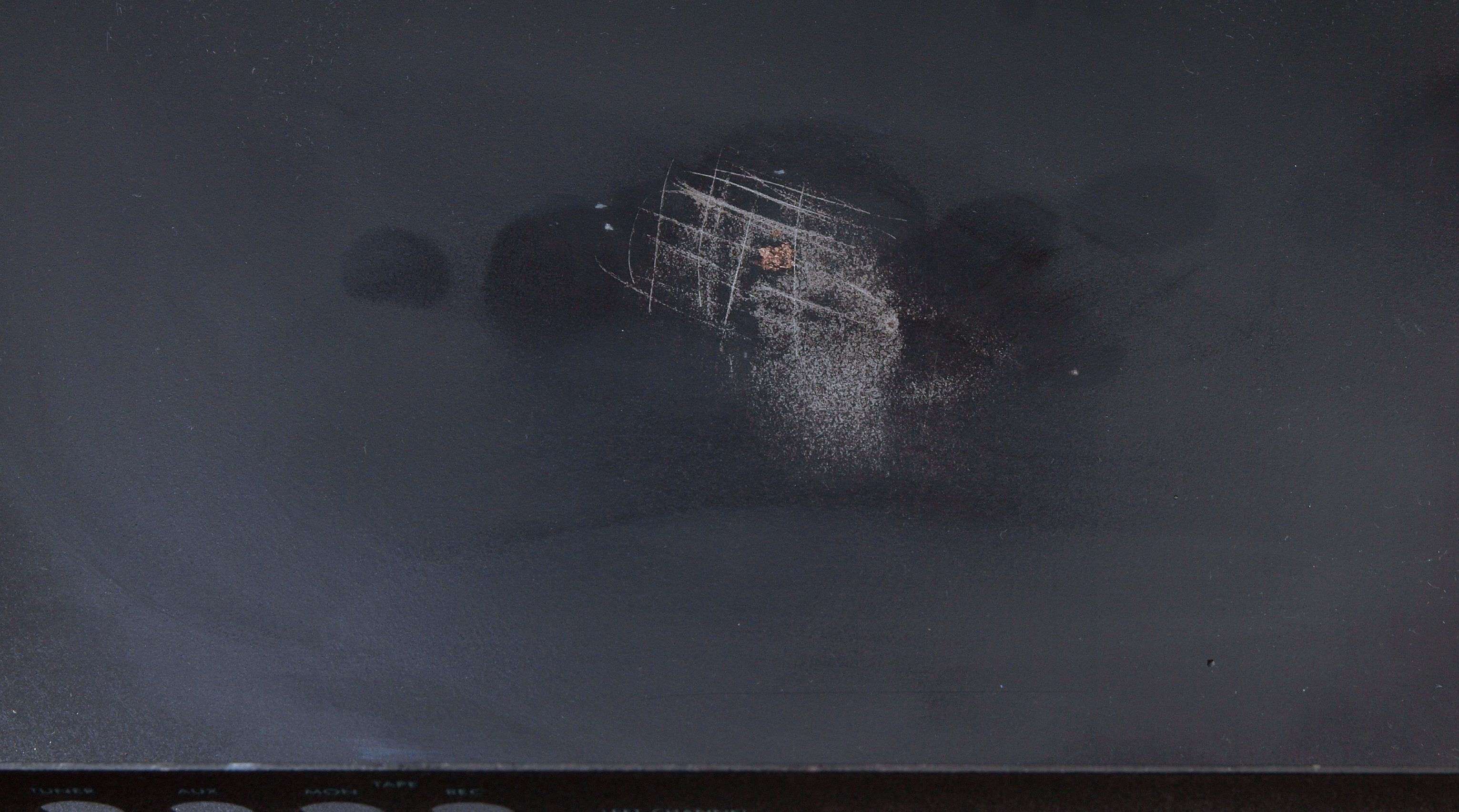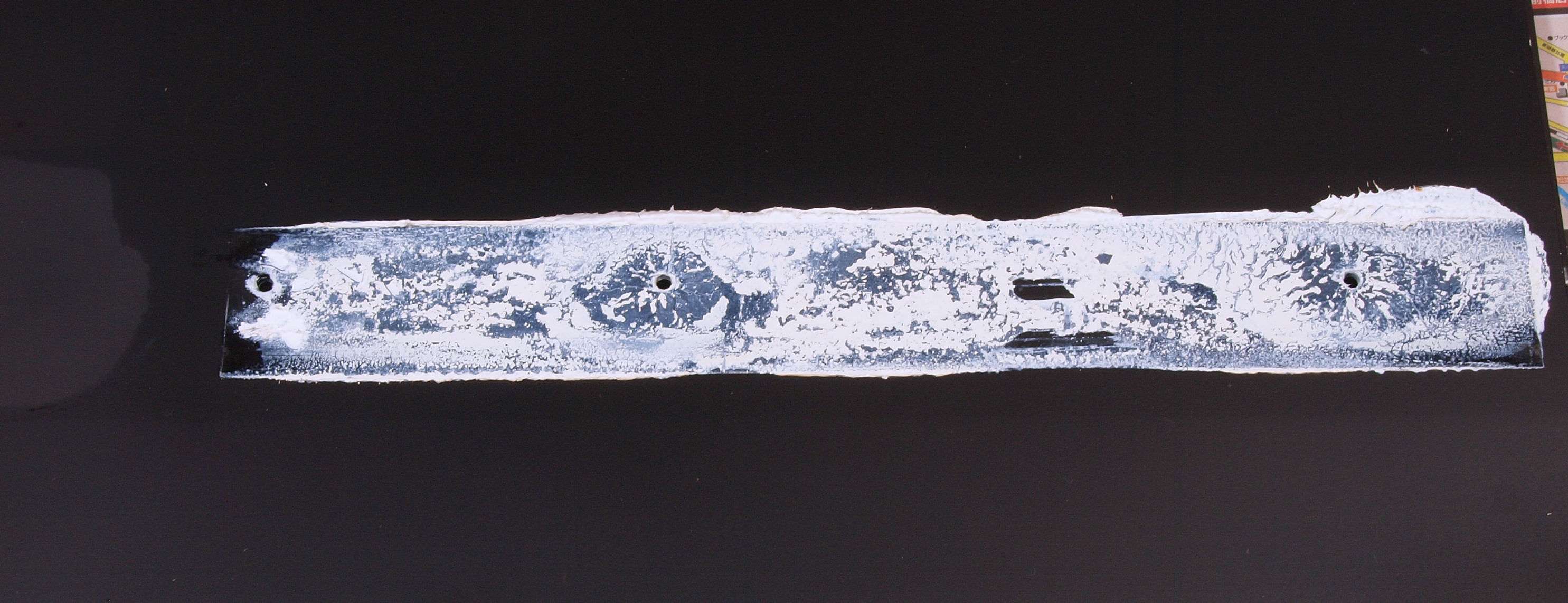 C02. 修理中 基板下の押さえブシュ跡、塗装を犯しているので、シンナー等の溶剤を使ったブシュ?