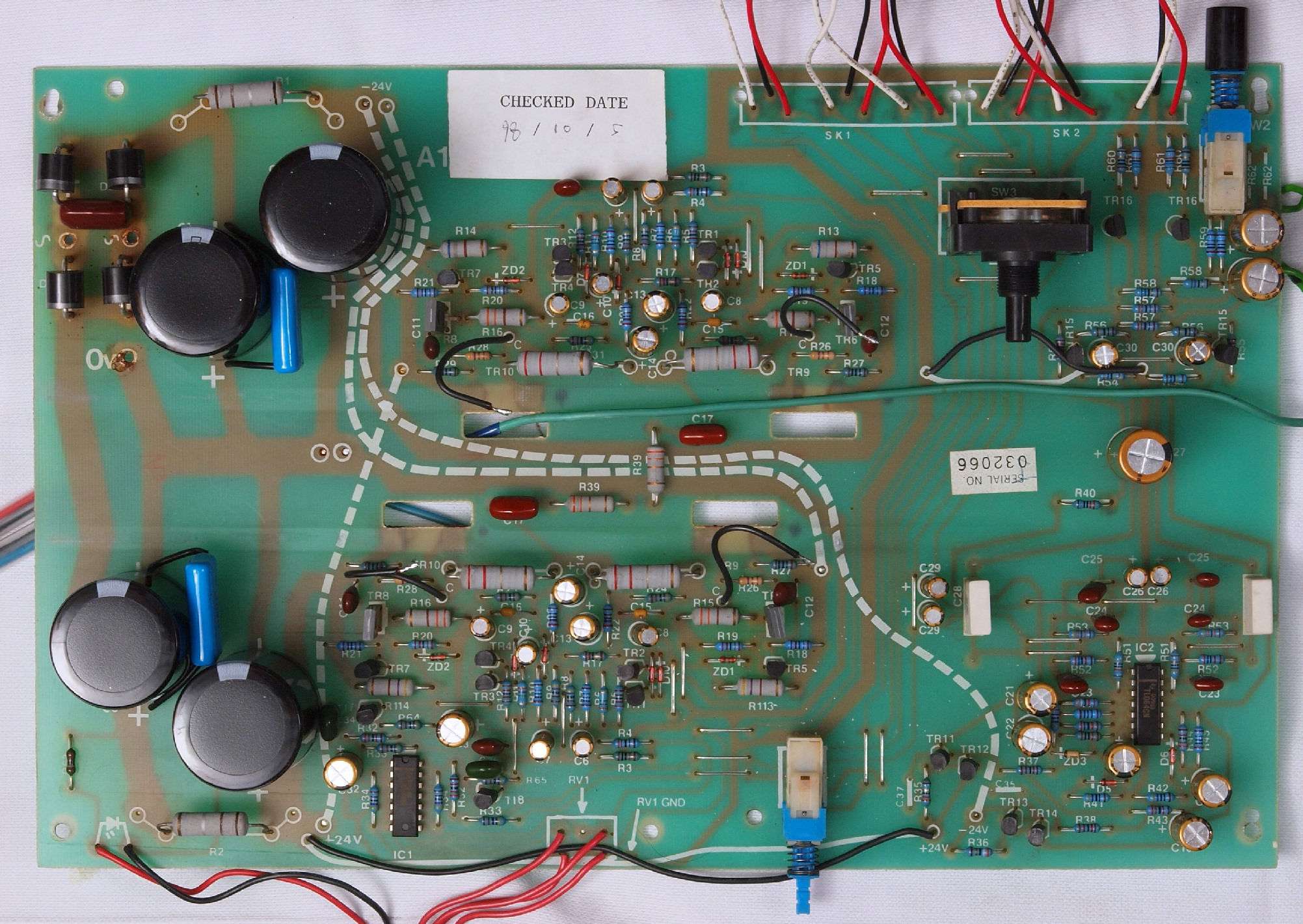 C12. 修理後 基板 電解コンデンサー31個、ダイオード4個、フイルムコンデンサー4個交換
