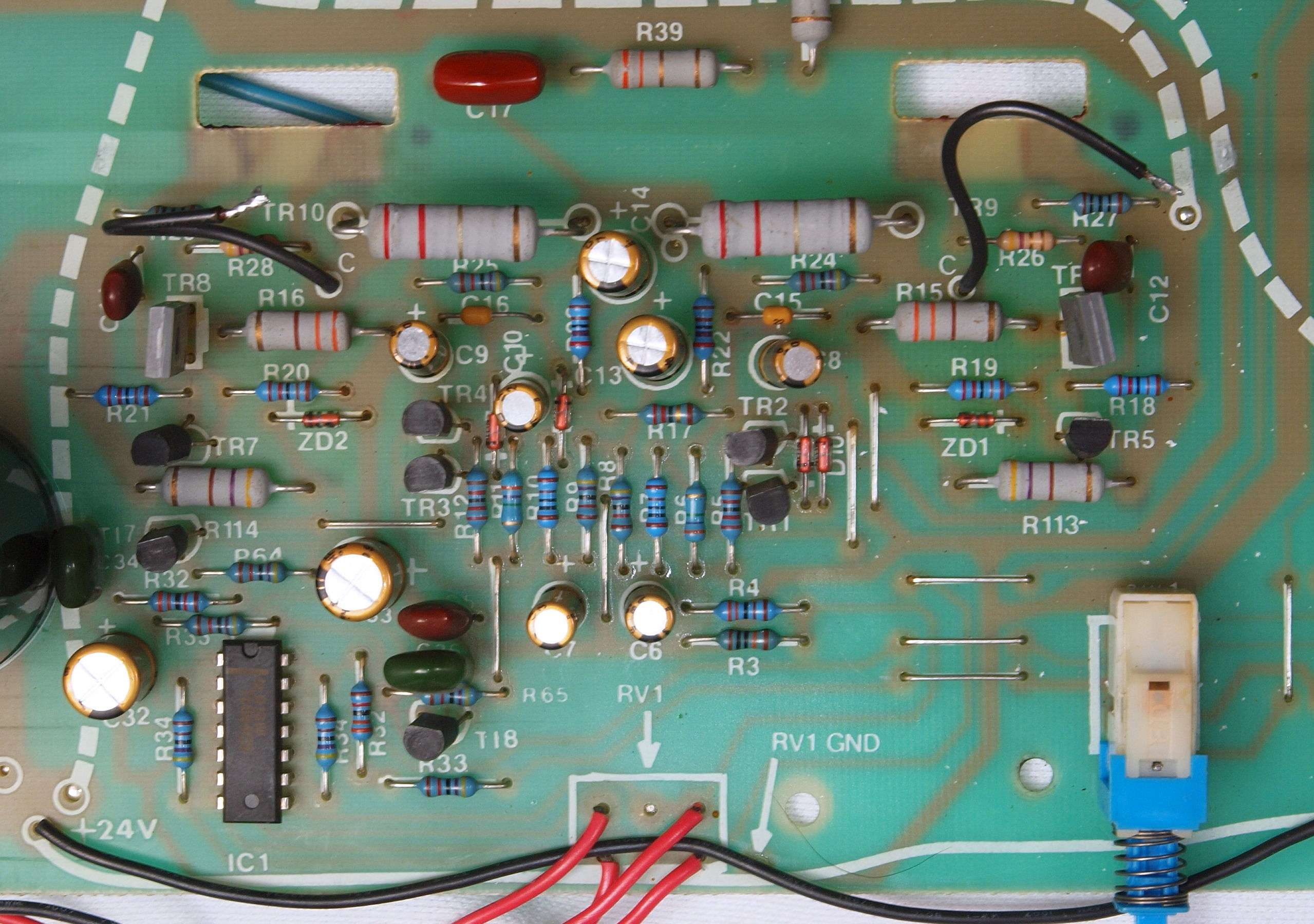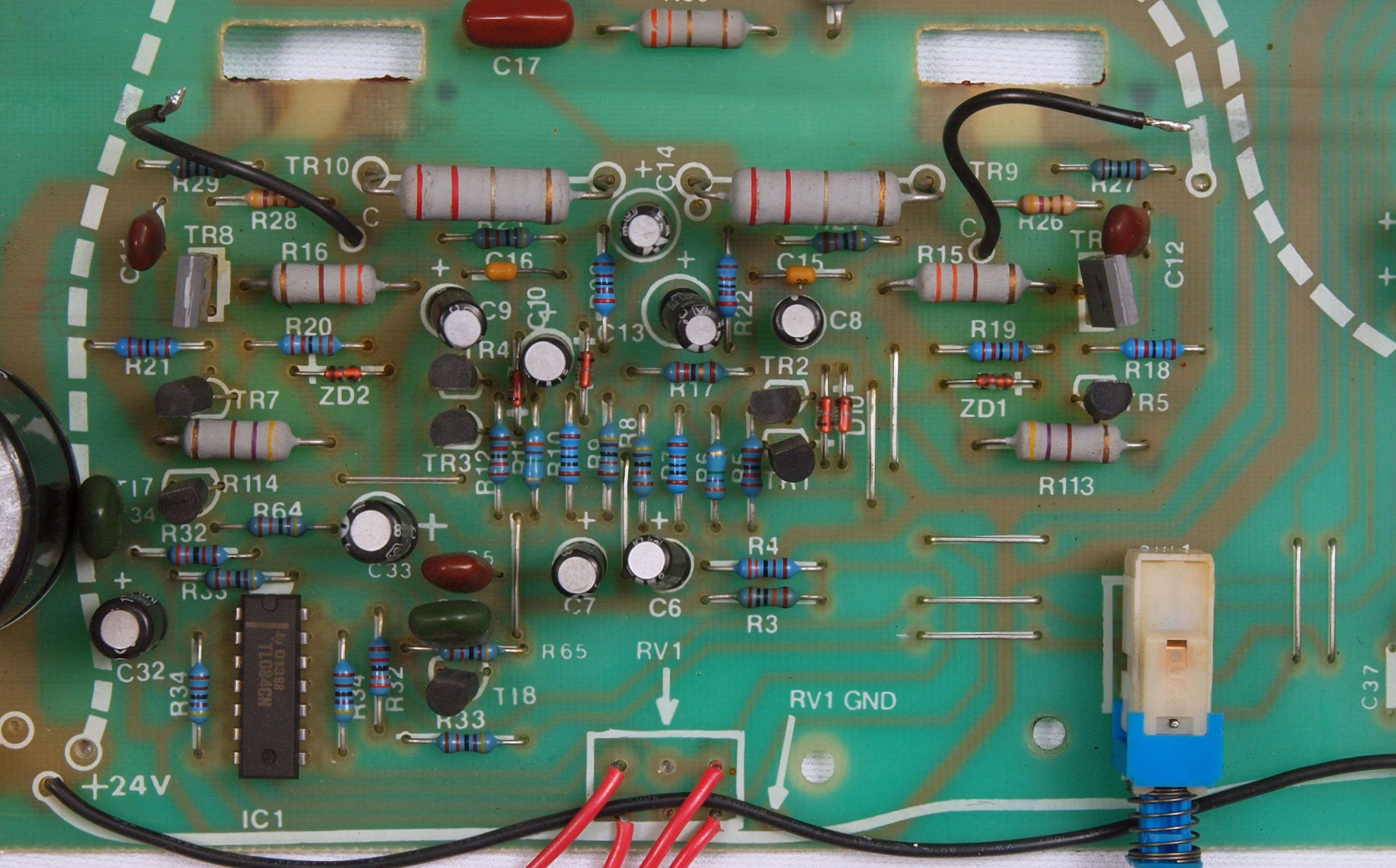 C24. 修理(半田補正)後 AMP基板裏、 半田を全部やり直す。