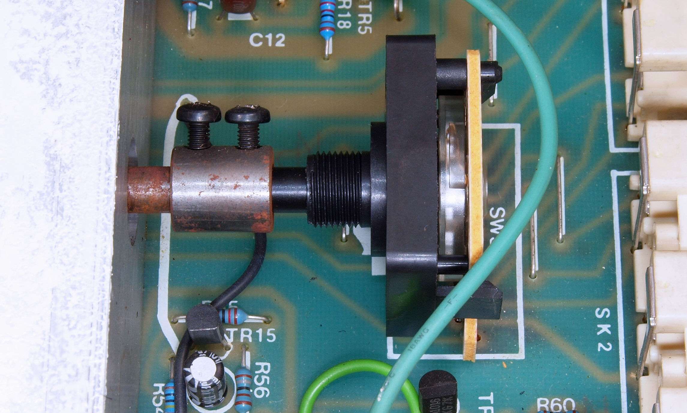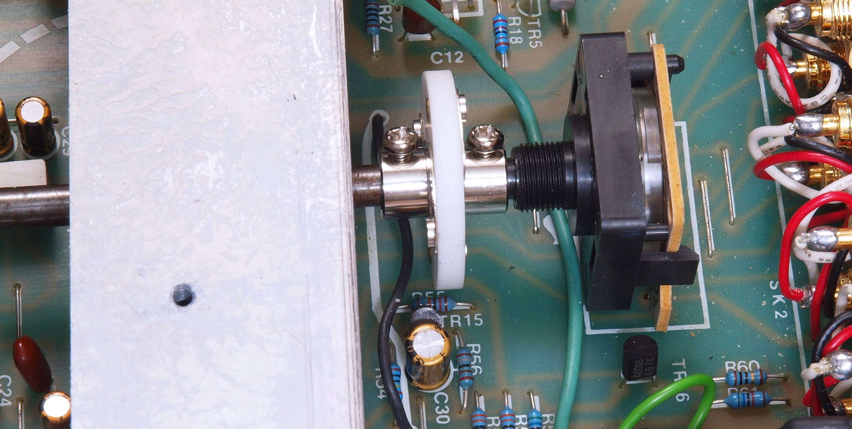 C03. 修理後 基板下の押さえブシュ跡、 後々の為、塗装する。