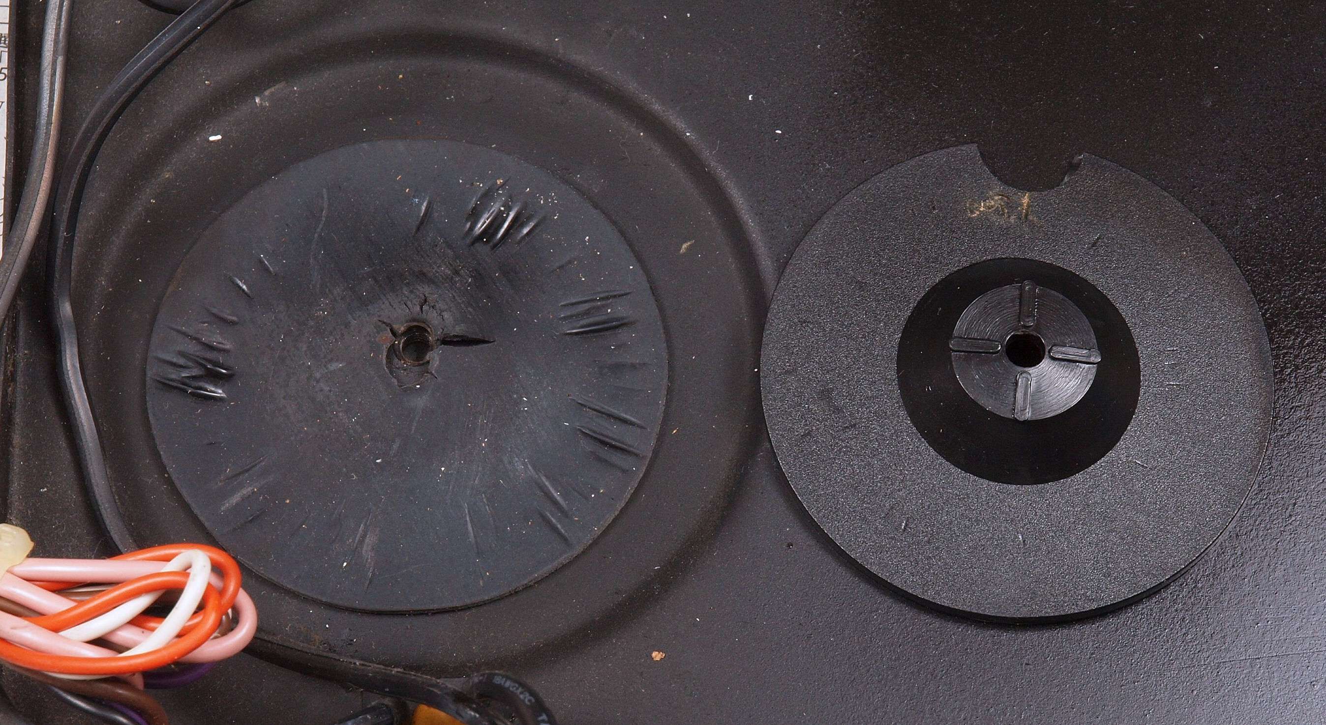 CC5. 修理前 SP接続端子裏、電源コード裏。