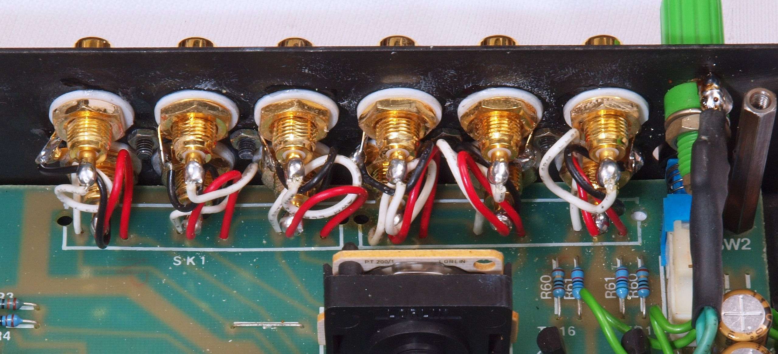 A52. 点検中 入出RCA端子郡、 テフロン絶縁のRCA端子と交換出来ます。