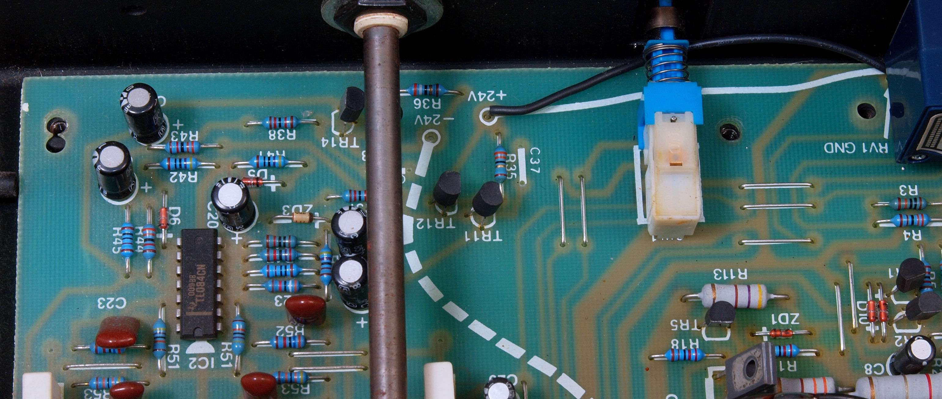 C54. 修理(半田補正)後  EQ基板裏、 半田を全部やり直す。