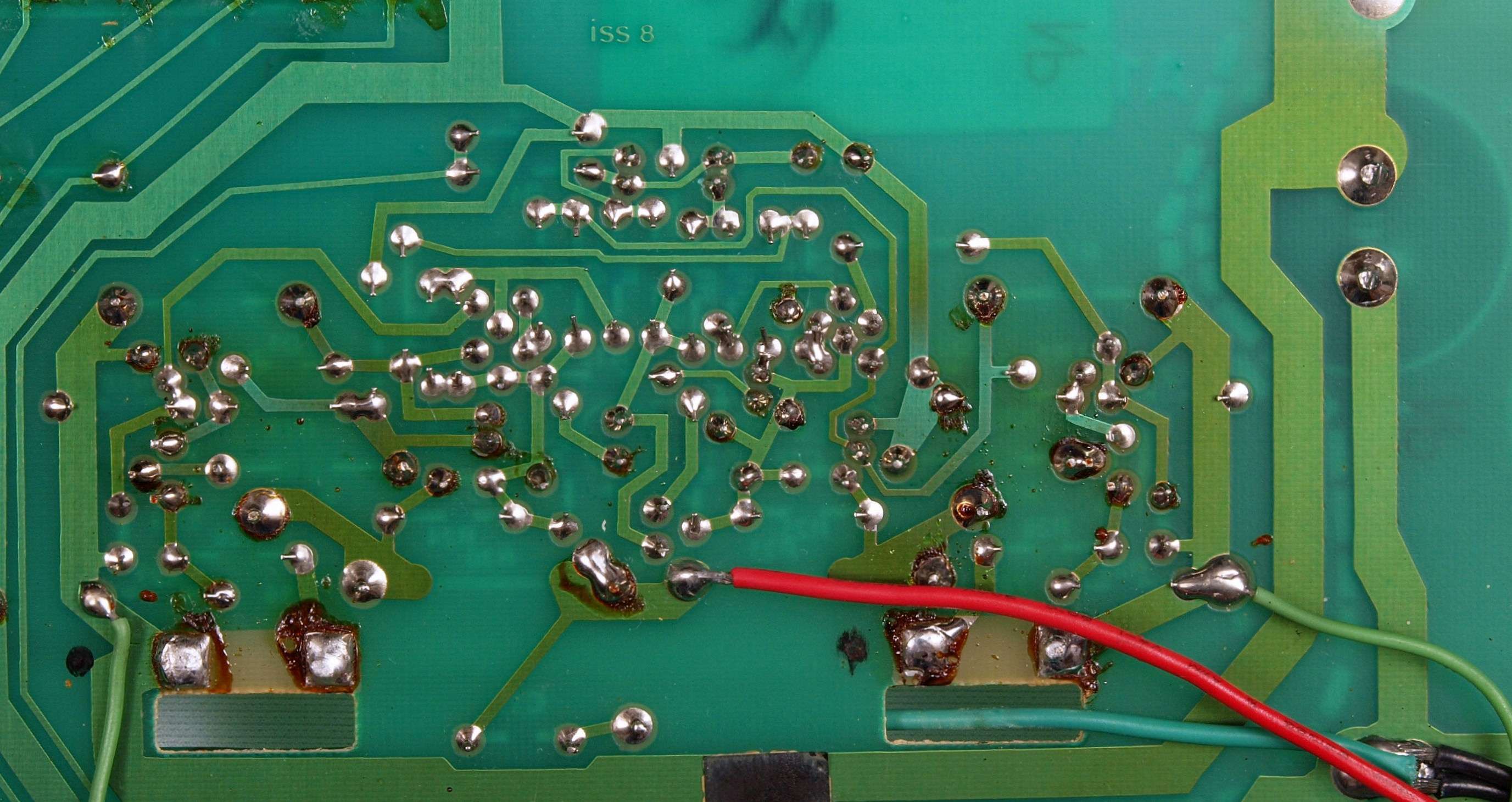 C14. 修理(半田補正)後 基板裏、 半田を全部やり直す。