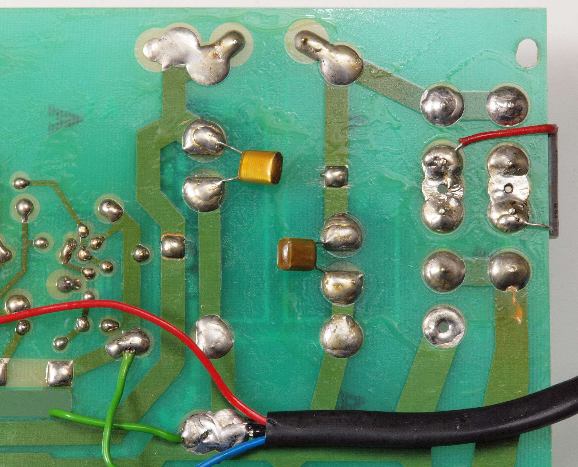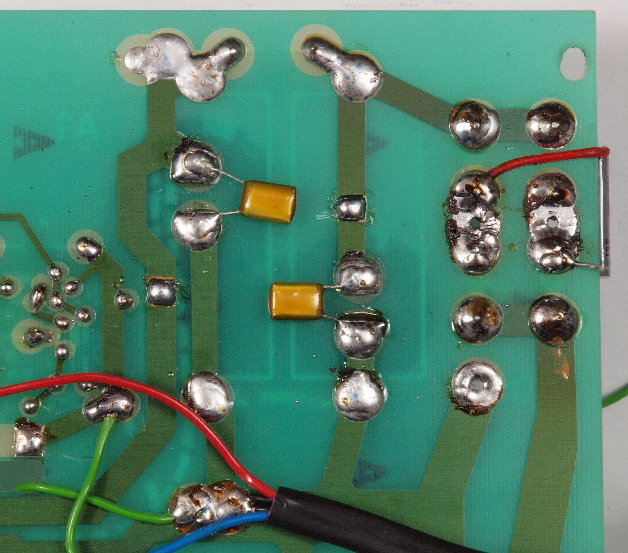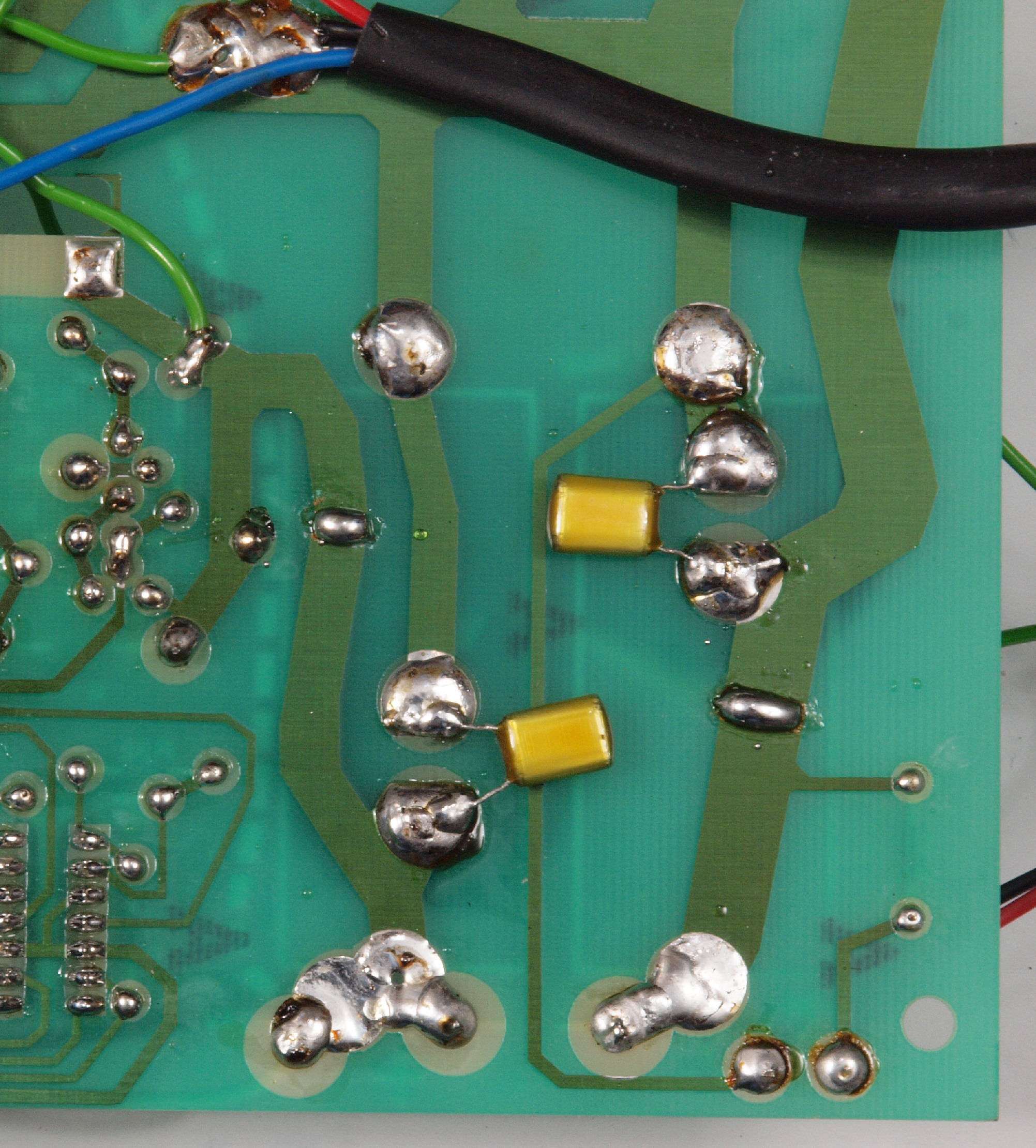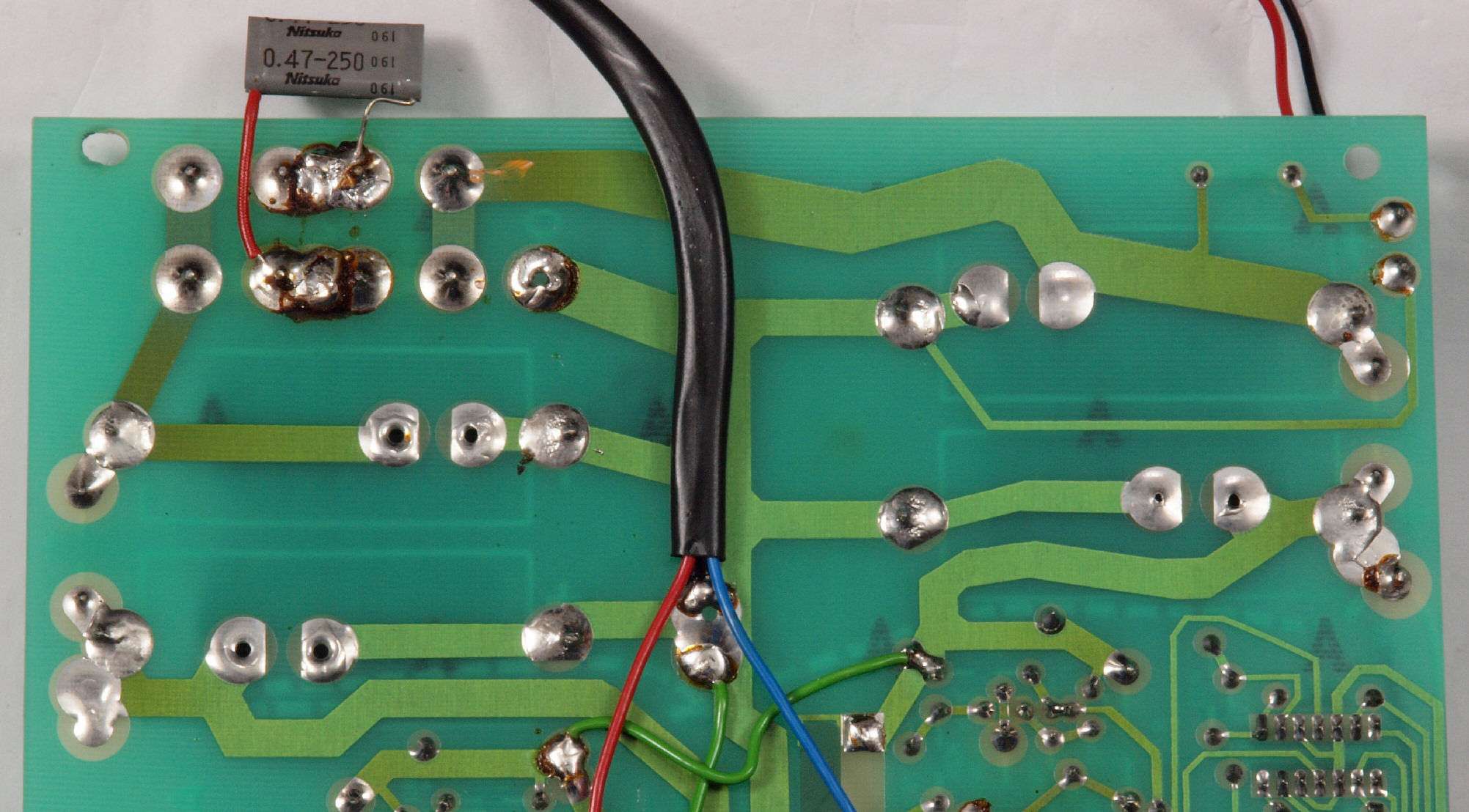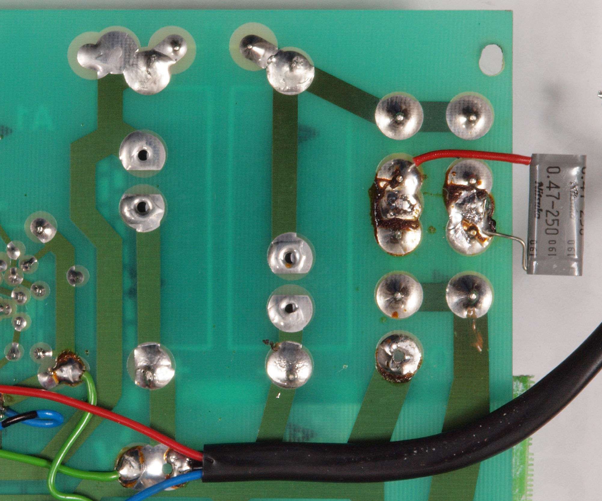 | C94. 修理(半田補正)後 −側電源基板裏、 半田を全部やり直す。 | ||||||||||||||||||||