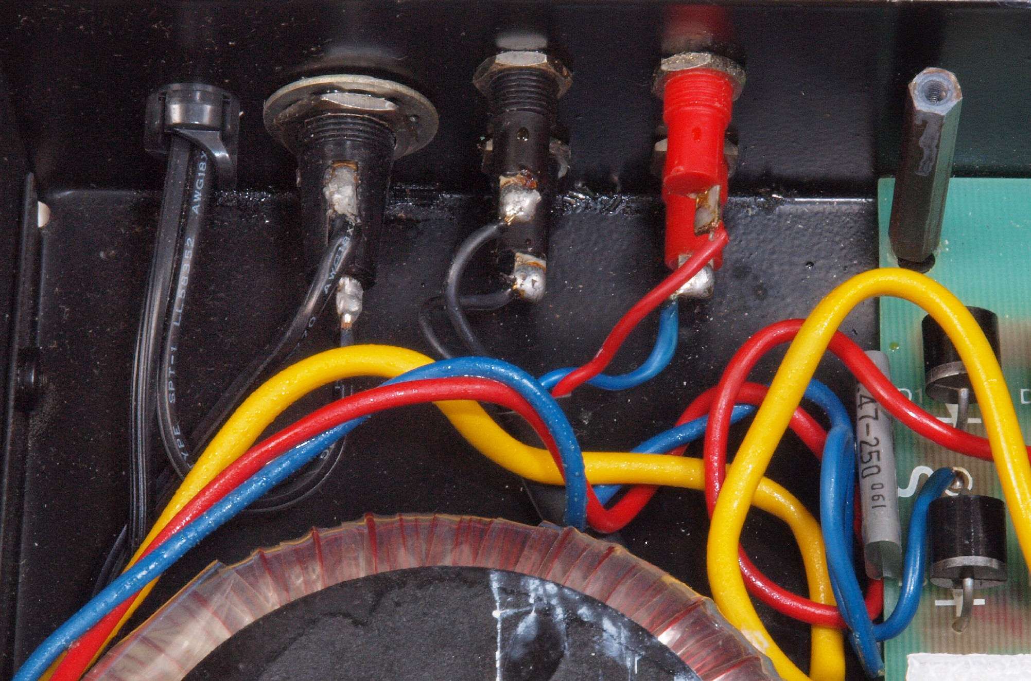 | CC5. 修理前 SP接続端子裏、電源コード裏。 | ||||||||||||||||||||