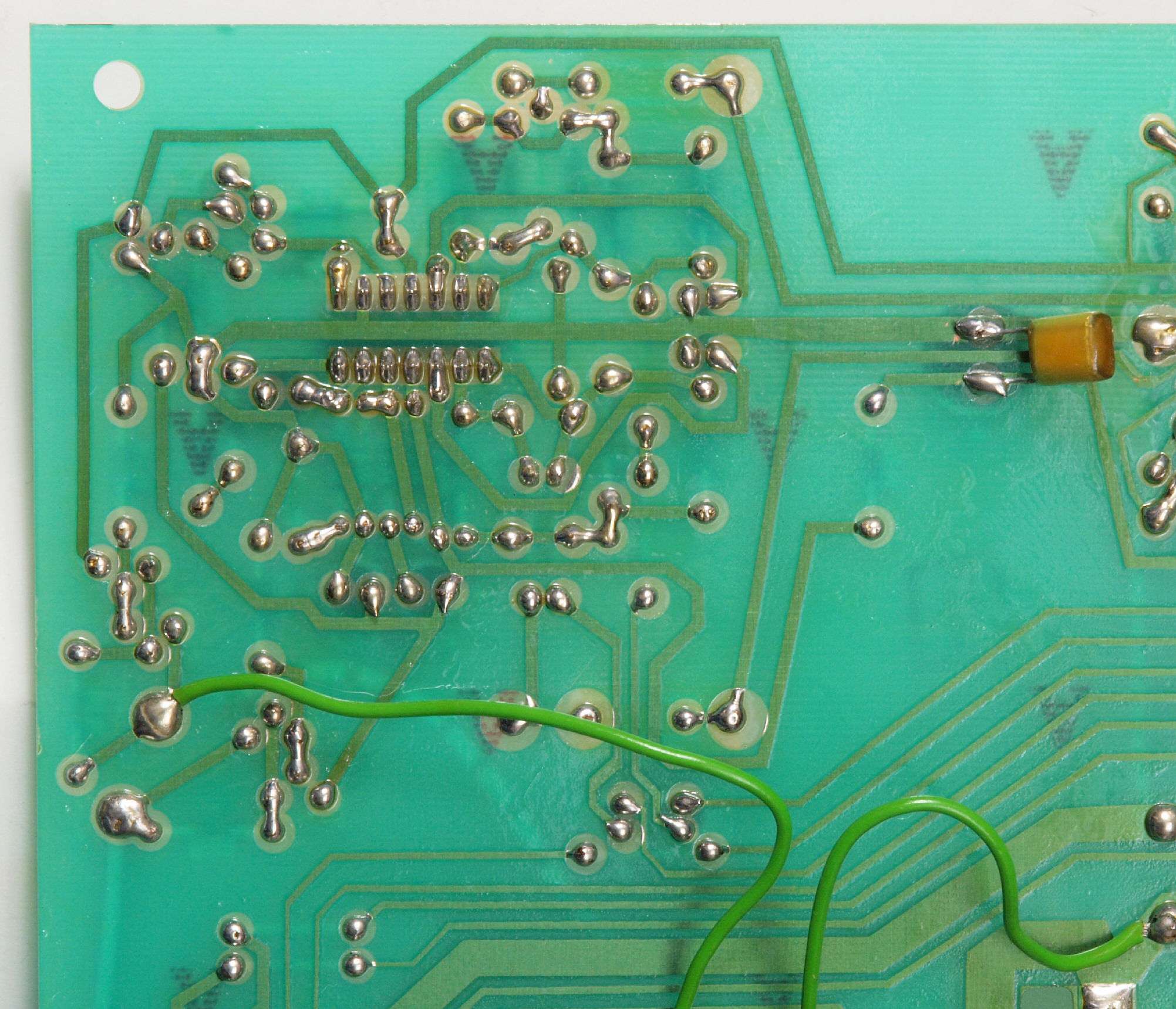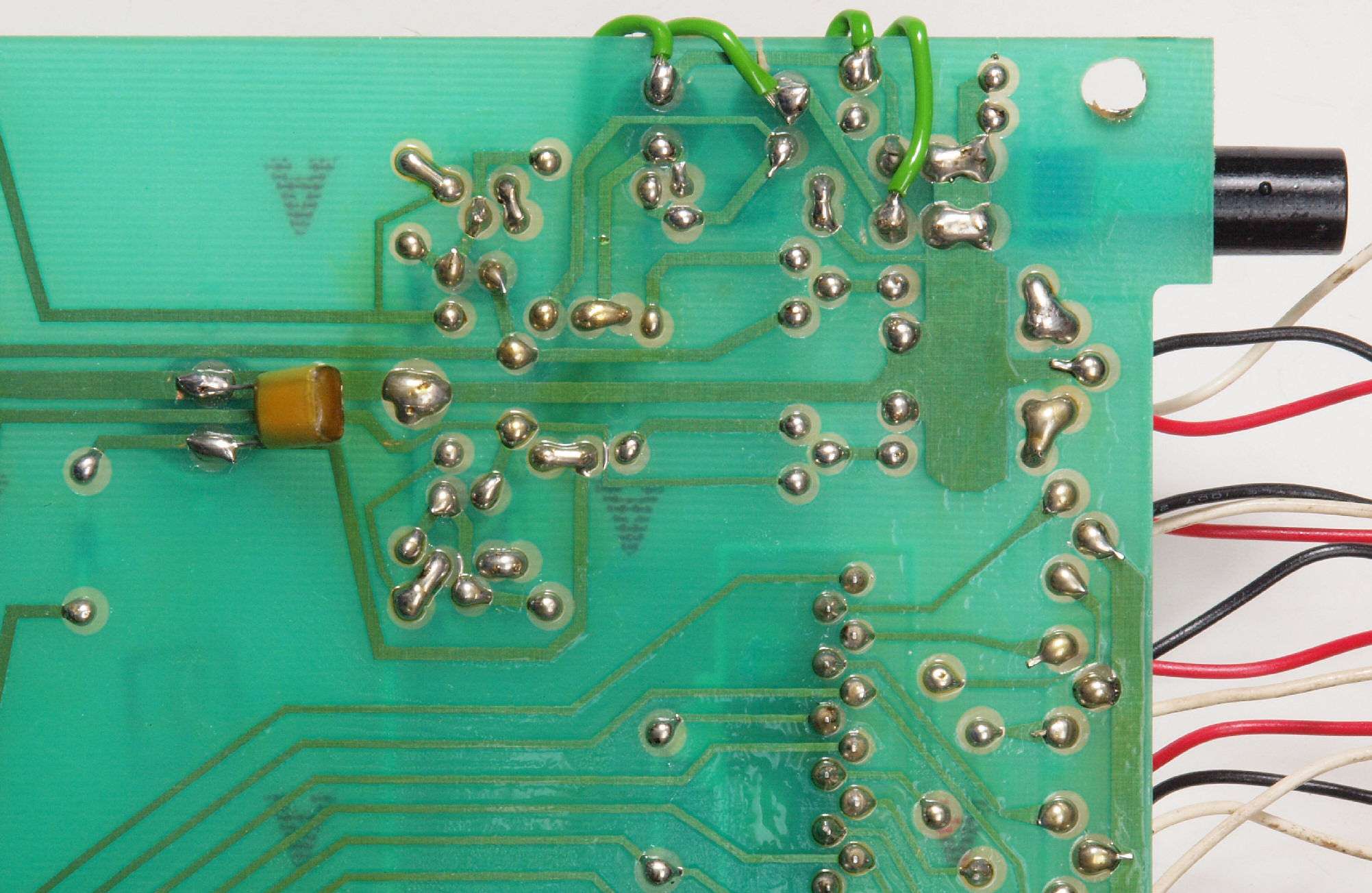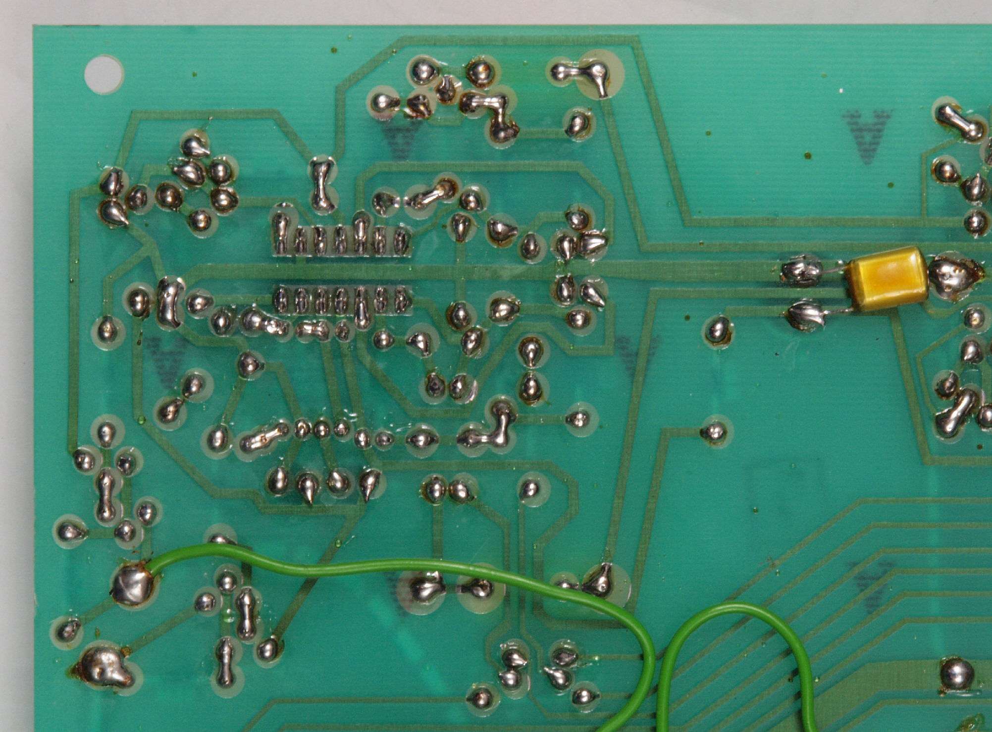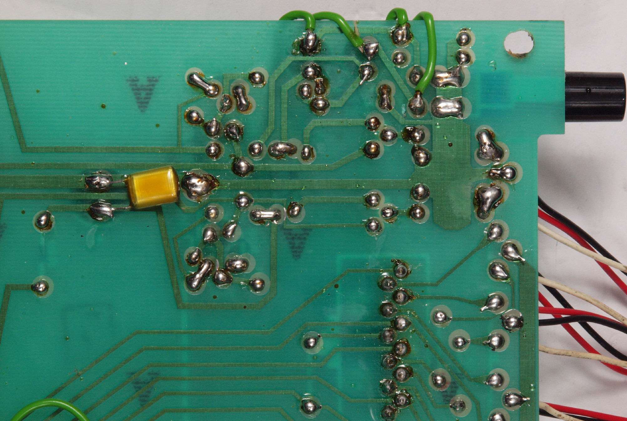 | C64. 修理(半田補正)後 MC基板裏、 半田を全部やり直す。 フイルムコンデンサー1個追加。 | ||||||||||||||||||||