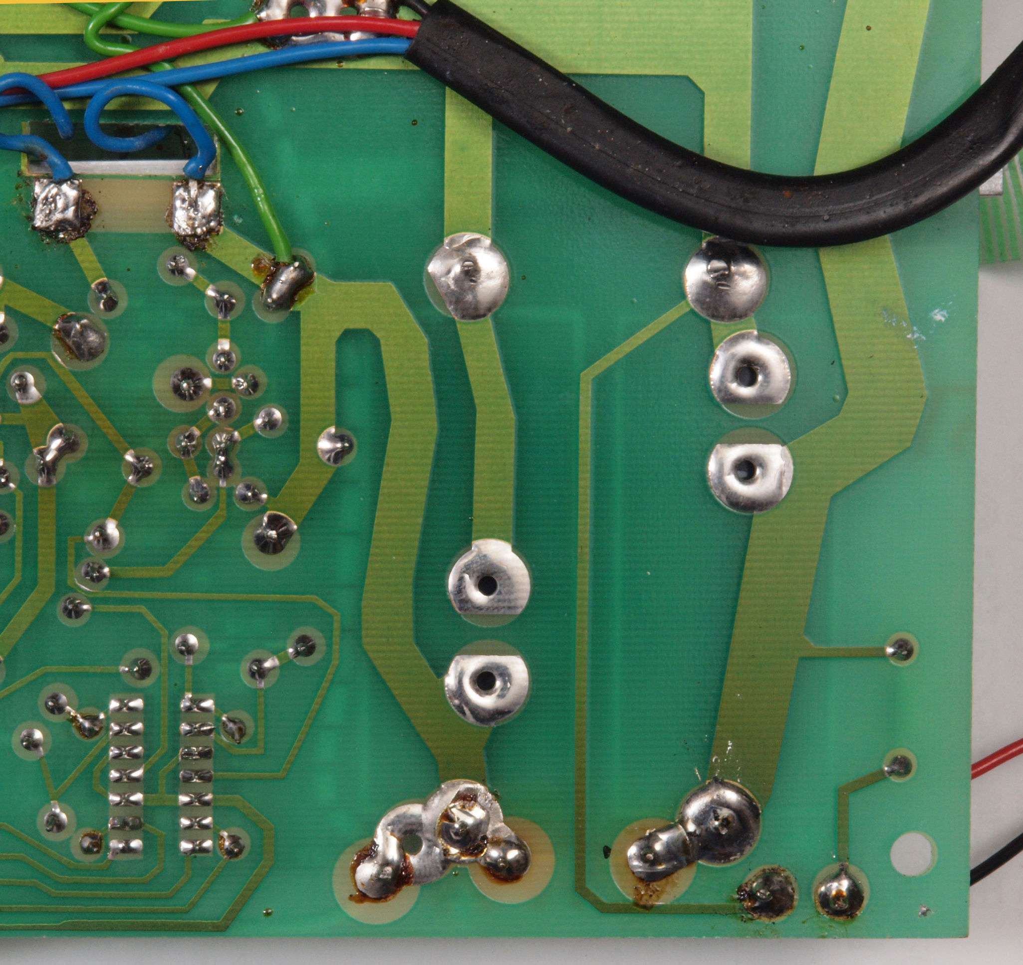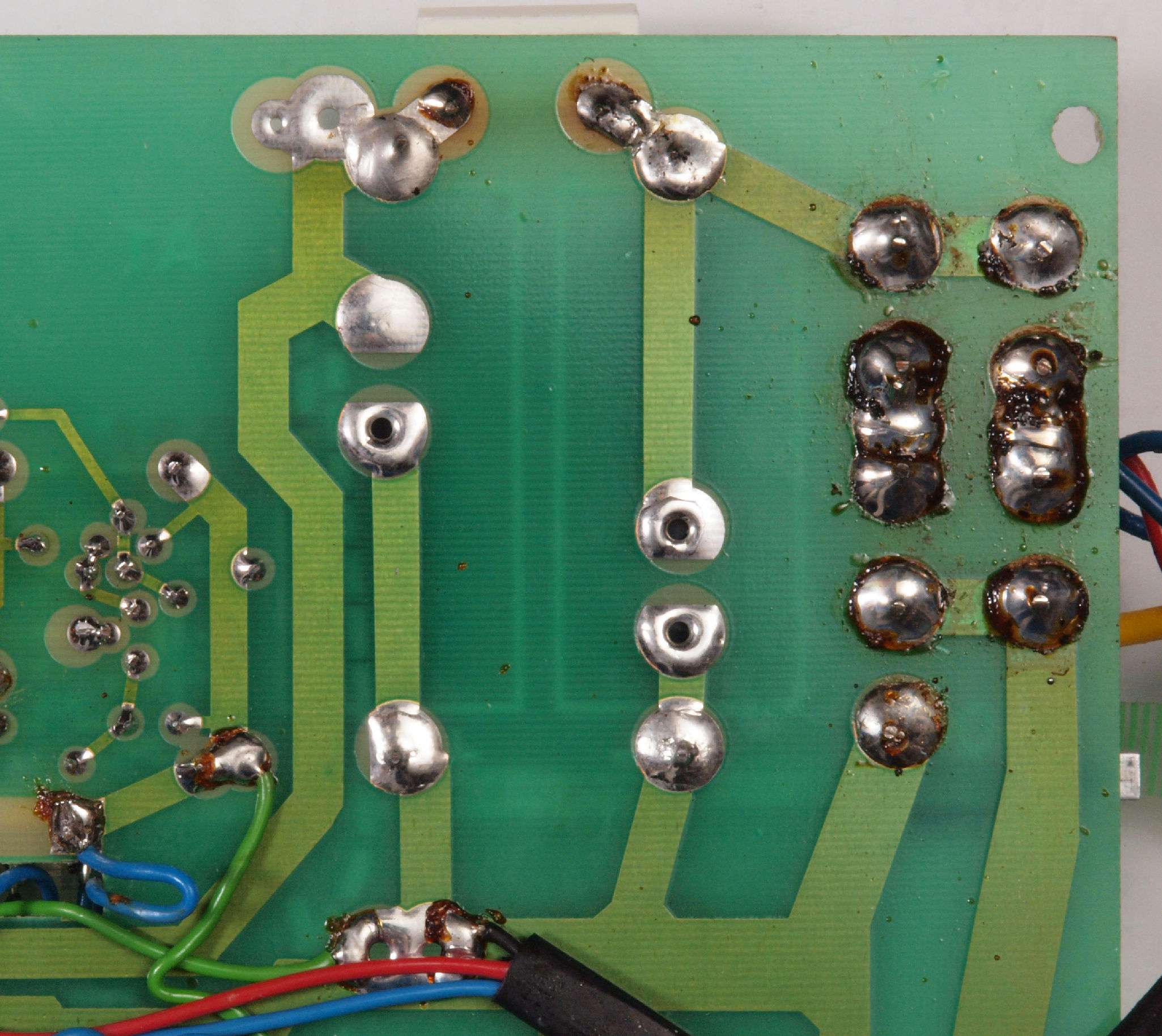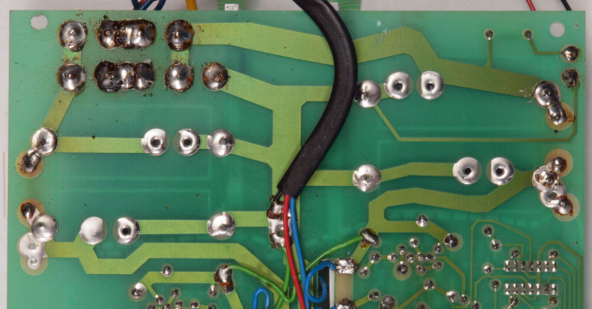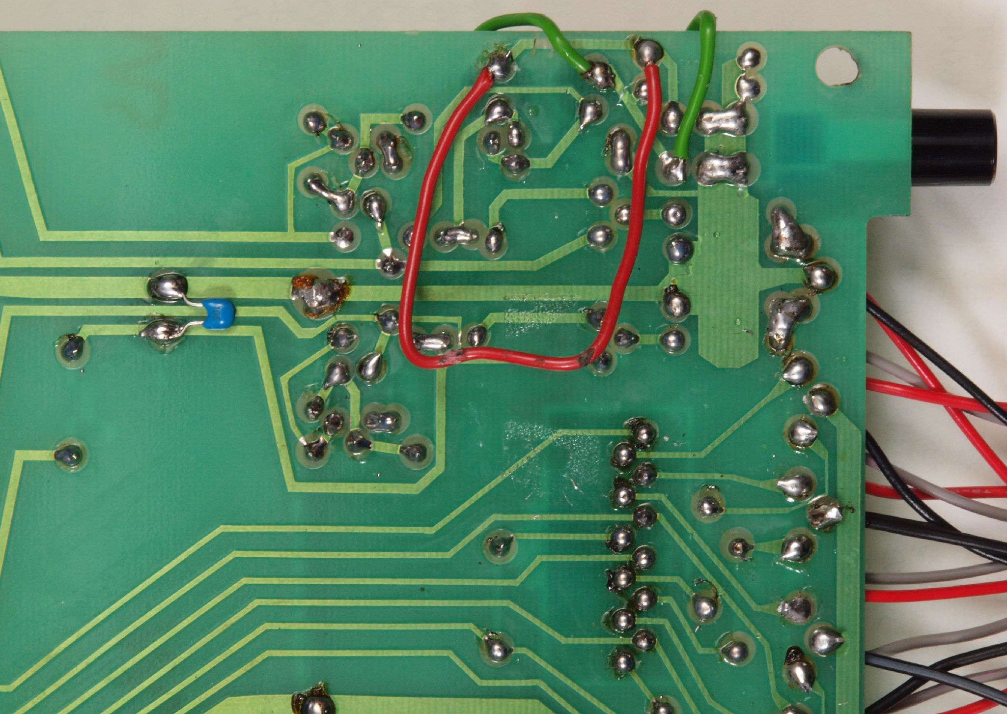 C54. 修理(半田補正)後  EQ基板裏、 半田を全部やり直す。