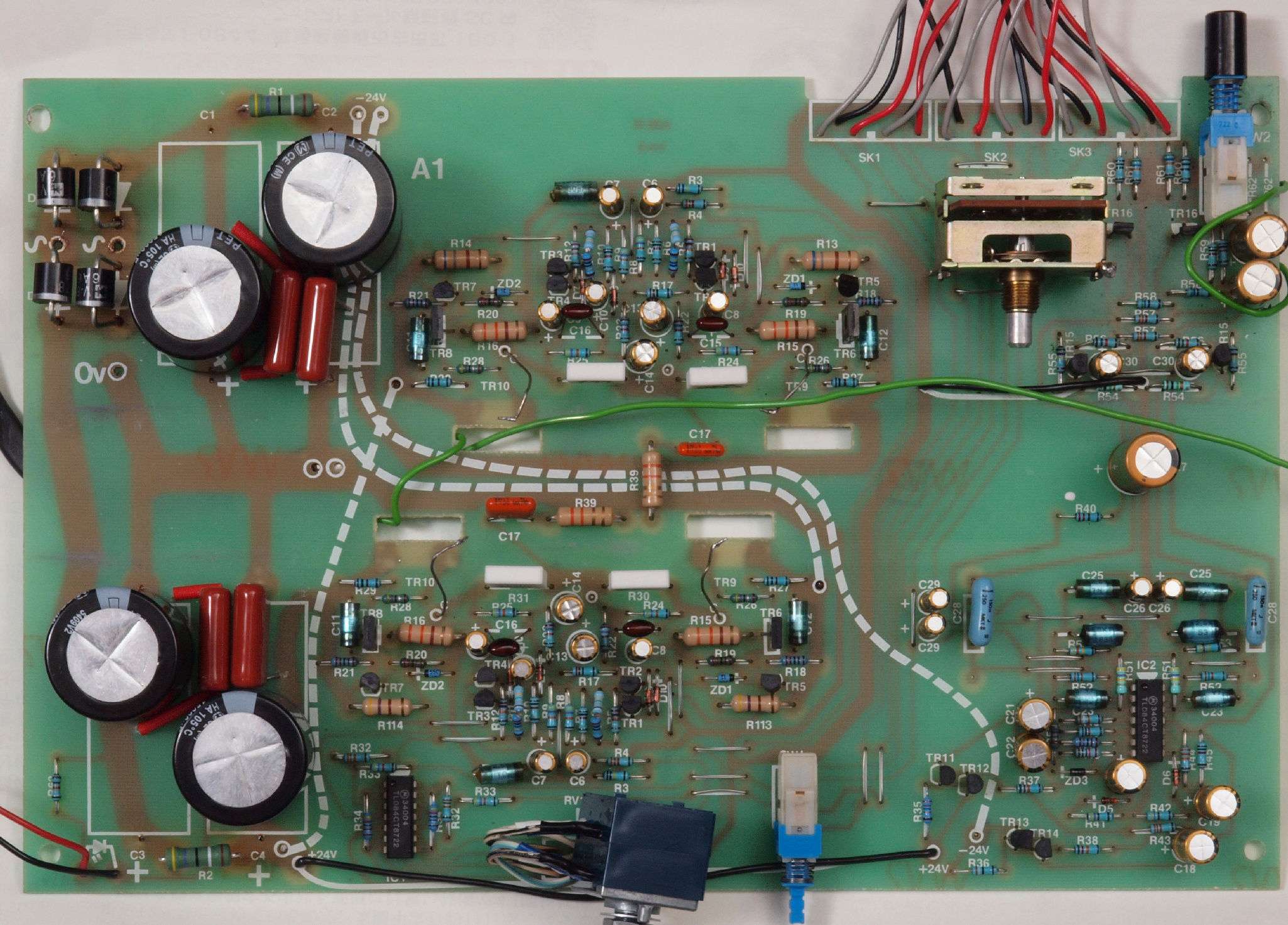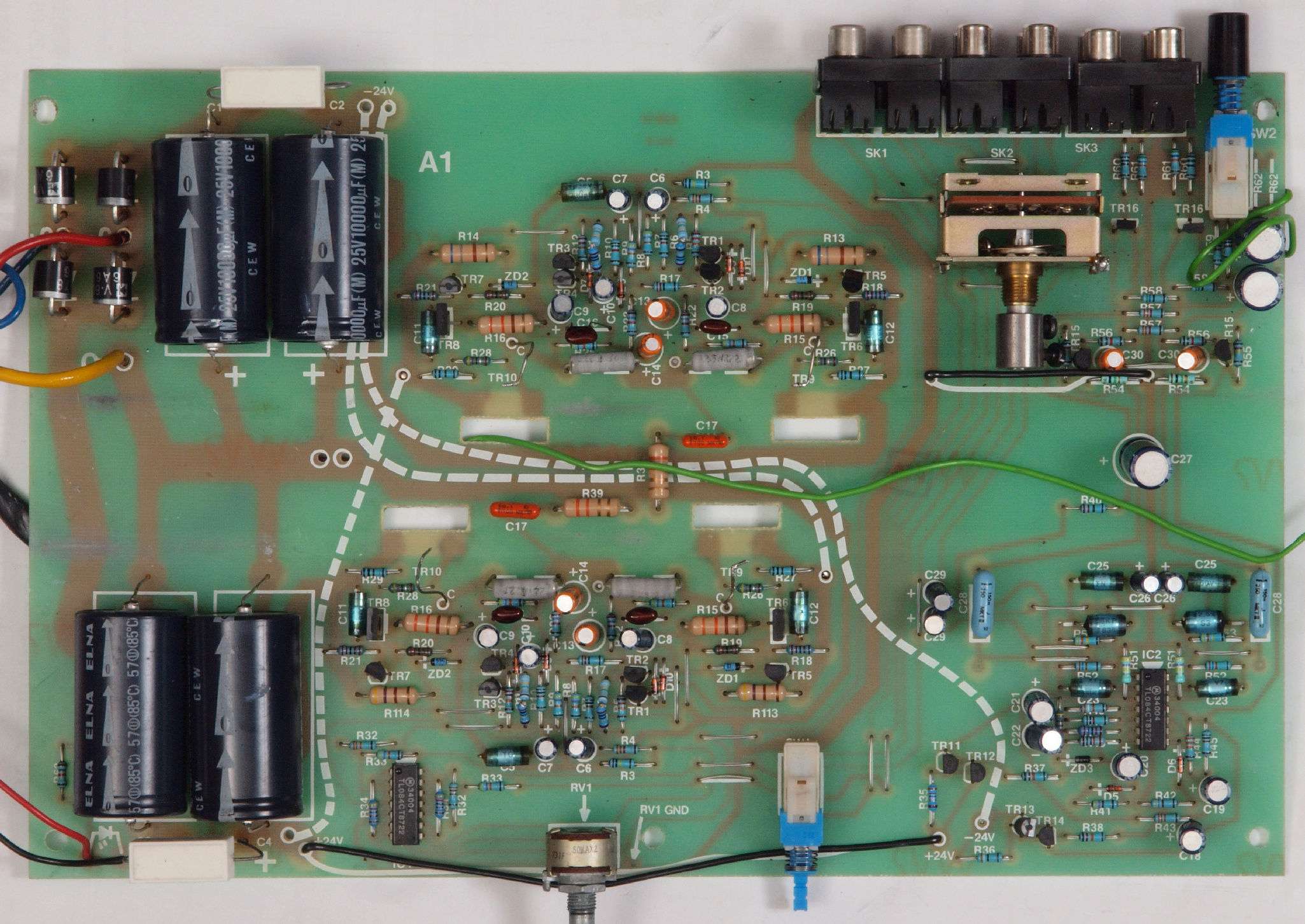 C12. 修理後 基板 電解コンデンサー31個交換、フイルムコンデンサー9個追加。