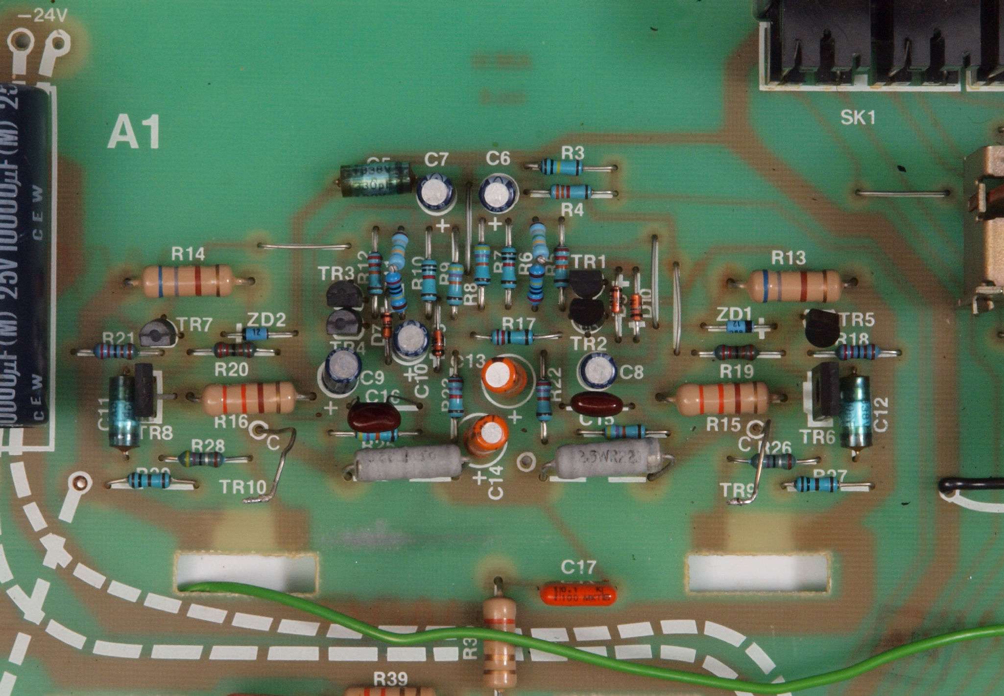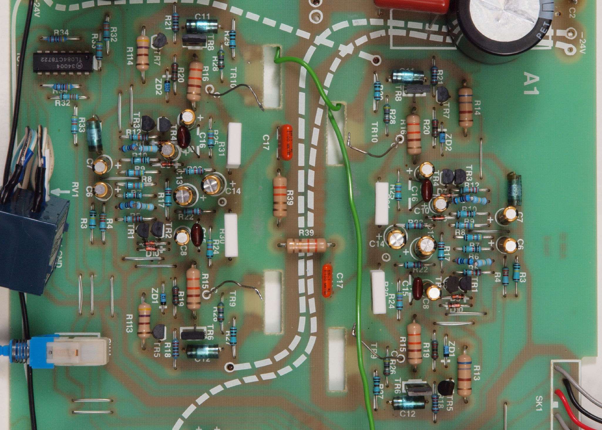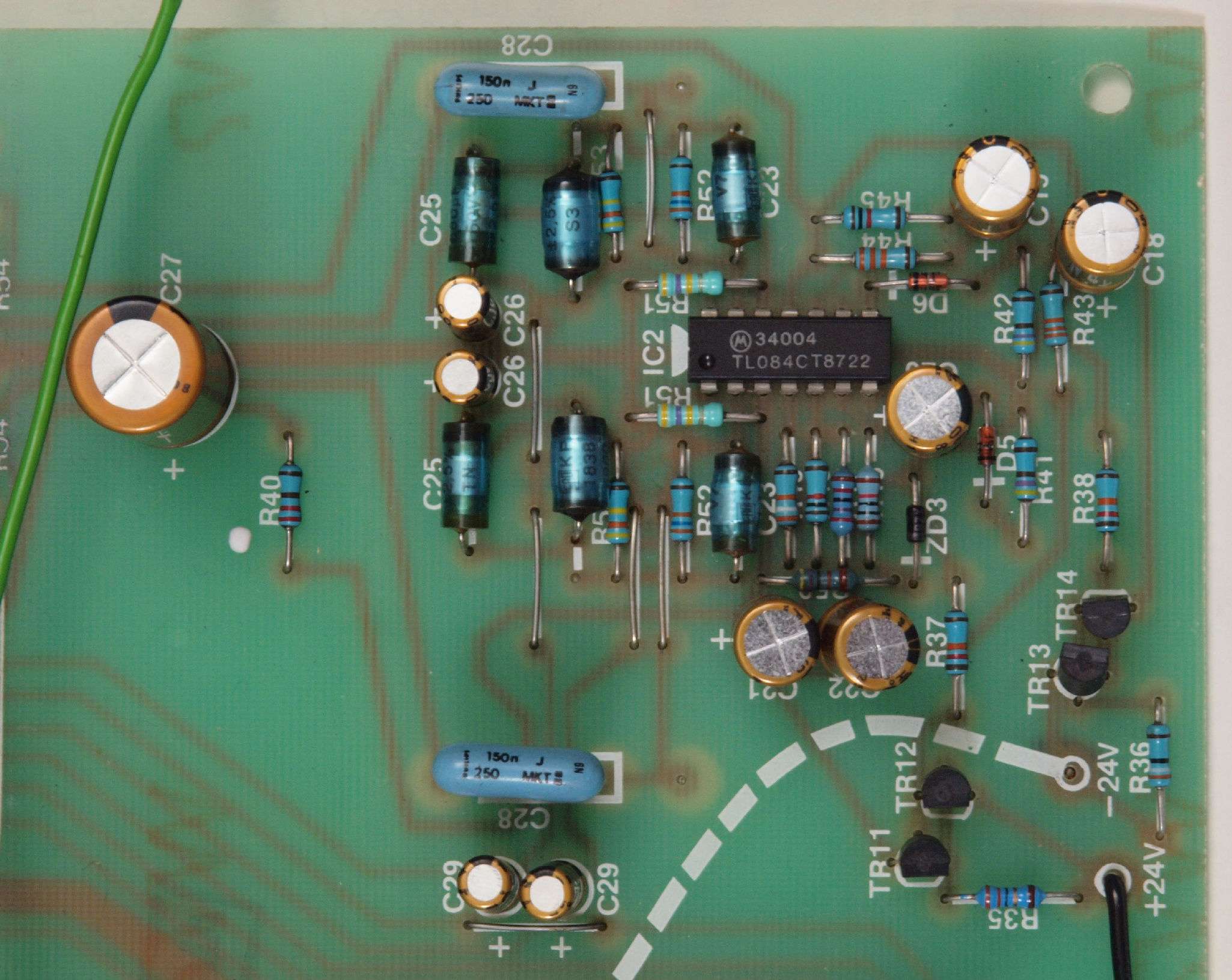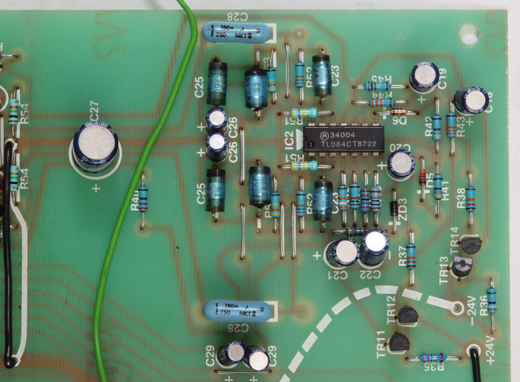 C24. 修理(半田補正)後 AMP基板裏、 半田を全部やり直す。