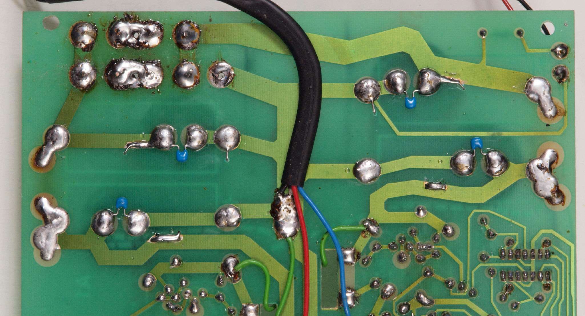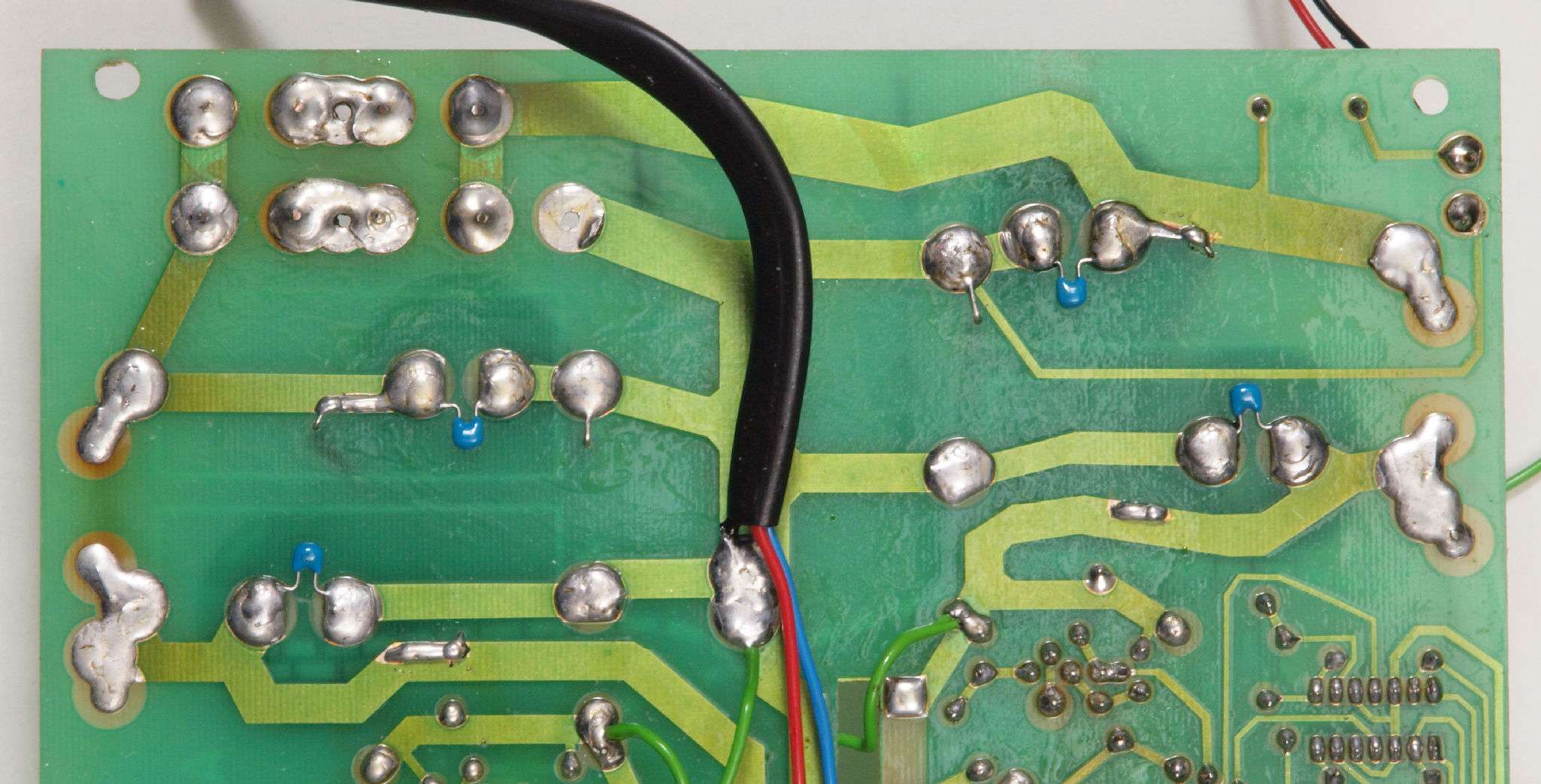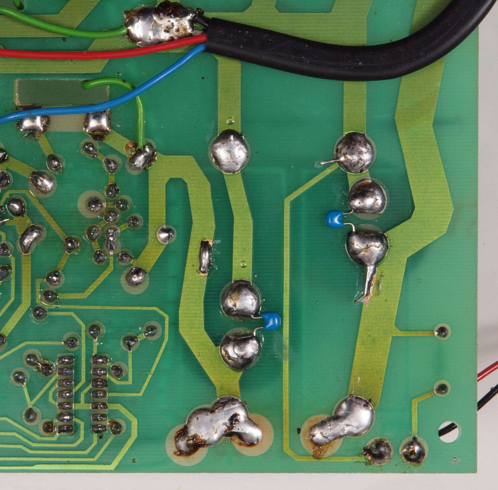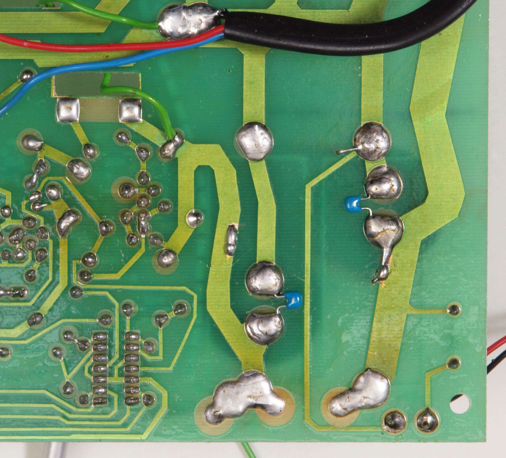 C84. 修理(半田補正)後 −側電源基板裏、 半田を全部やり直す。