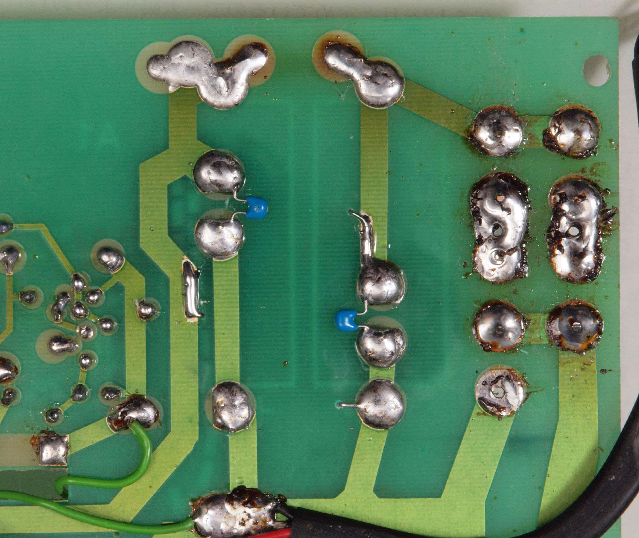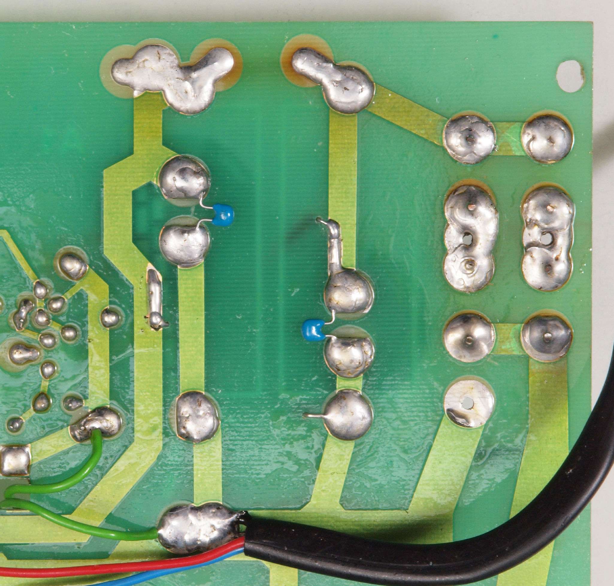 C94. 修理(半田補正)後 +側電源基板裏、 半田を全部やり直す。