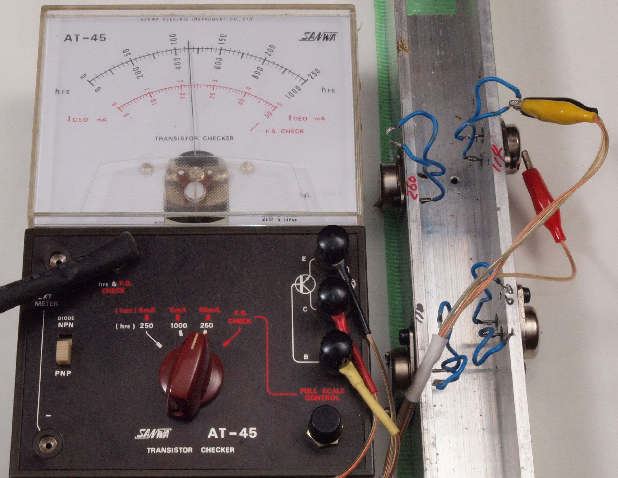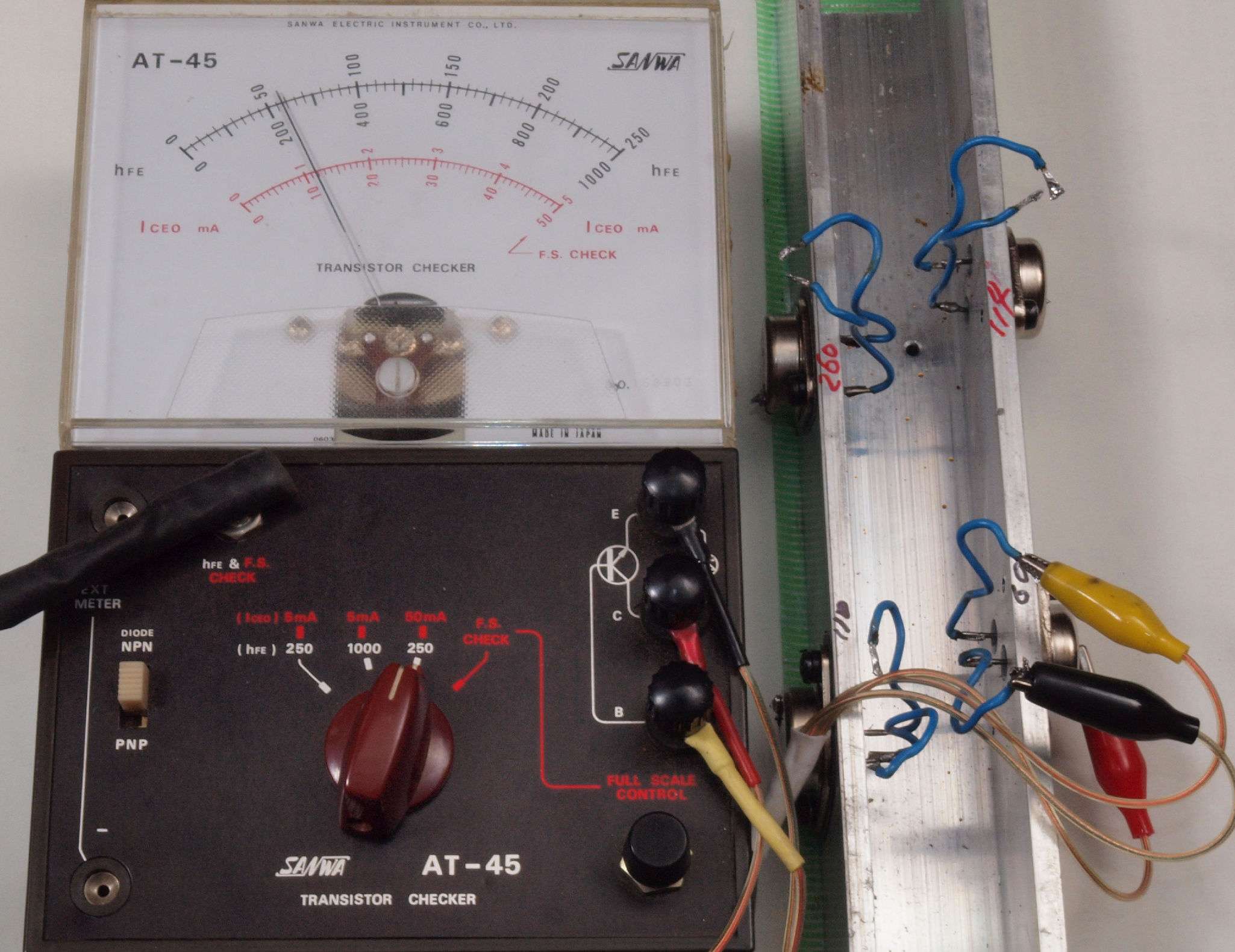 T5. 修理中 購入終段TR(トランジスター)測定。