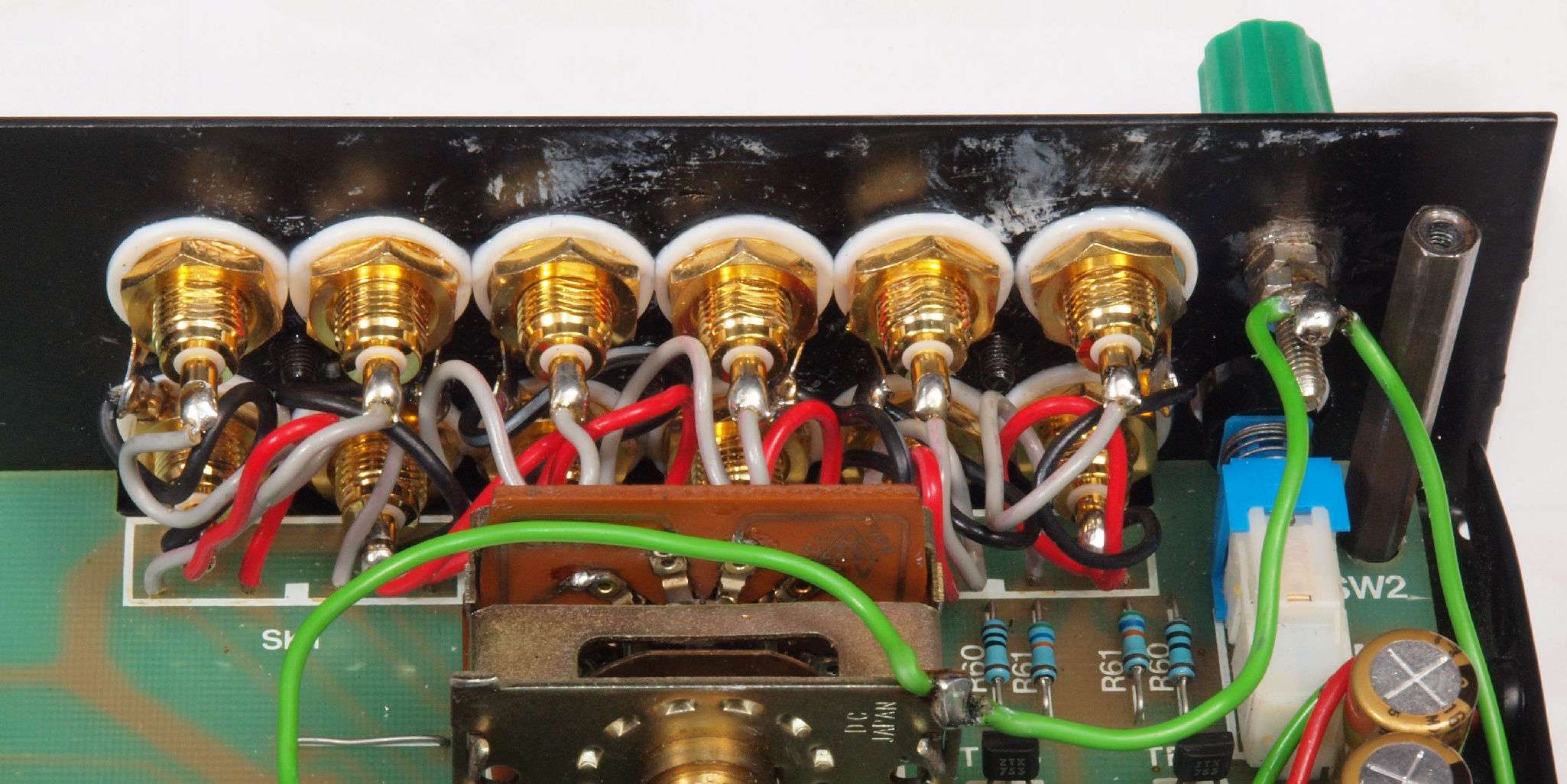 A52. 点検中 入出RCA端子郡、 テフロン絶縁RCA端子と交換。