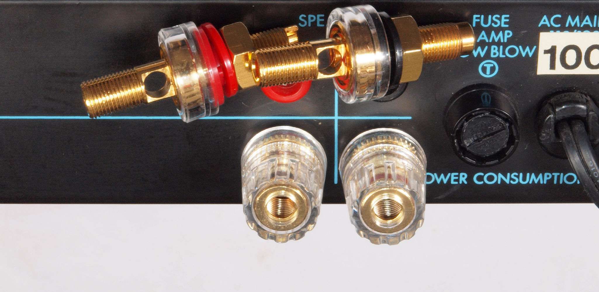 A54. 点検中 交換するテフロン絶縁製RCA端子。 中心電極は円筒状で4つ割方式。