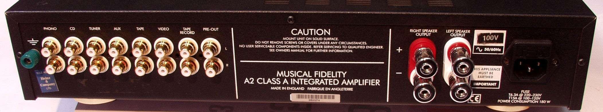 | S. Musical Fidelity A2 の仕様(マニアル・カタログより) | ||||||||||||||||||||||