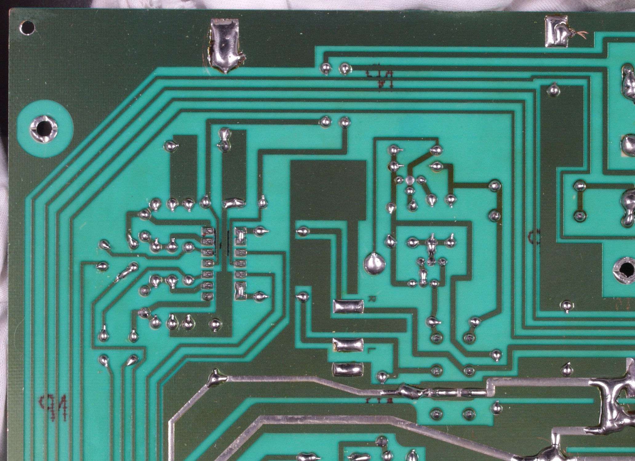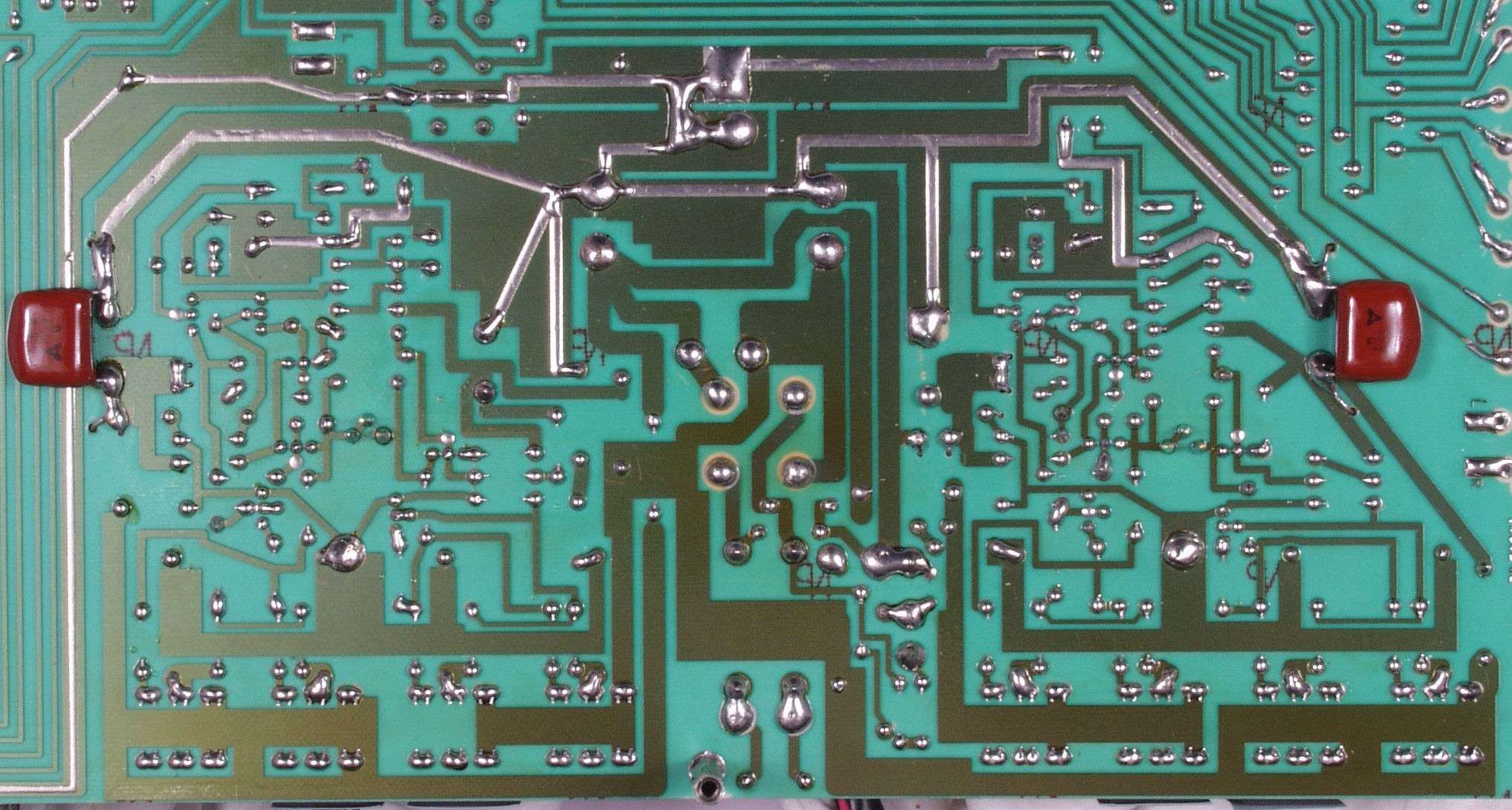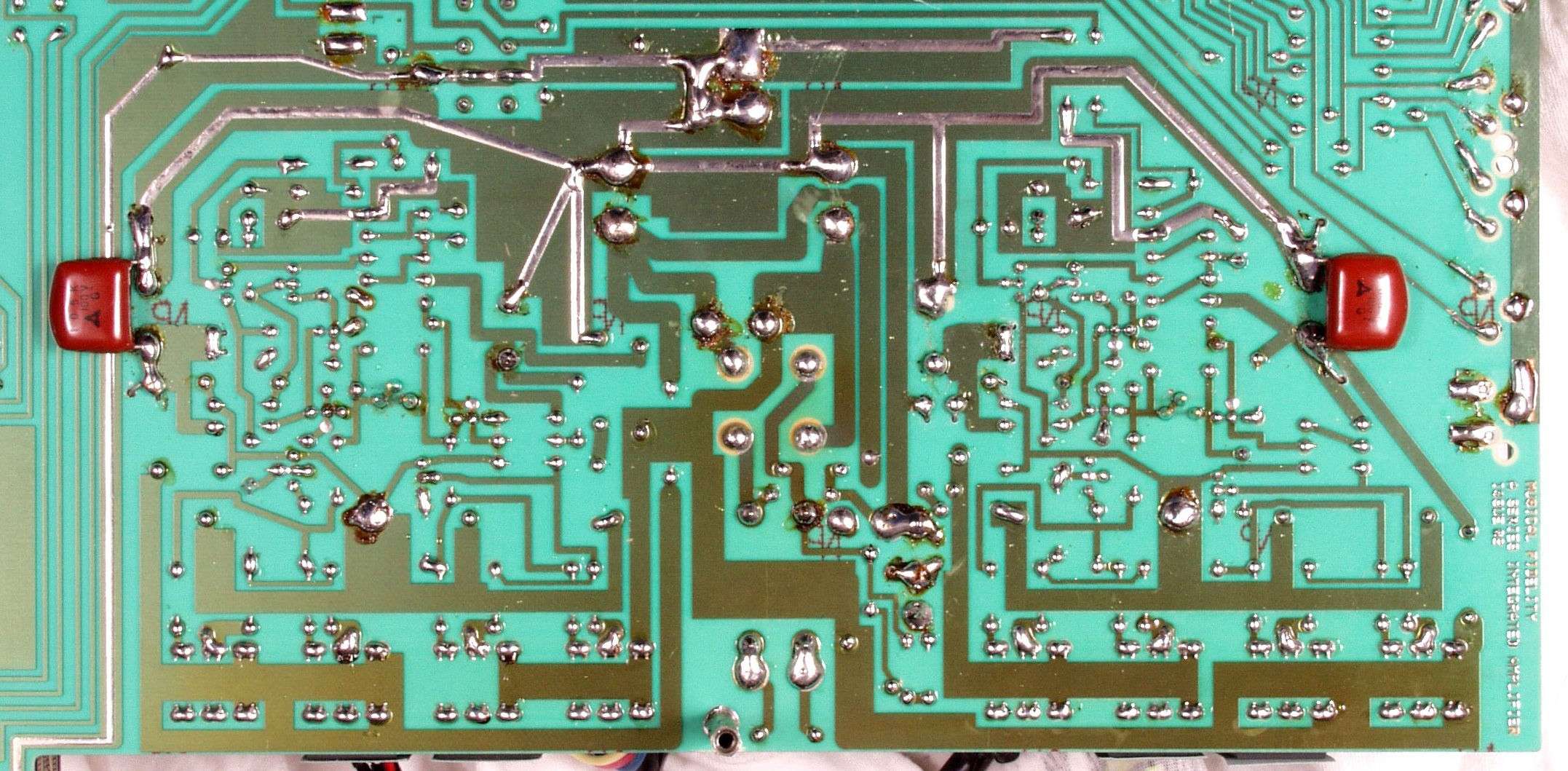 | C4D. 修理(半田補正)後 EQ基板裏、 半田を全部やり直す。 ジャンパー線や引き出し線は、基板の為に、表に移動 | ||||||||||||||||||||||