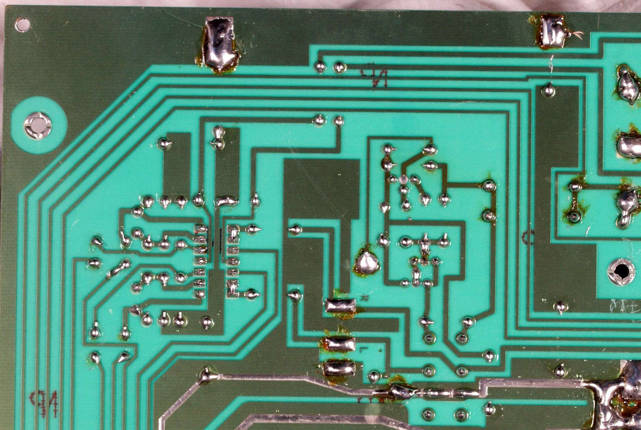 | C1C1. 修理前 基板裏 もう少し丁寧に半田付けして欲しい | ||||||||||||||||||||||