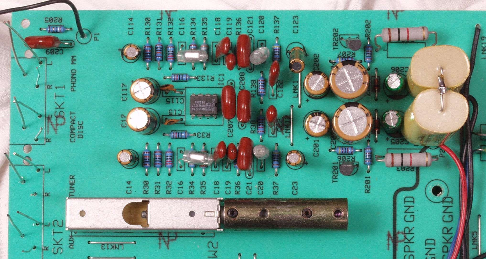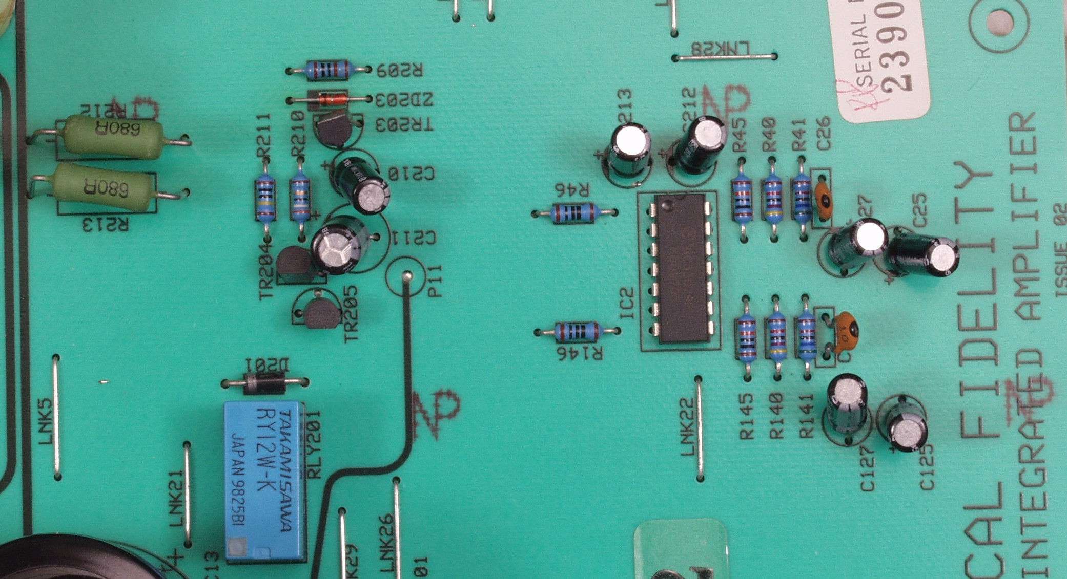 | C2B. 修理後 AMP基板 電解コンデンサー13個、半固定VR2個交換 | ||||||||||||||||||||||