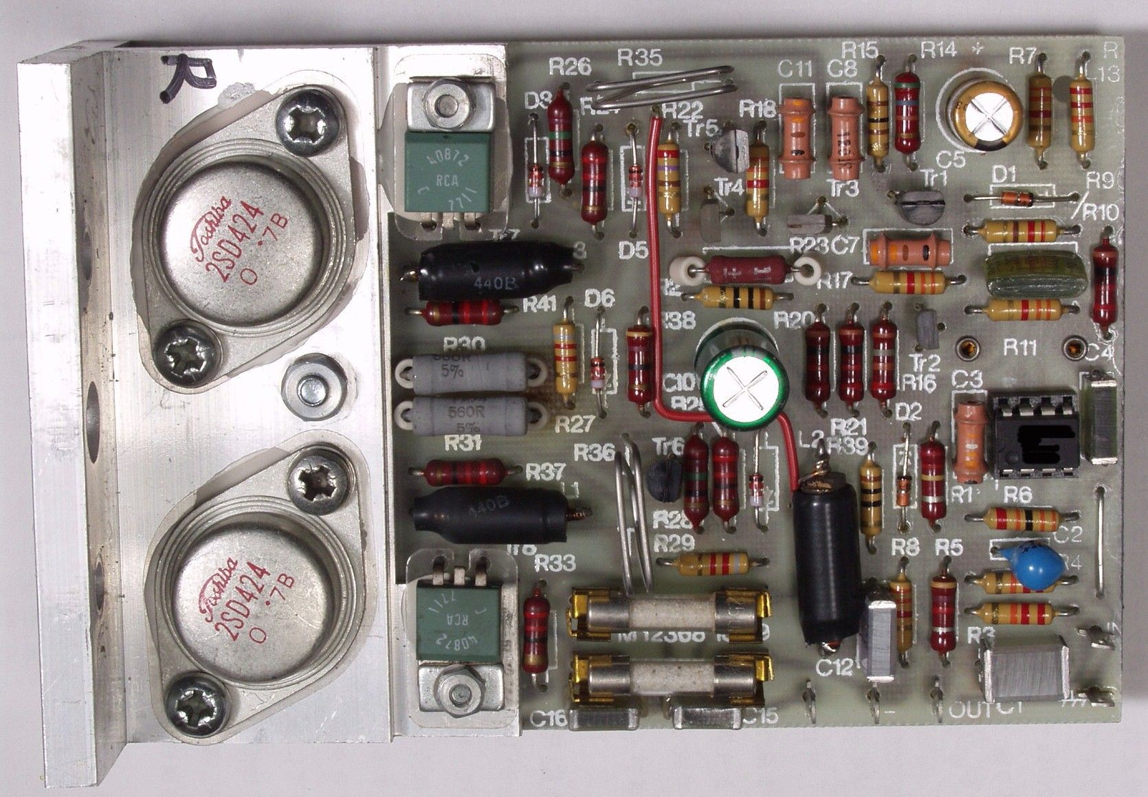 | C2B. 修理後 L側AMP基板 電解コンデンサー2個、OP−AMP交換 | ||||||||||||||||||||||||||||||||||