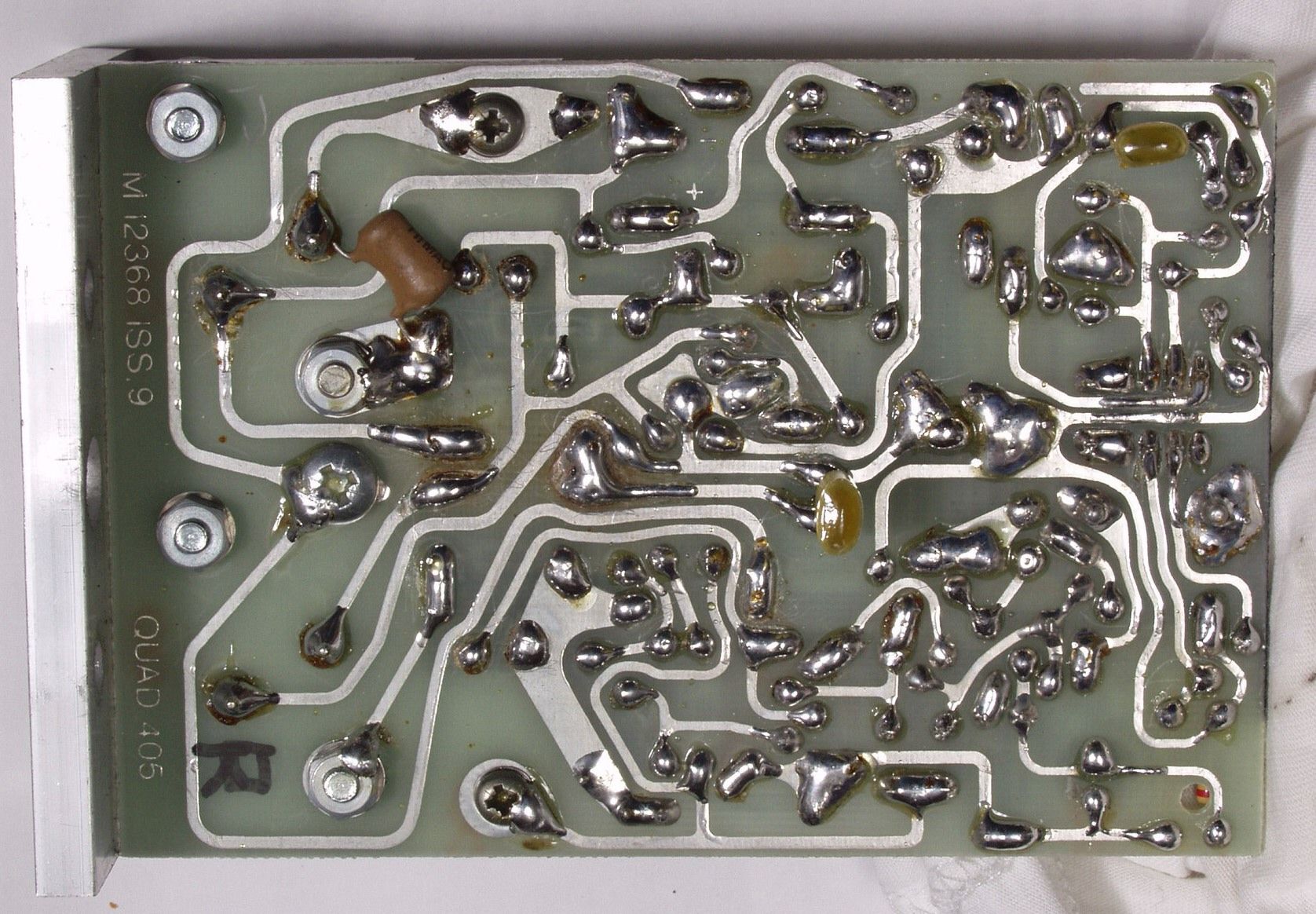 | C1D. 修理(半田補正)後 R側AMP基板裏 フイルムコンデンサー2個取付 全半田やり直し | ||||||||||||||||||||||||||||||||||