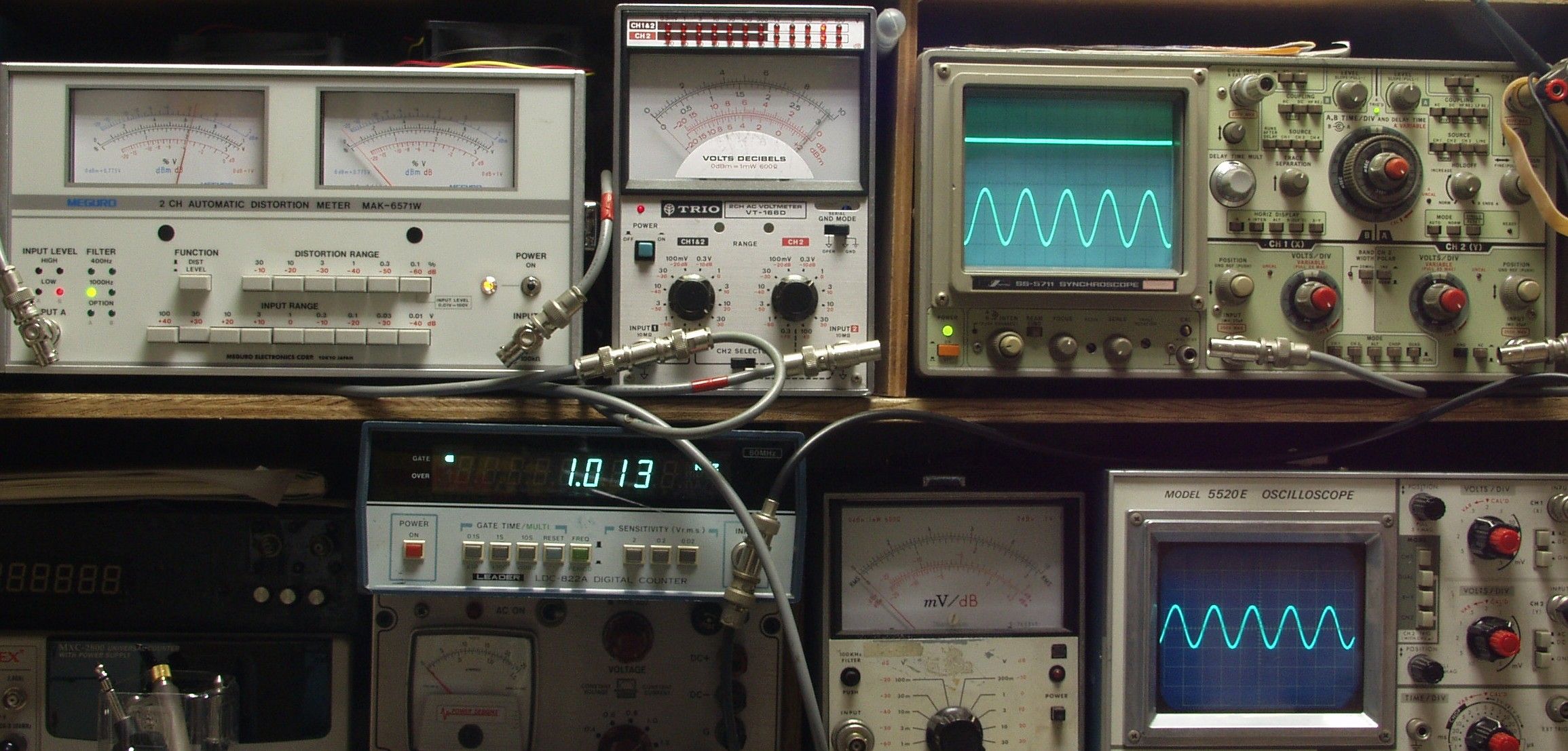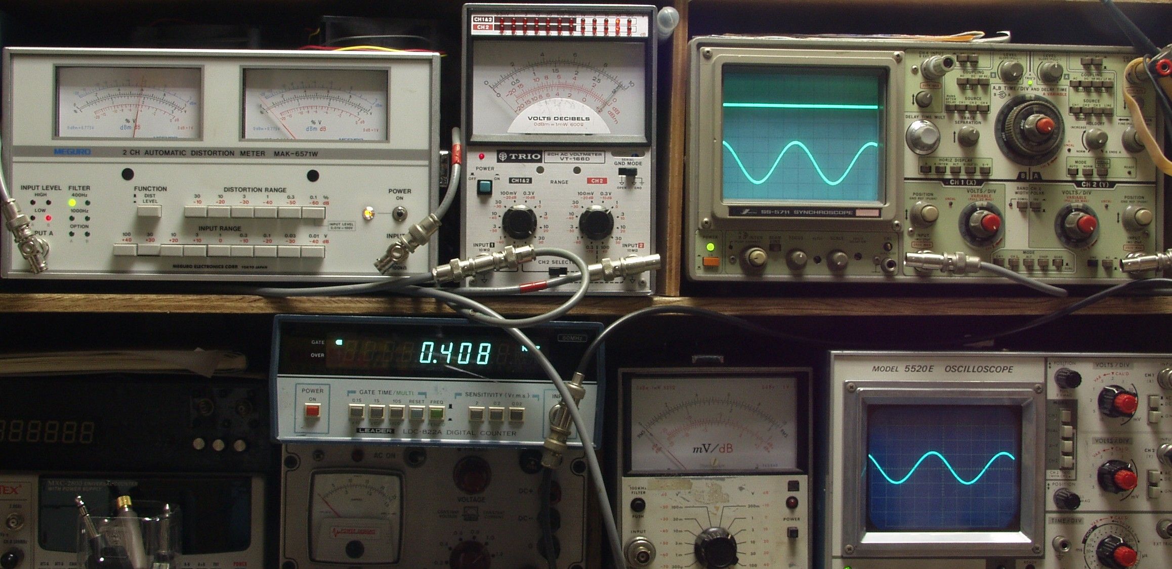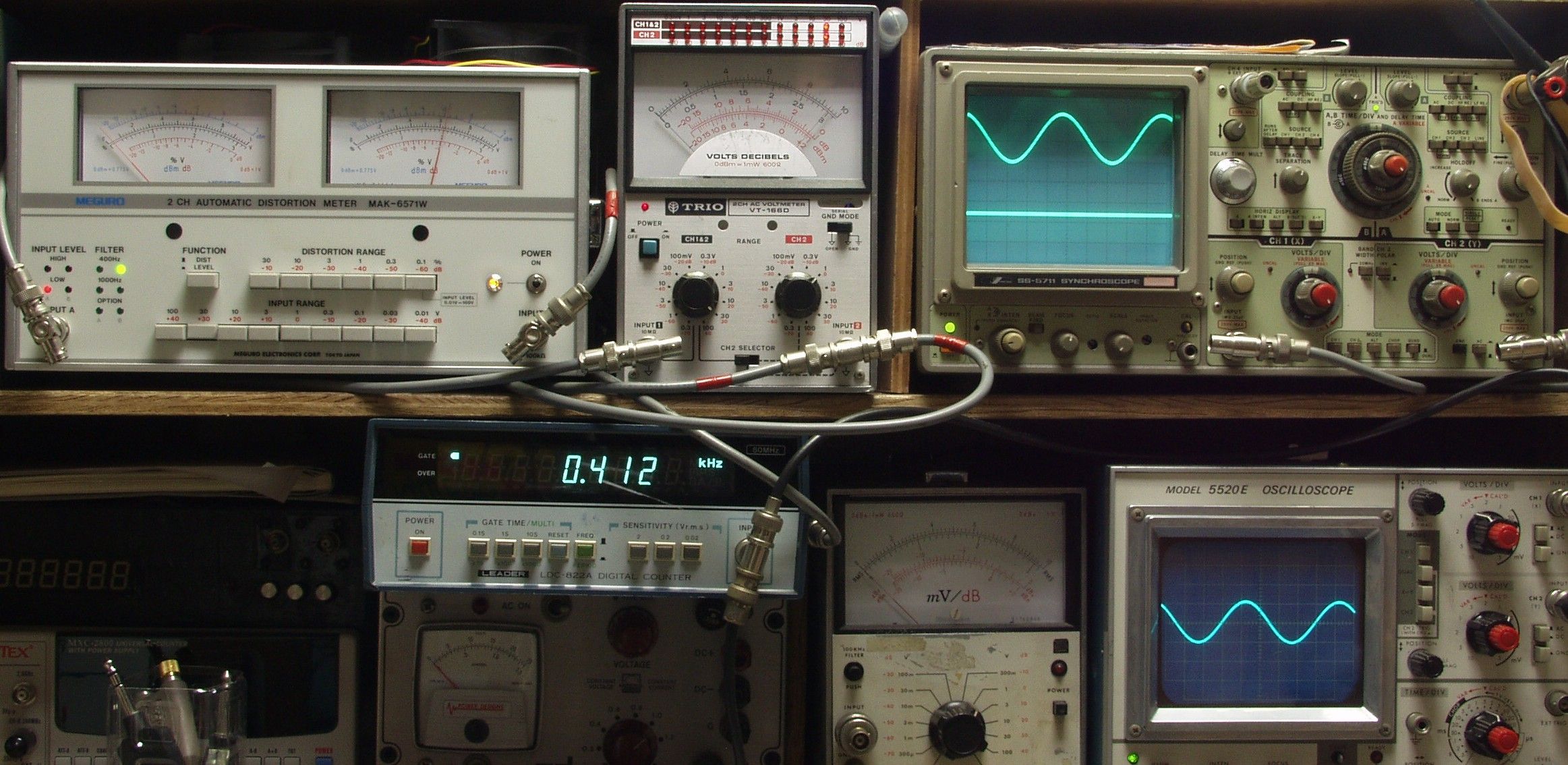| E. 調整・測定 E1. 出力、歪み調整・測定 電源電圧は110Vにて測定 |