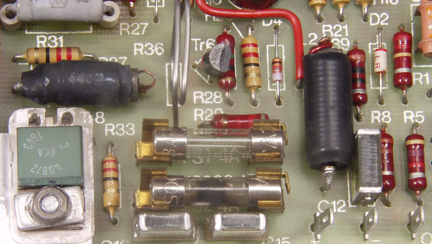 | C1A1. 修理前 R側AMP基板 溶断したフューズ | ||||||||||||||||||||||||||||||||||