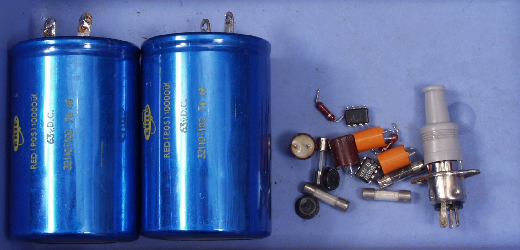 | A2B. 点検中 電解コンデンサー比較 古いのは63V/10000μ 使用するのは71V/18000μ | ||||||||||||||||||||||||||||||||||