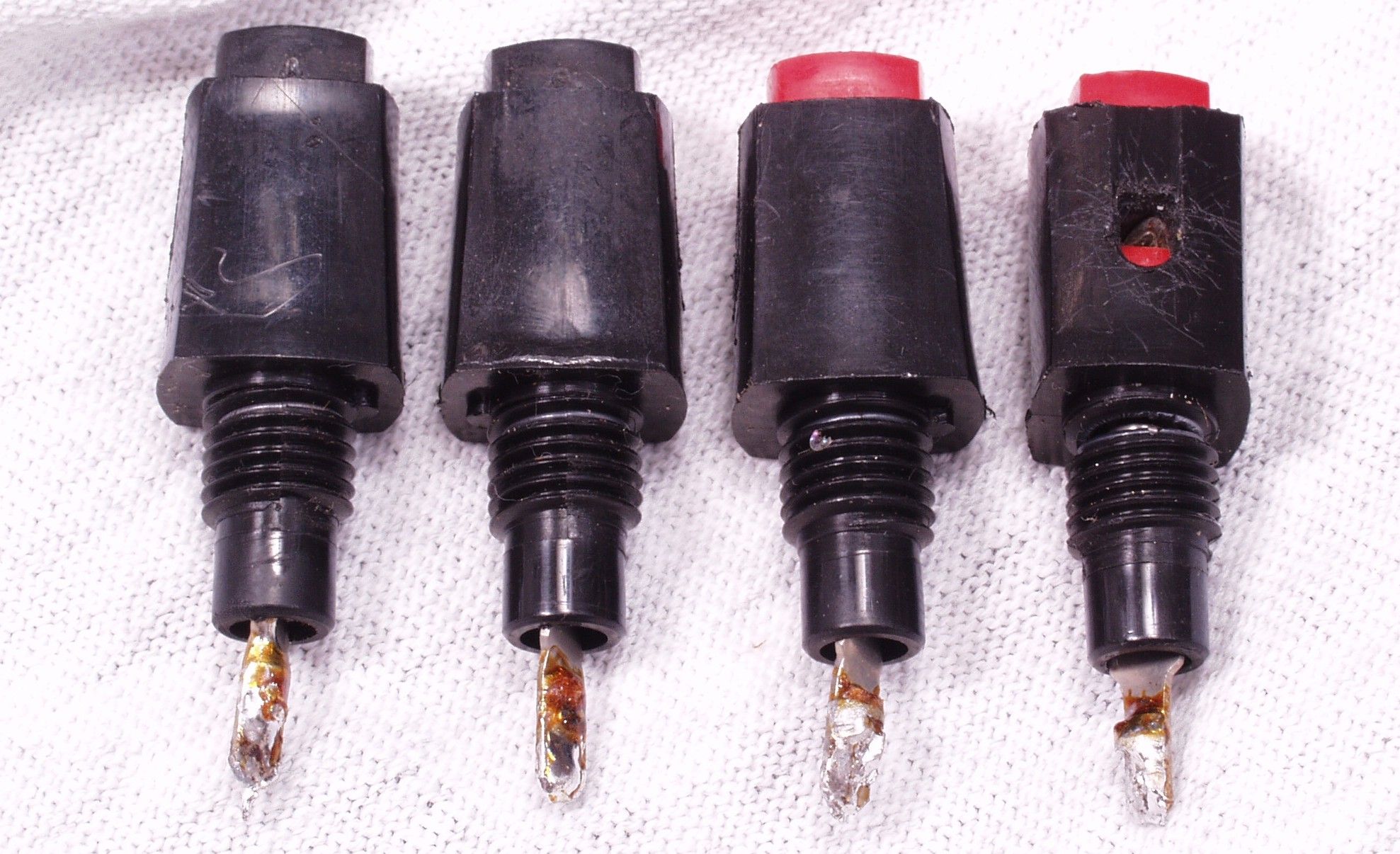 | C6B. 交換したSP端子 左端は割れており、他もネジの所に皆ヒビが入っています | ||||||||||||||||||||||||||||||||||