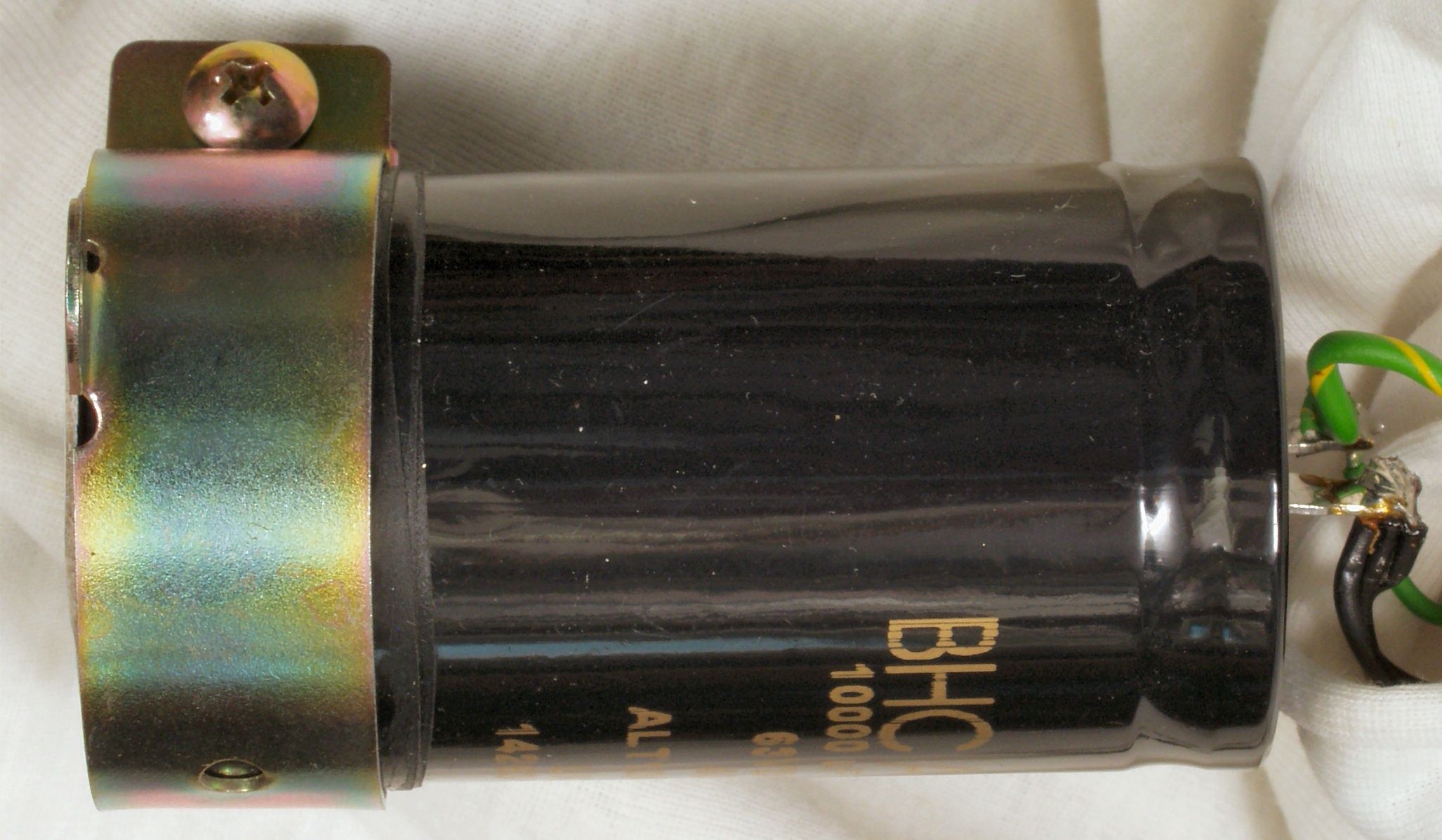 C61. 修理中 マイナス側の電解コンデンサー、横から見る。