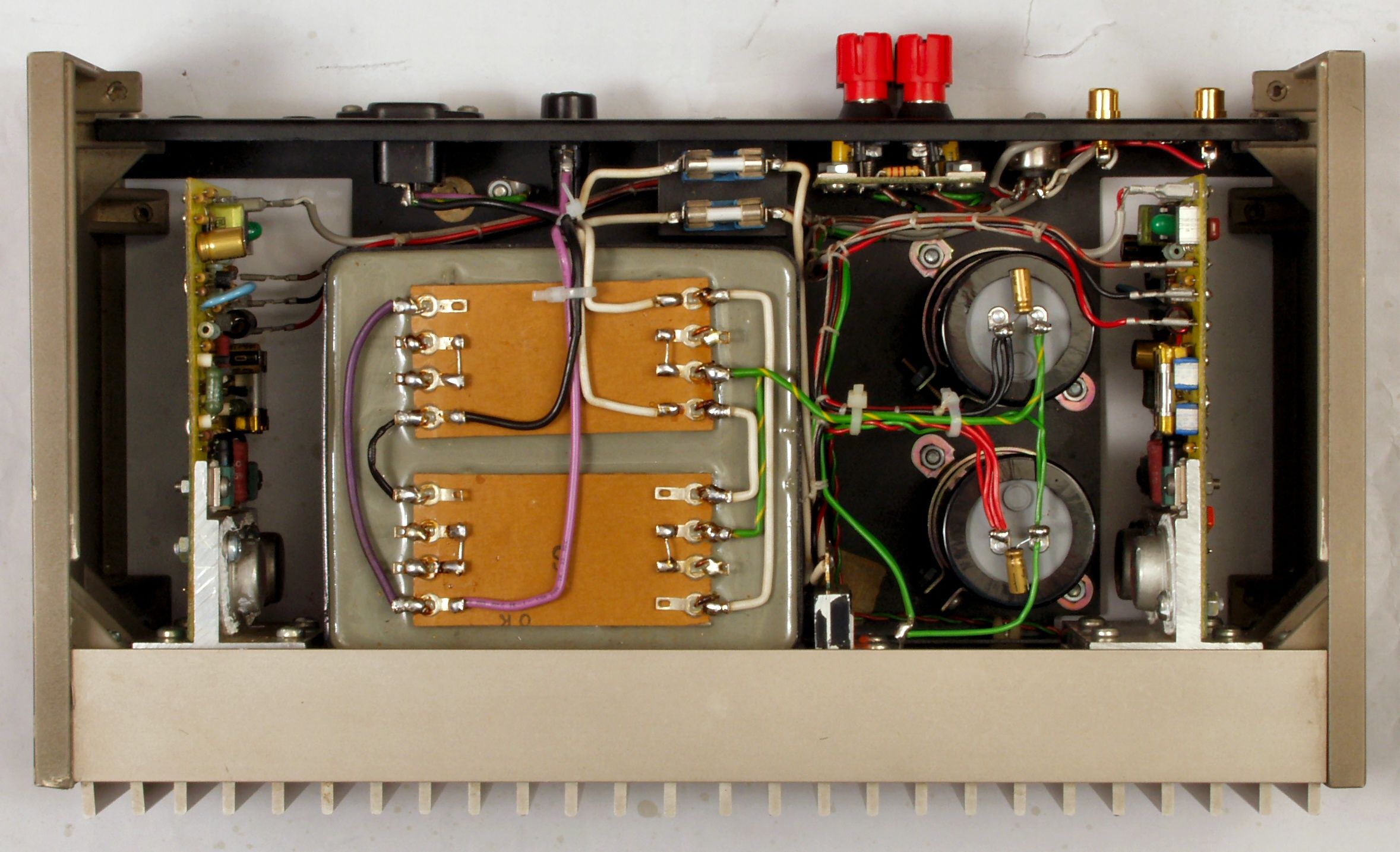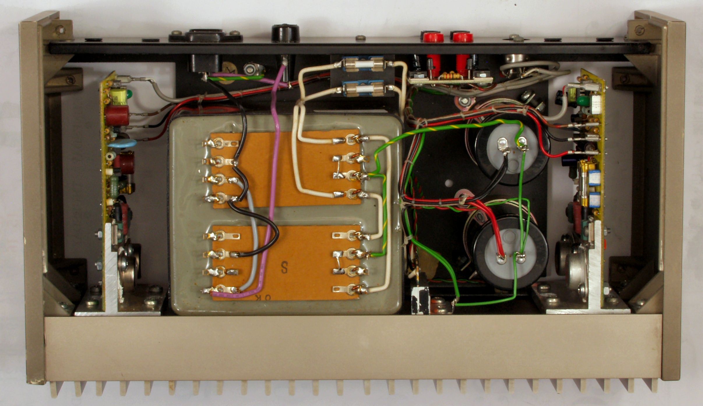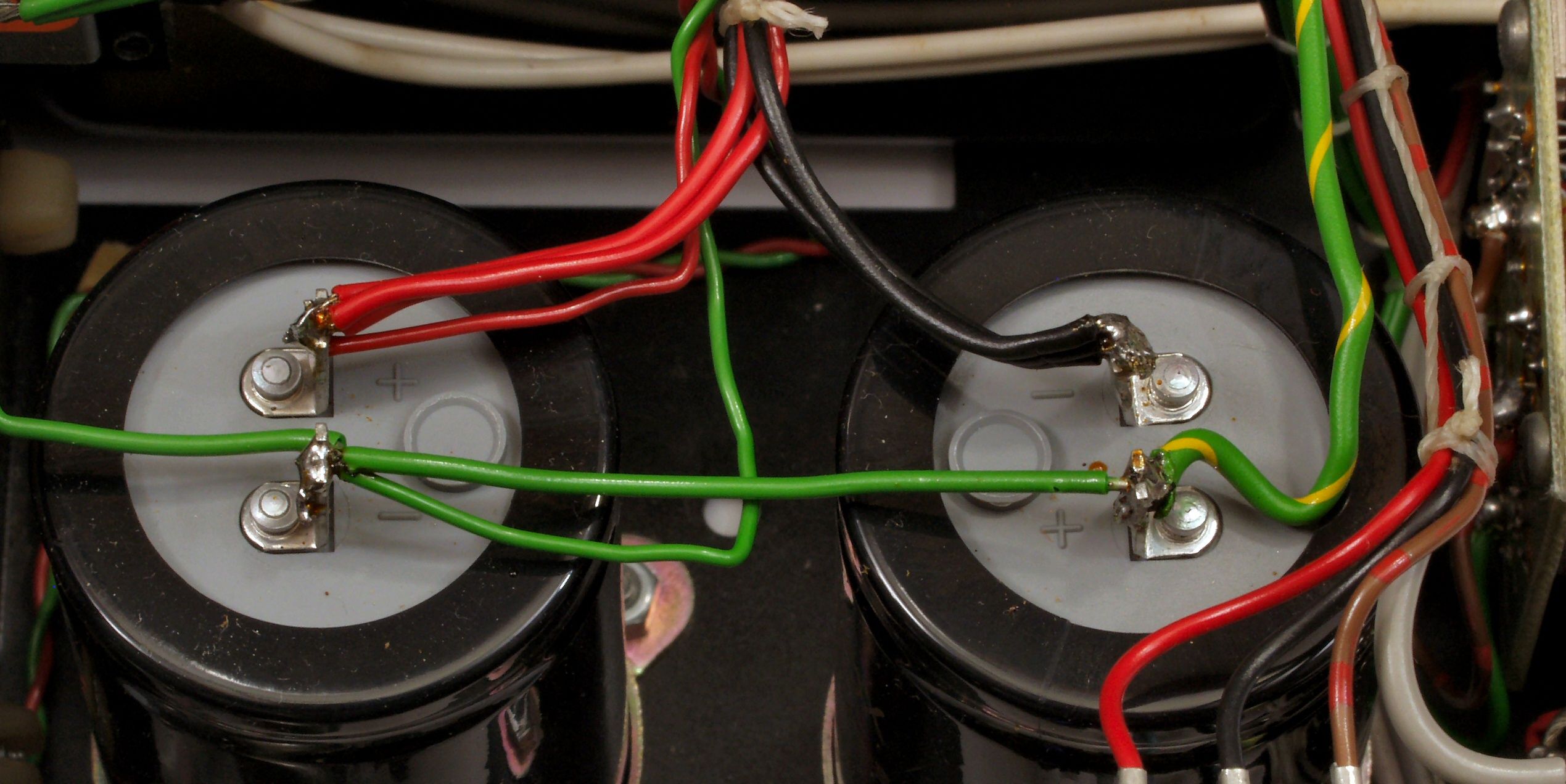 A34. 点検中 電源トランス2次側配線。 電源電解コンデンサー交換時の配線、ヒゲが出ている。