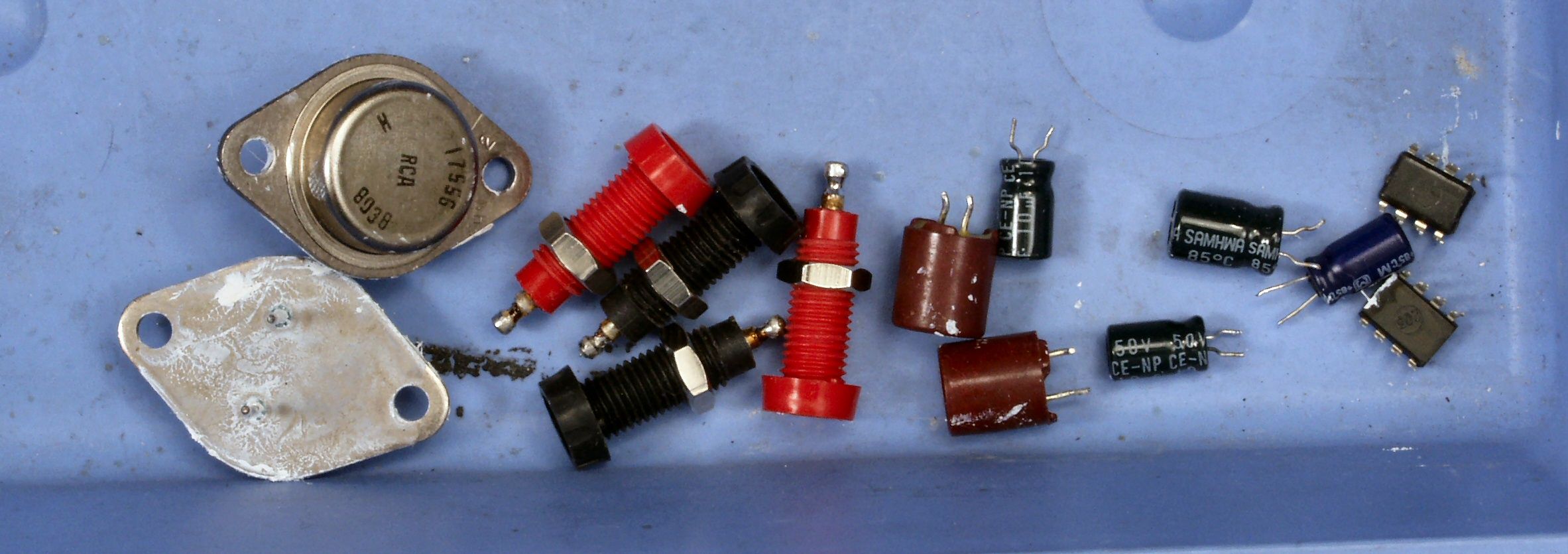 下段左端 オーディオ発振器より400HZ・1KHZの信号を出し(歪み率=約0.003%)これをAMPに入力し、出力を測定