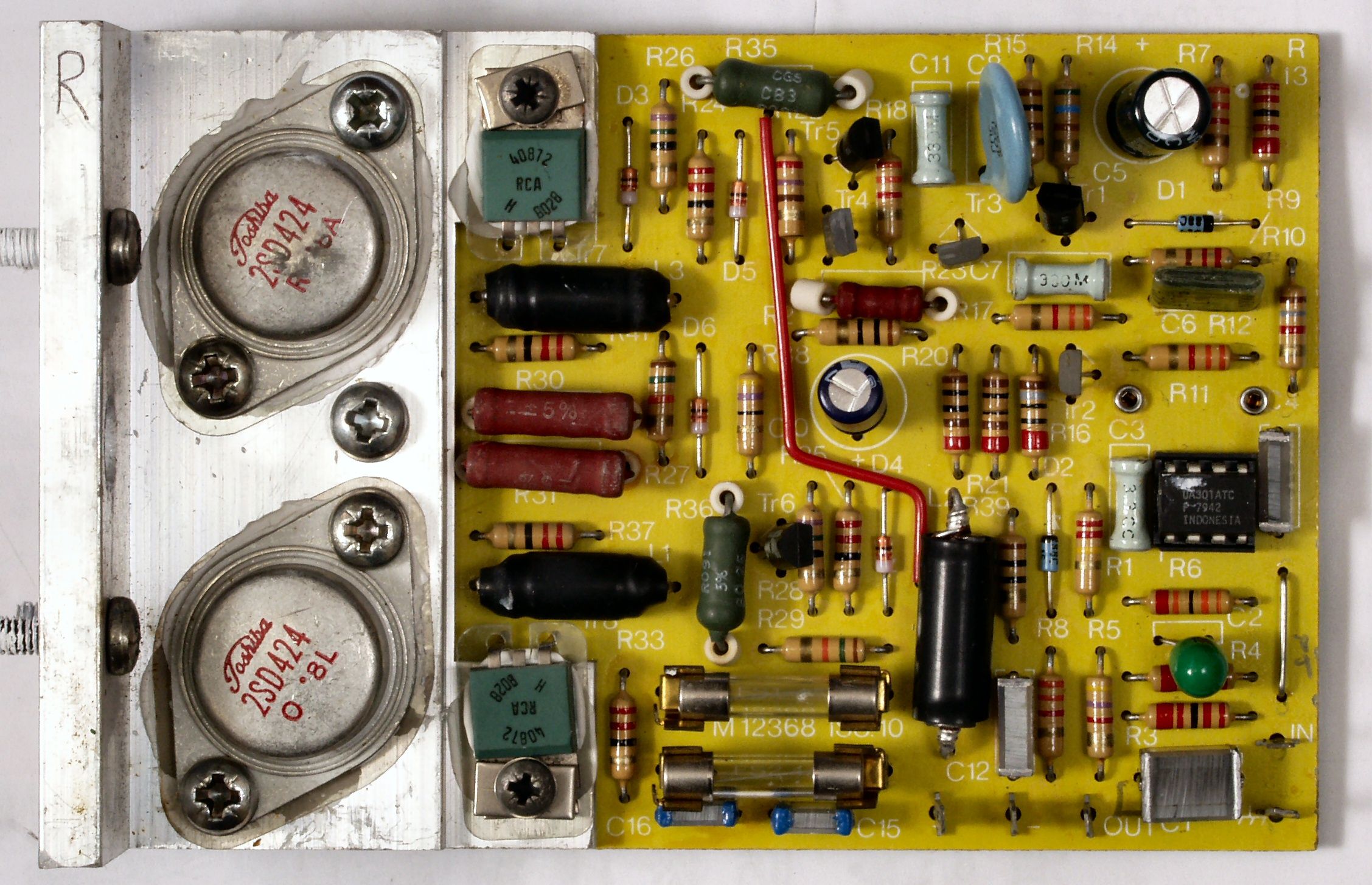 C22. 修理後 L側AMP基板 TR(トランジスター)2個、電解コンデンサー2個、OP−AMP交換。フイルムコンデンサー追加