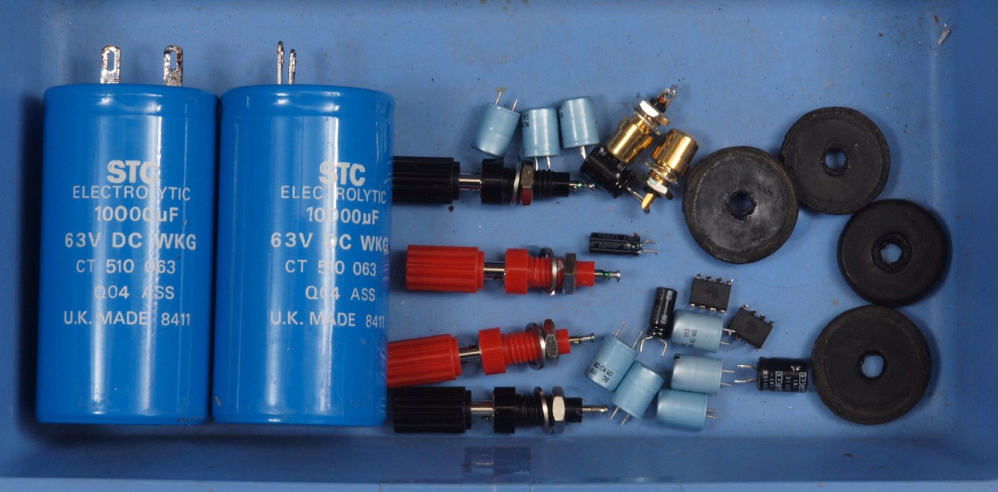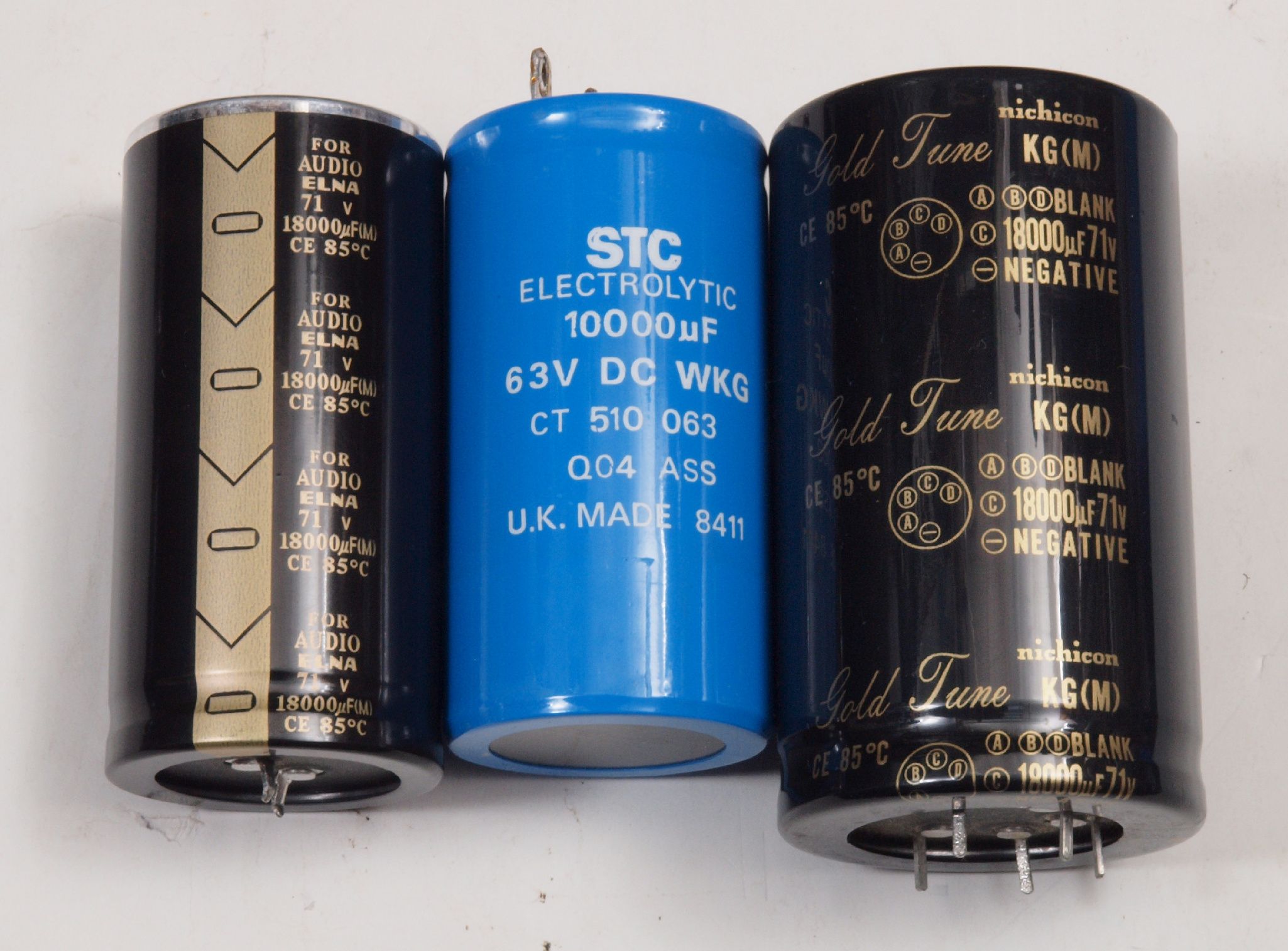 A31. 点検中 電解コンデンサー比較。 中=古いのは63V/10000μF。