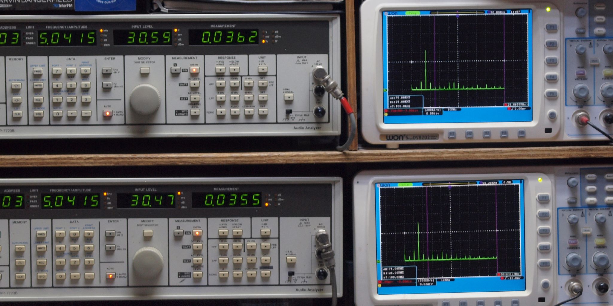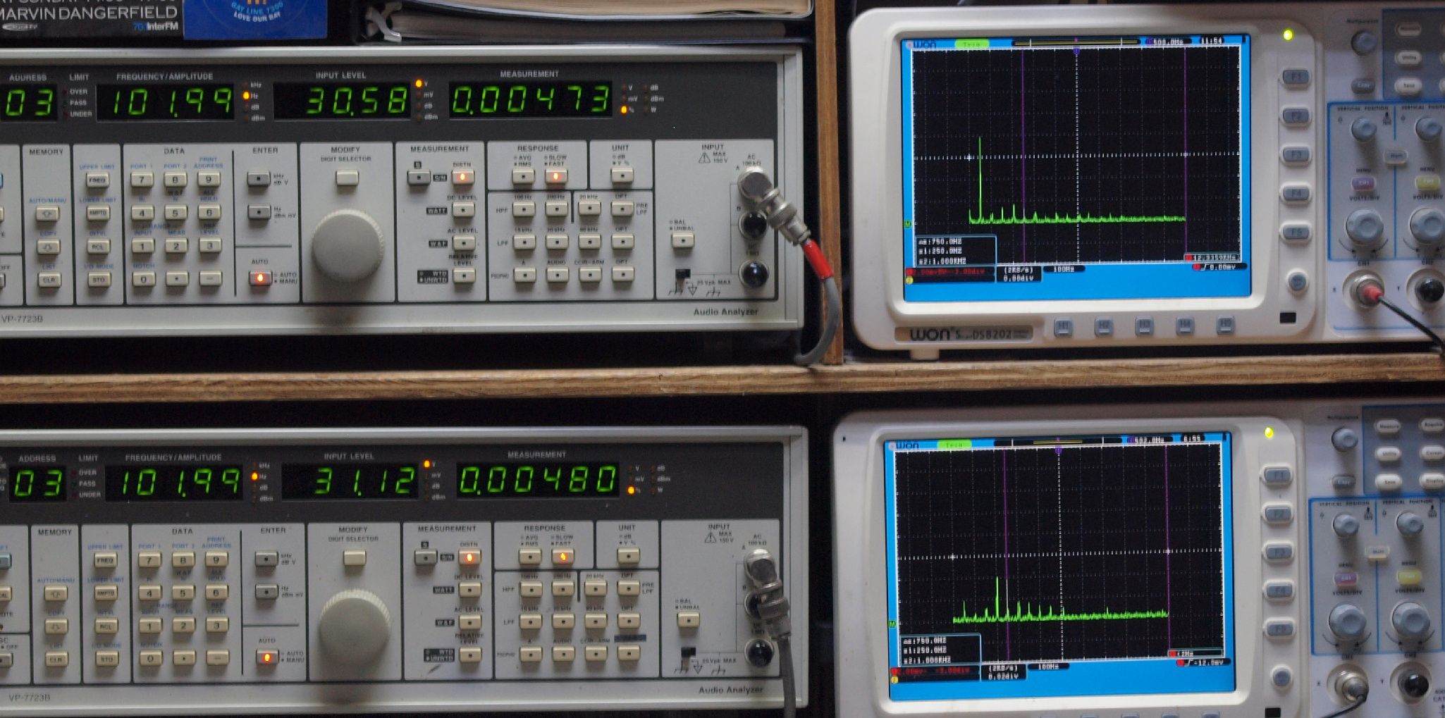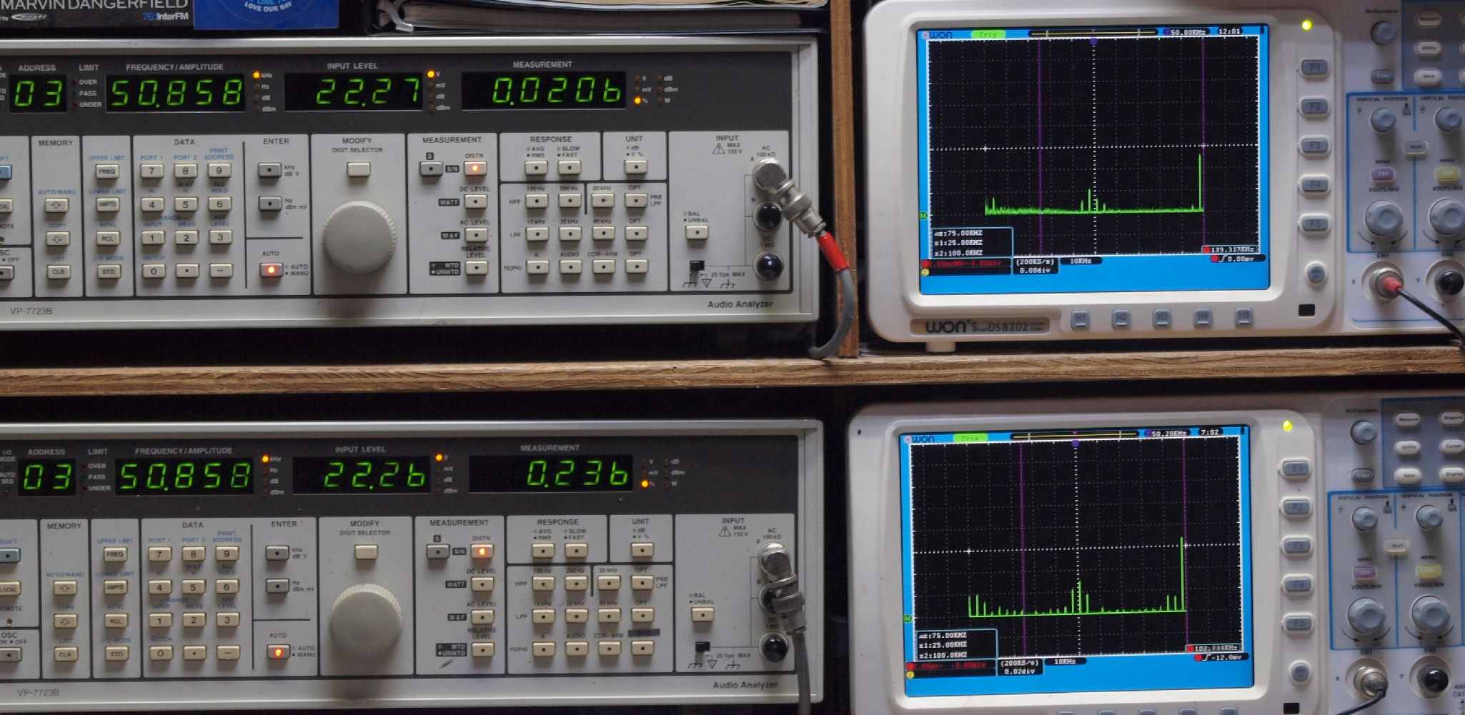 よって、ダイアル設定出力レベルより低くなります。測定機器の仕様や整備の様子はこちら、「VP−7723B」「VP−7201A」。 FFT画面の見方はこちら。
