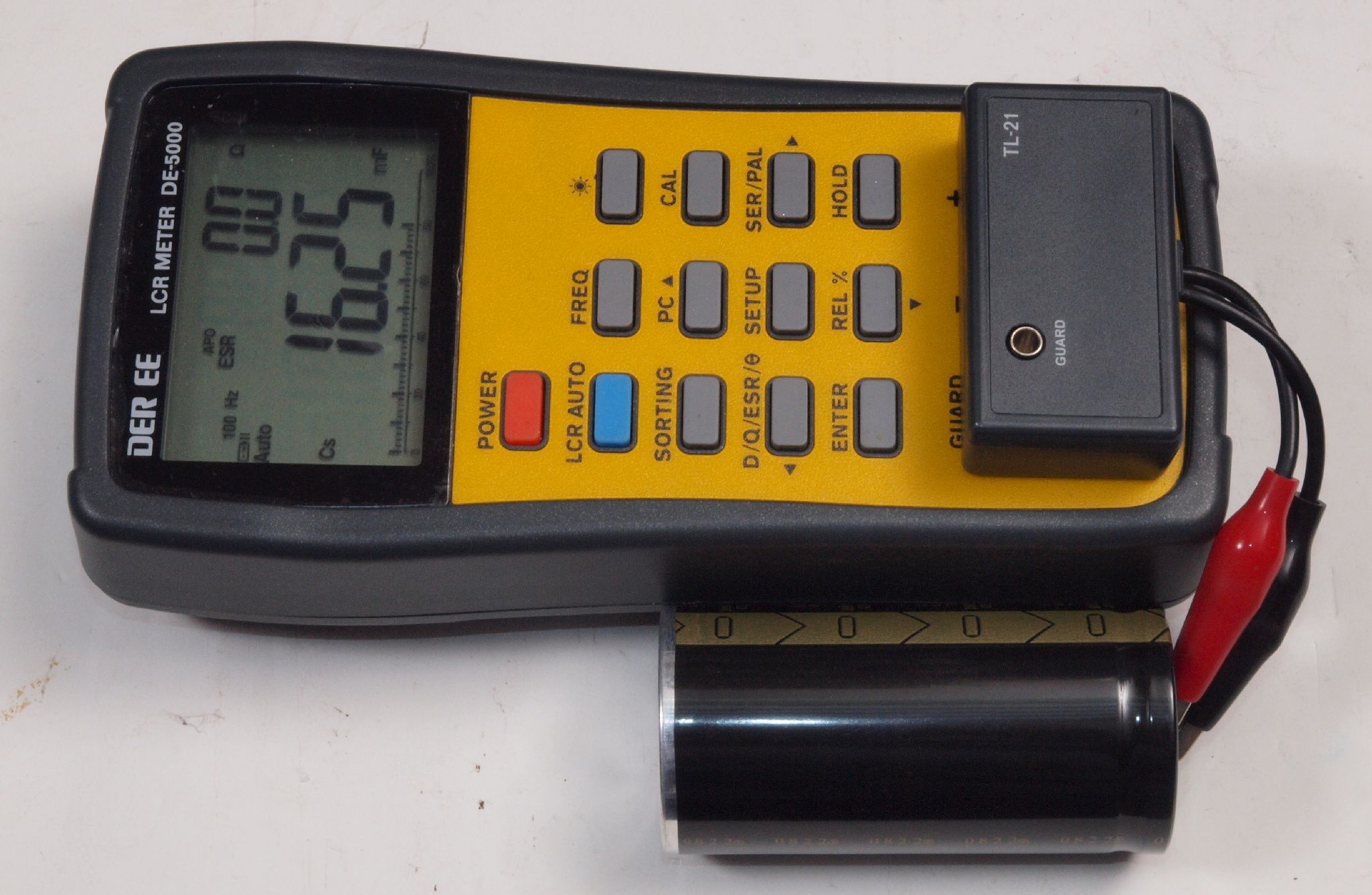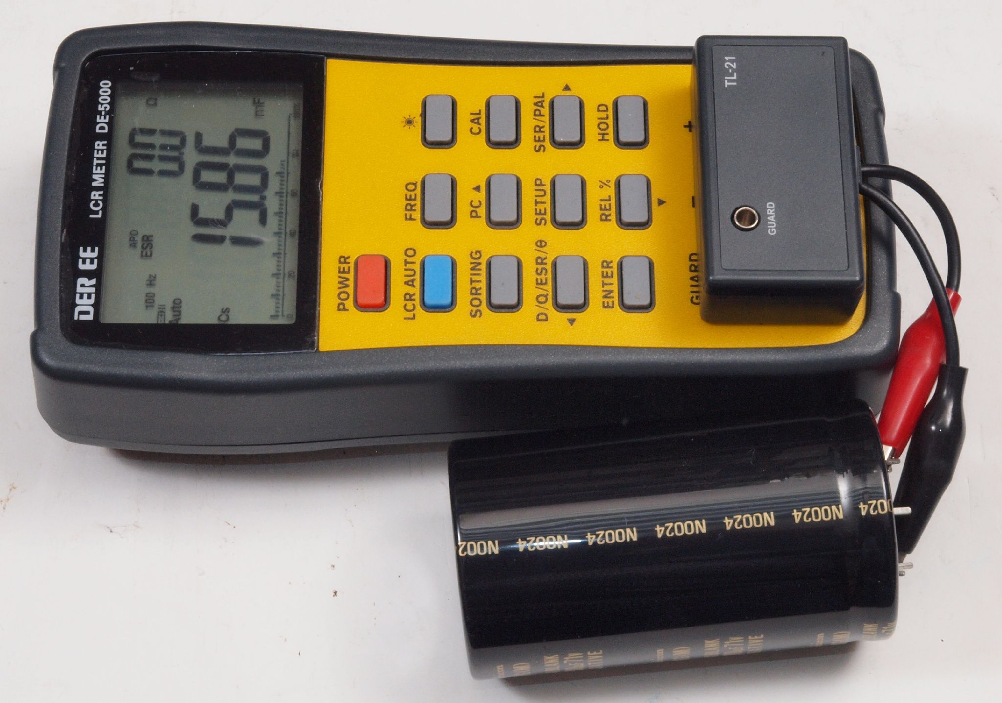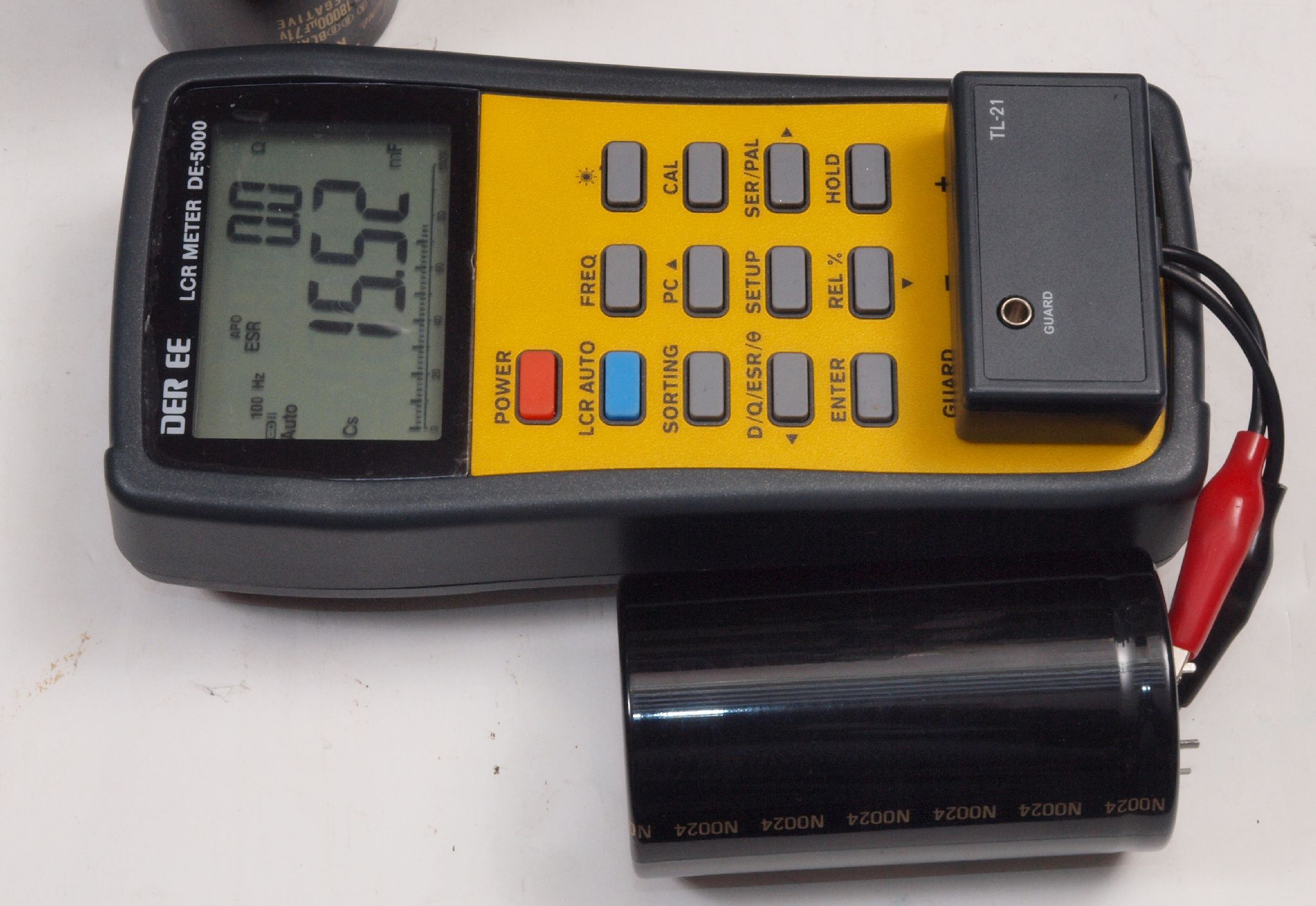 A33. 点検中 ニチコン製71V/18000μF測定。15860/15520μF。
