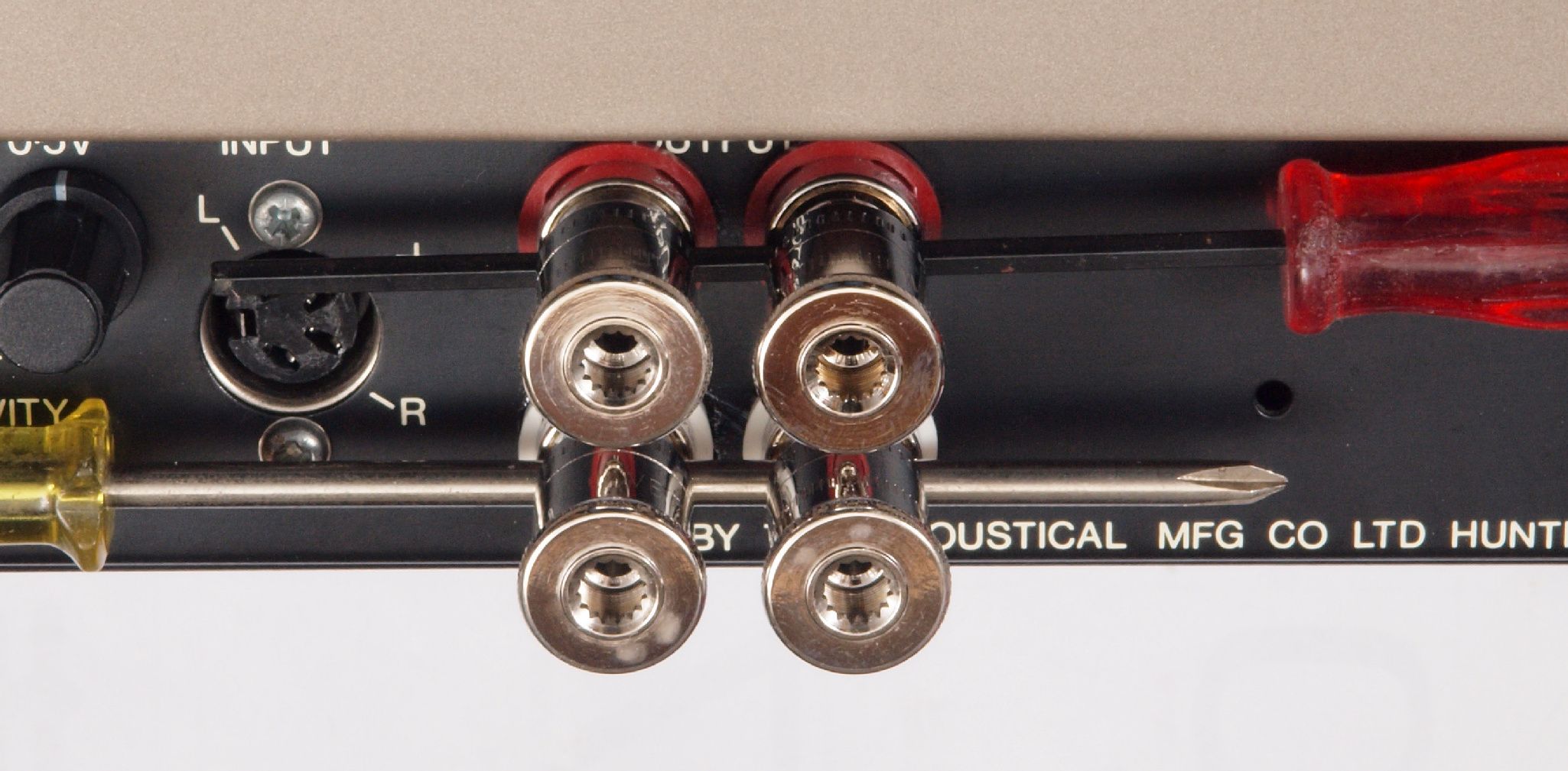 A52. 点検中 WBT製RCA端子。 複雑な構造で「カチ」と差し込み感を与える。
