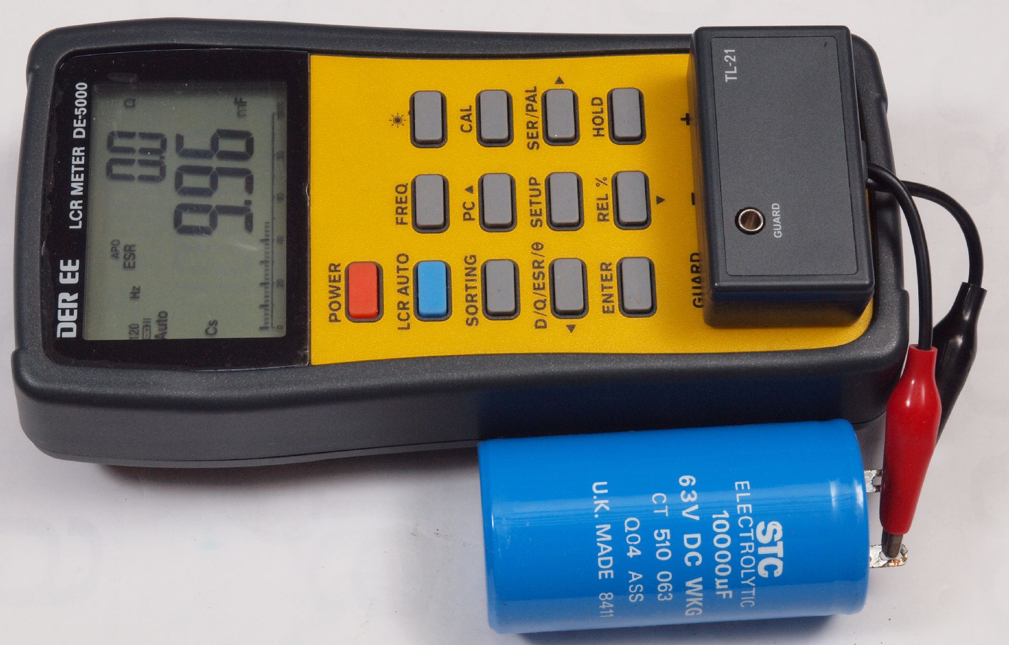 C72. 交換電解コンデンサー63V/10000μF測定。9970/9960μF。