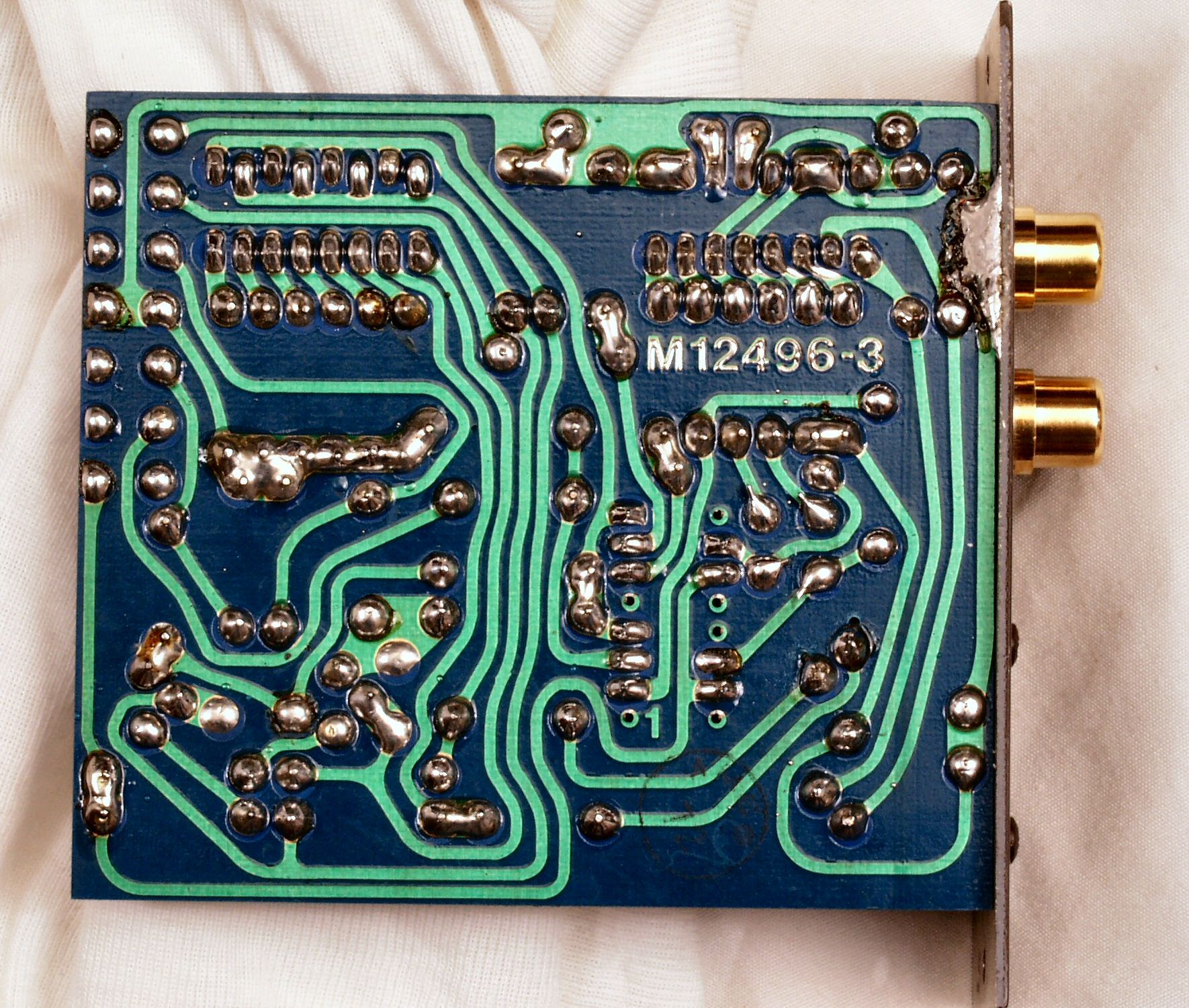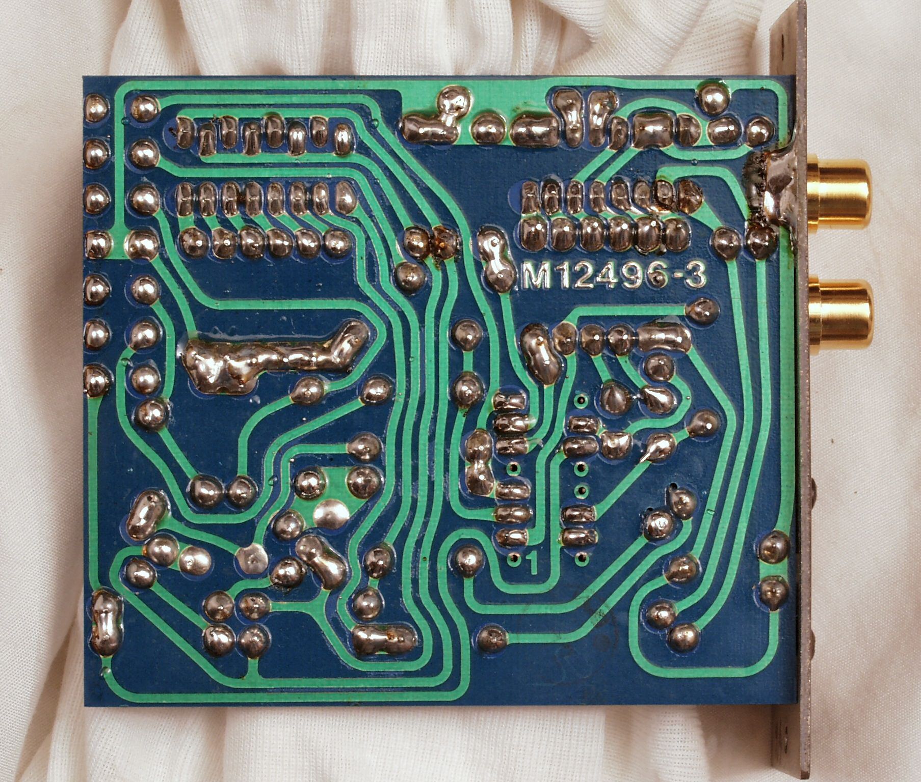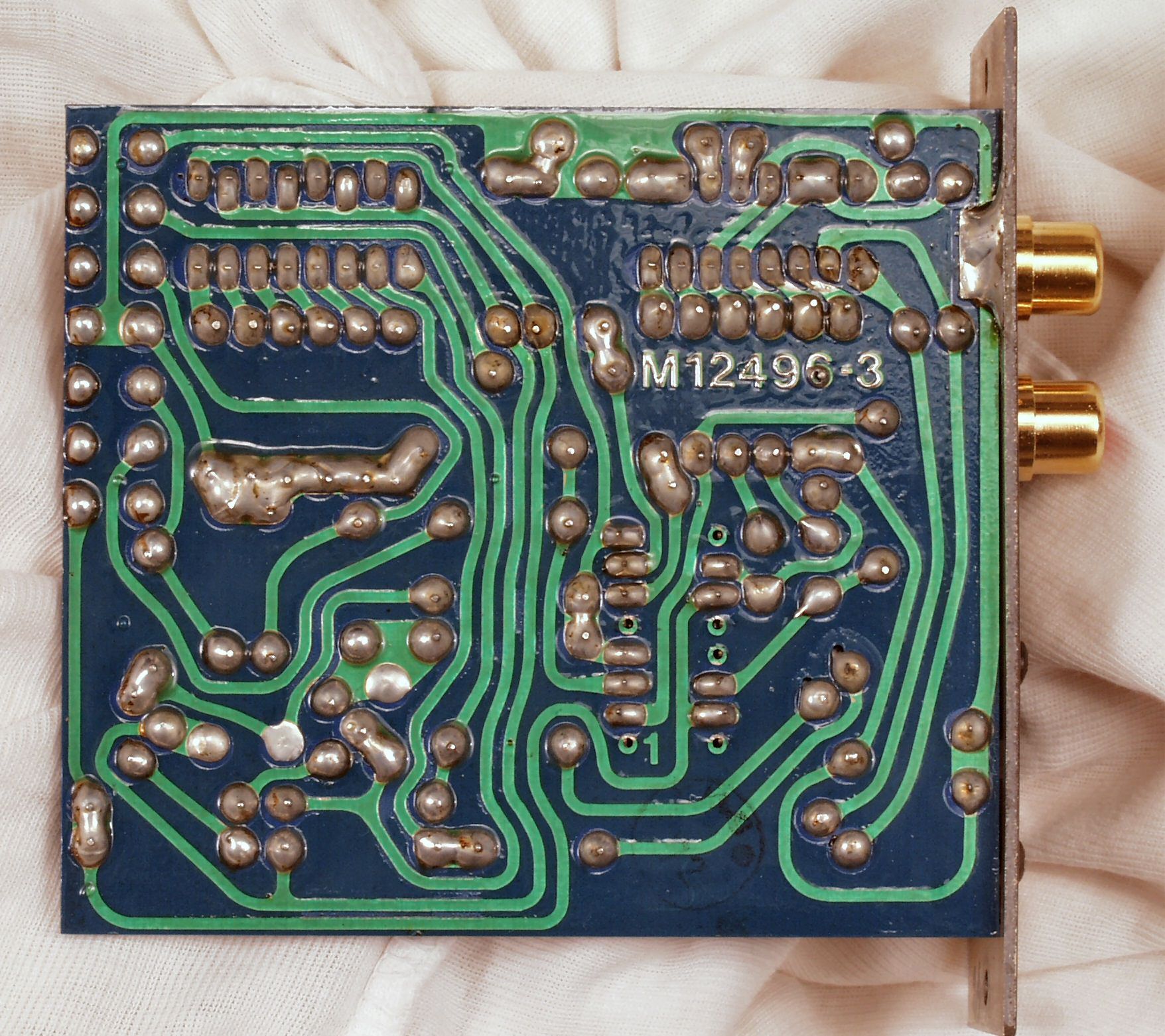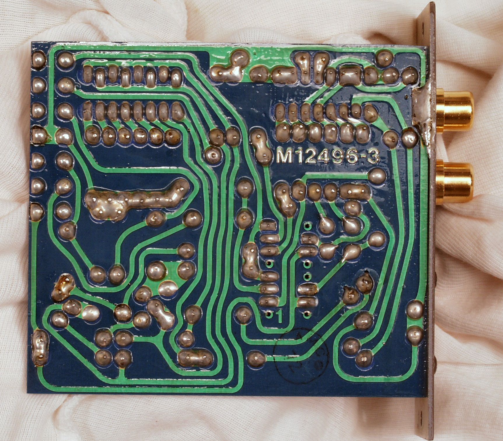 C2D. 修理(半田補正)後  TAPE2入力基板裏 全半田やり直し