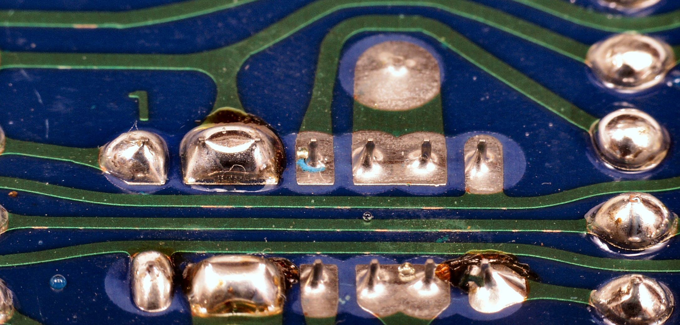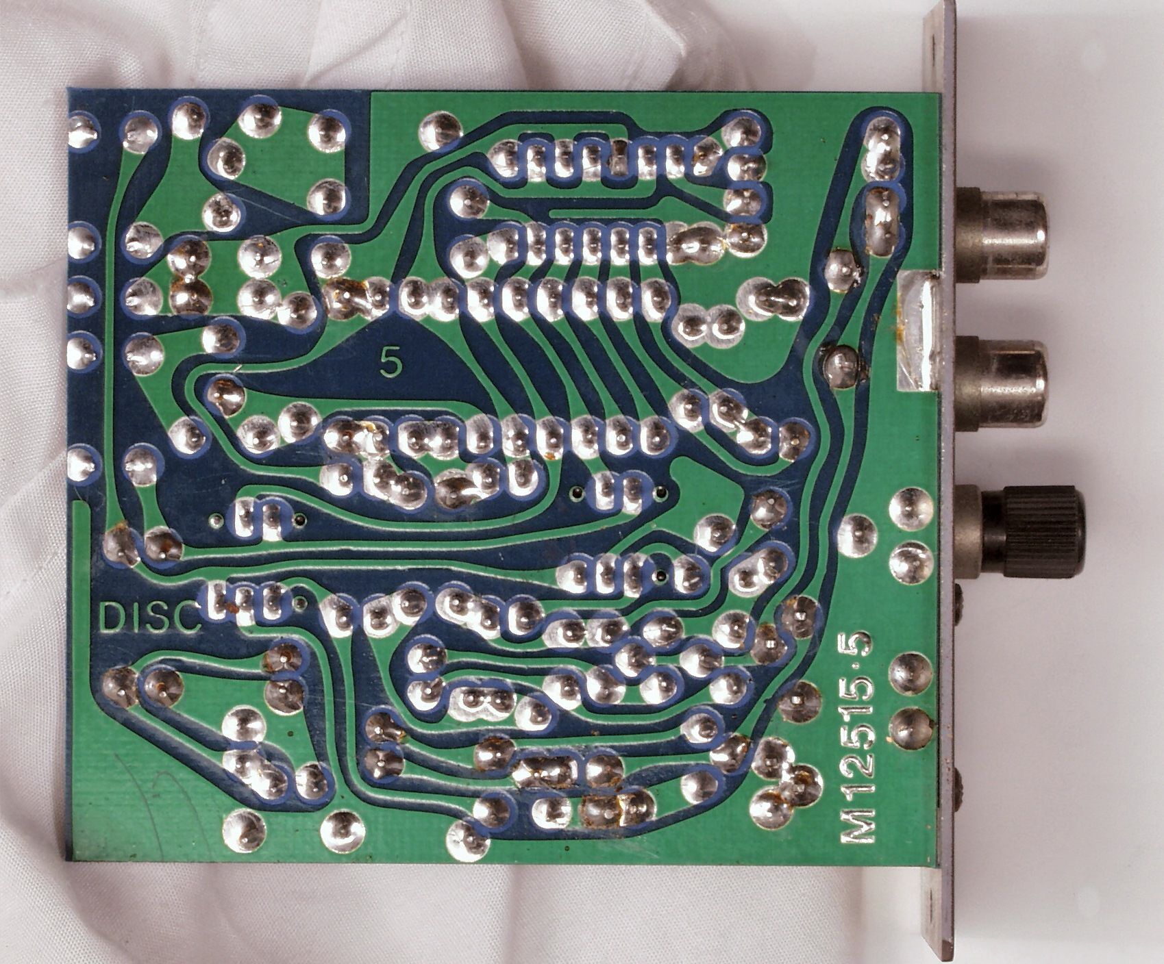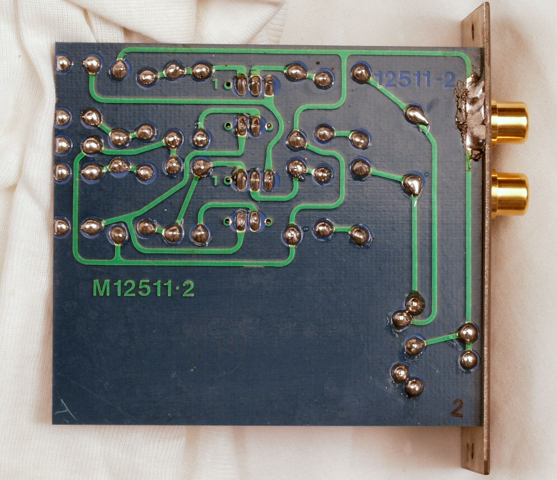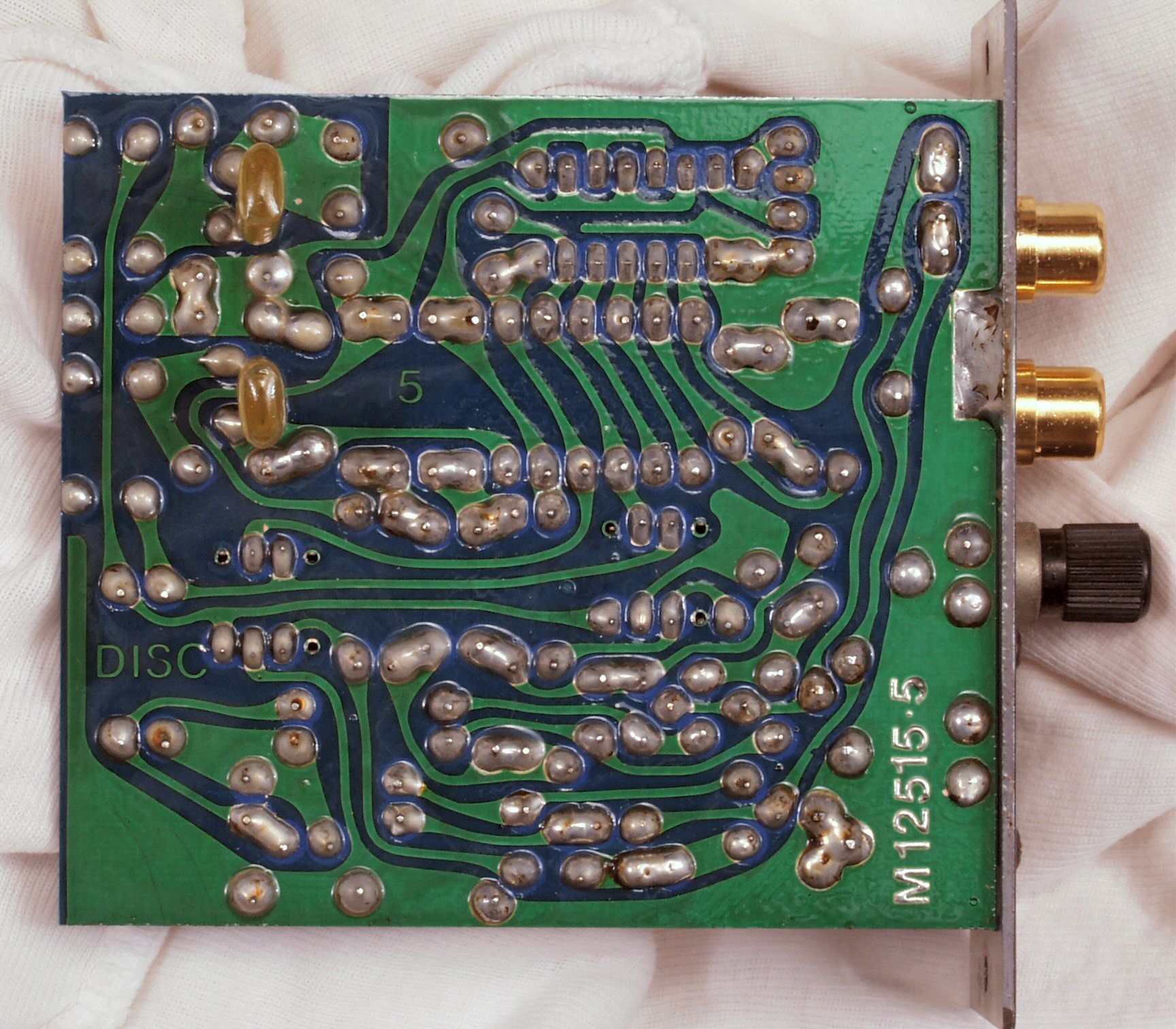 C2D. 修理(半田補正)後  TAPE2入力基板裏 全半田やり直し