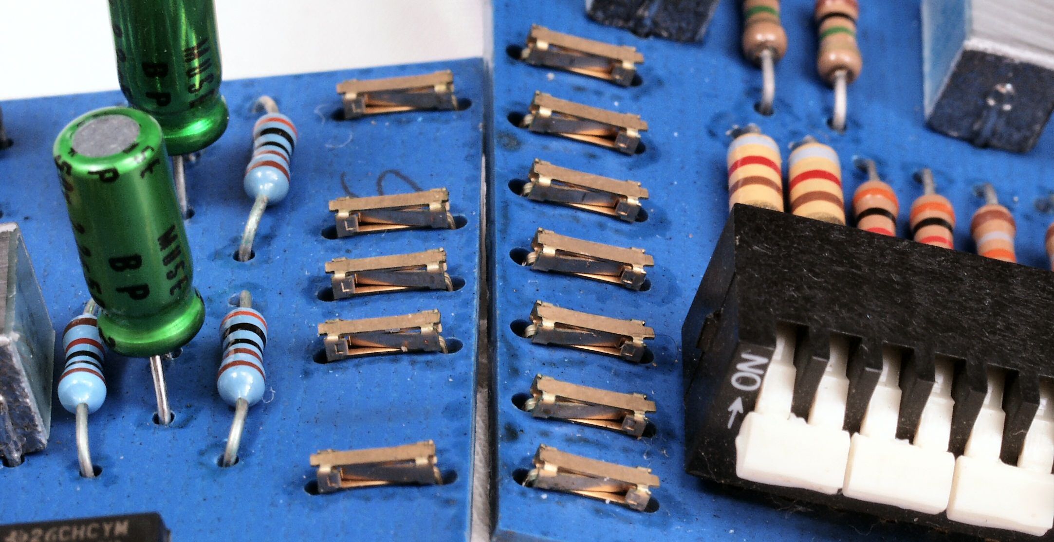 C1A. 修理前 TAPE1入力基板 下のデイップSWはPlayとRecordのレベル調整