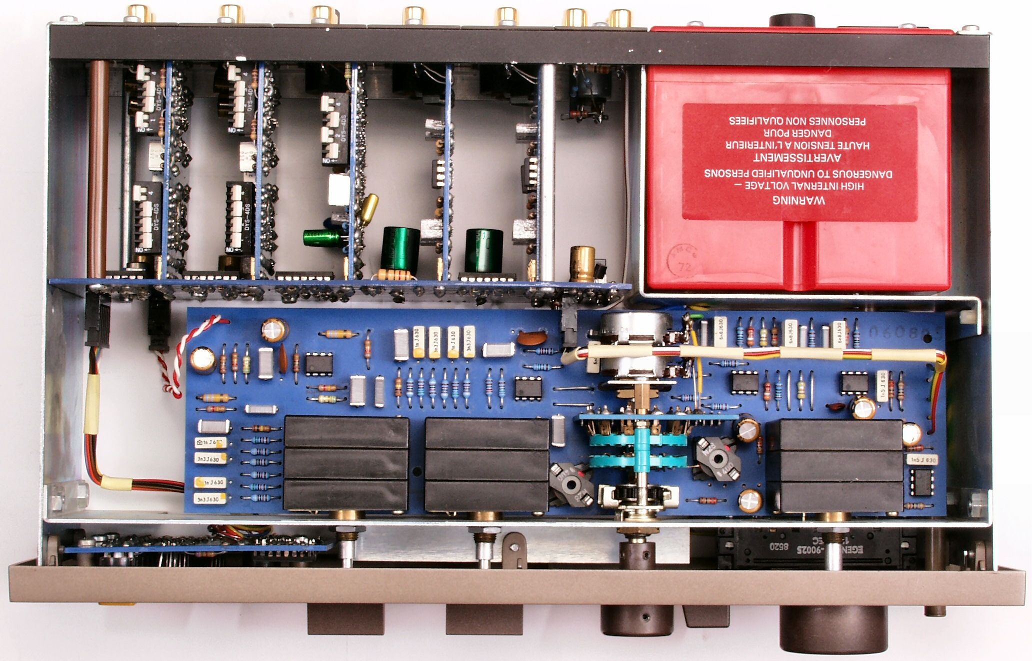 C2A. 修理前  TAPE2入力基板 下のデイップSWはPlayとRecordのレベル調整